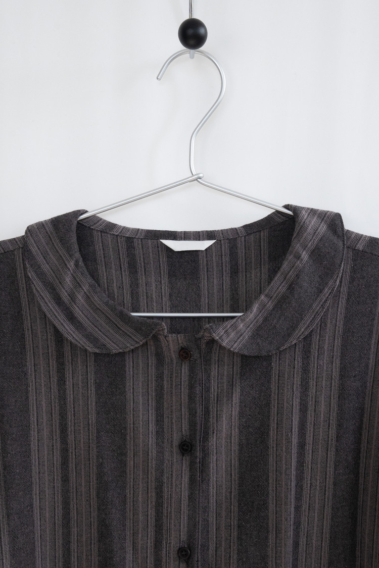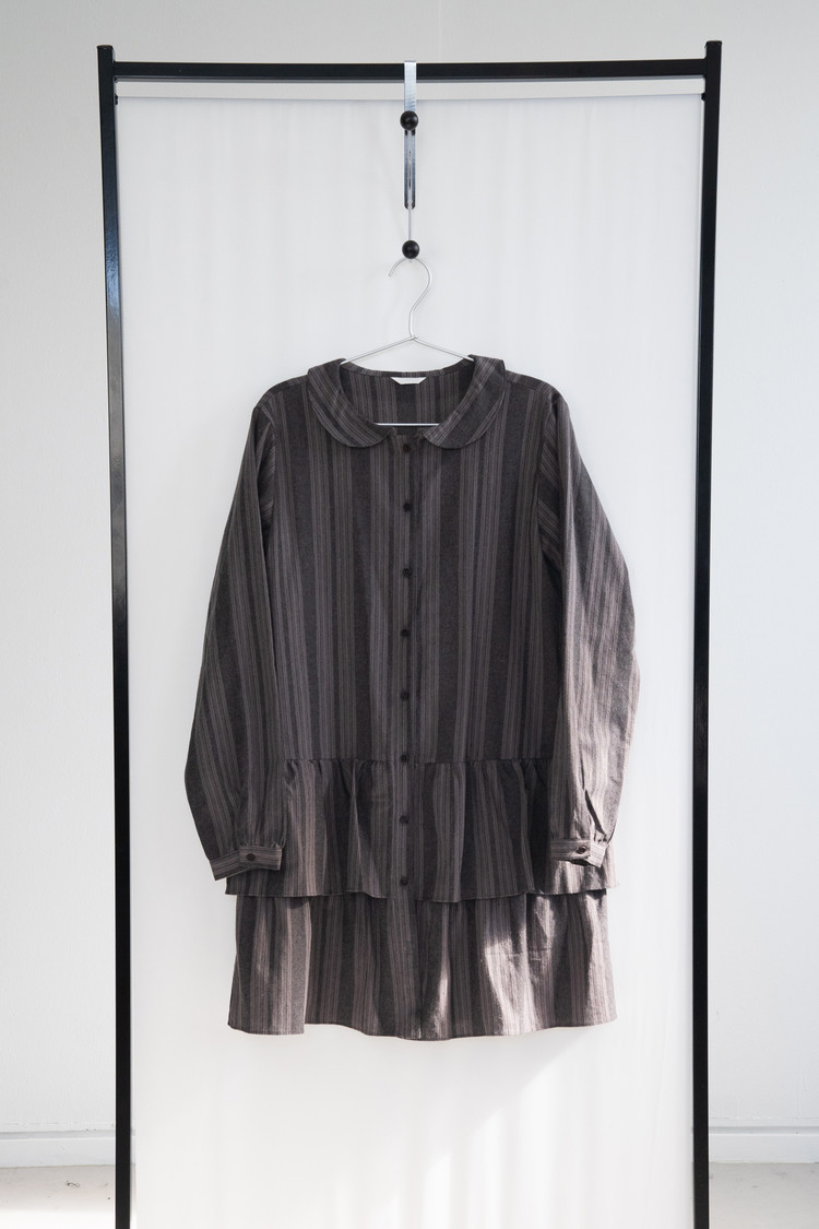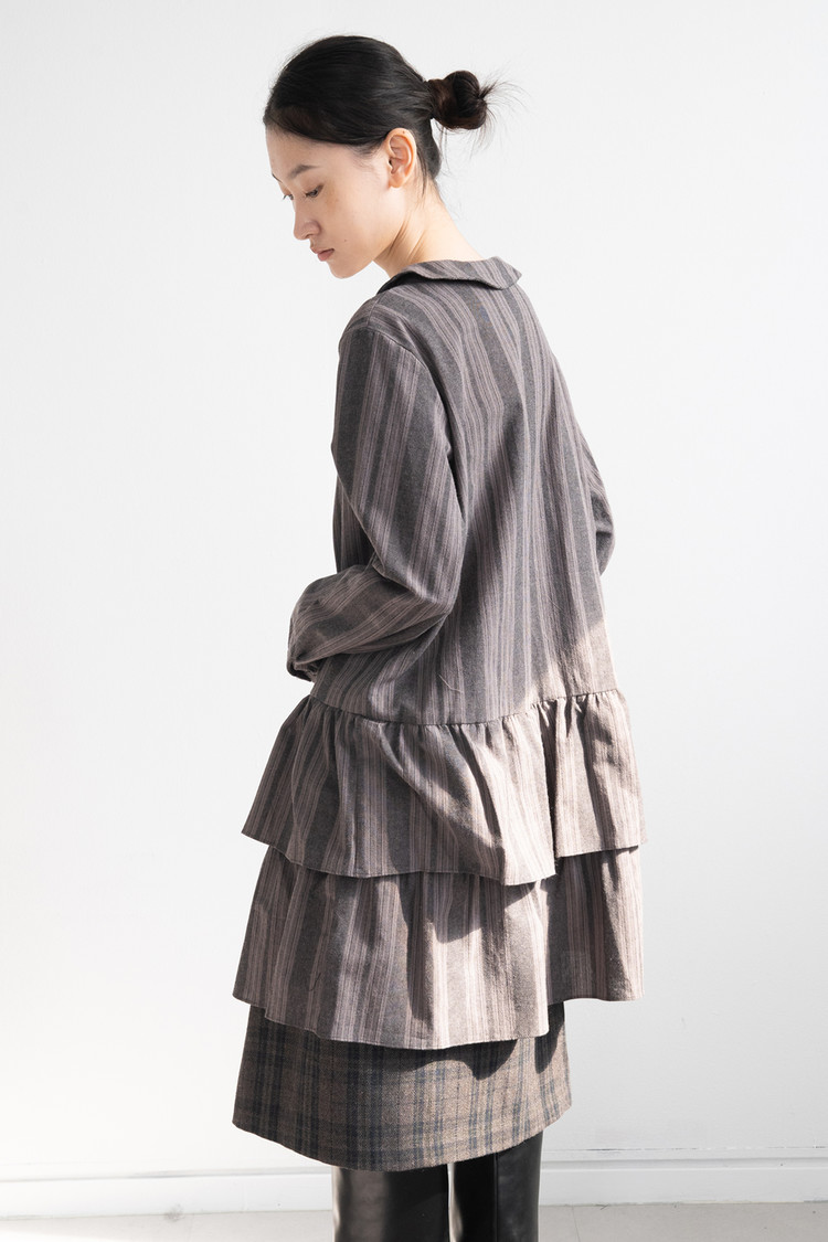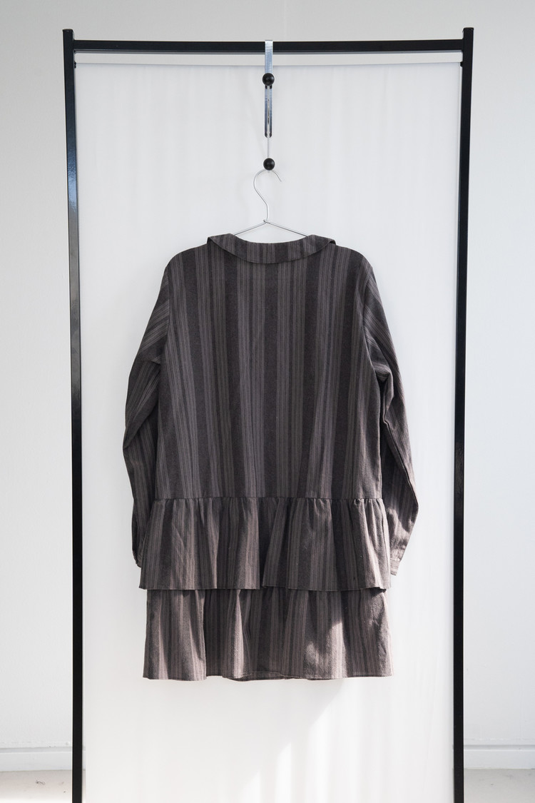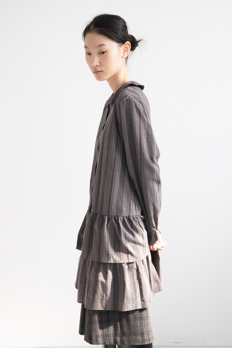 Stripe Double Frill Shirt Dress (Gray)