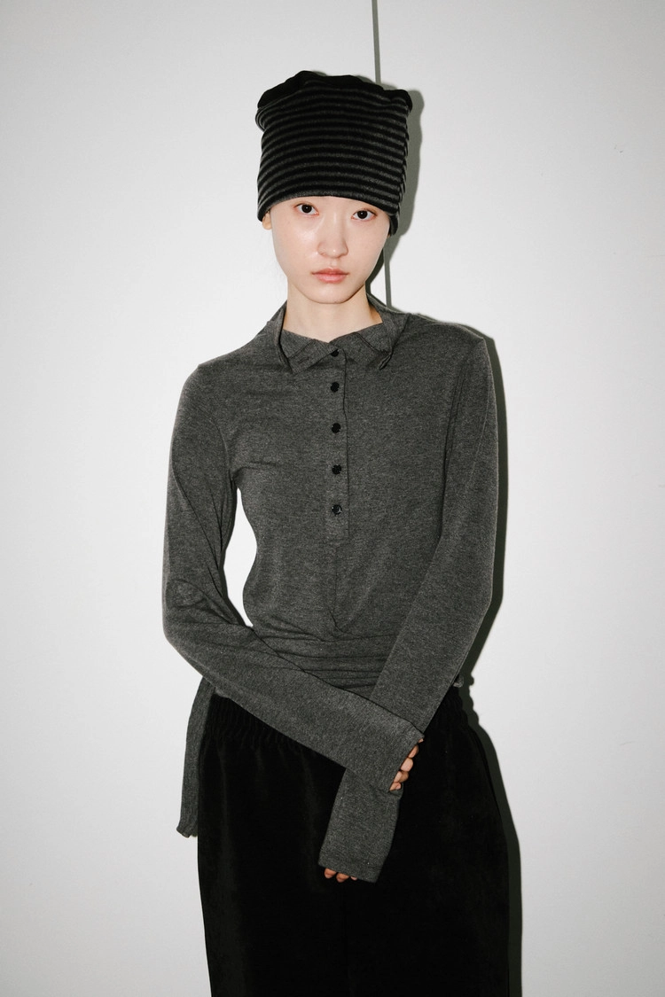 [마지막 재고] Fleece Layered Button Wrap T (Charcoal)SOLDOUT