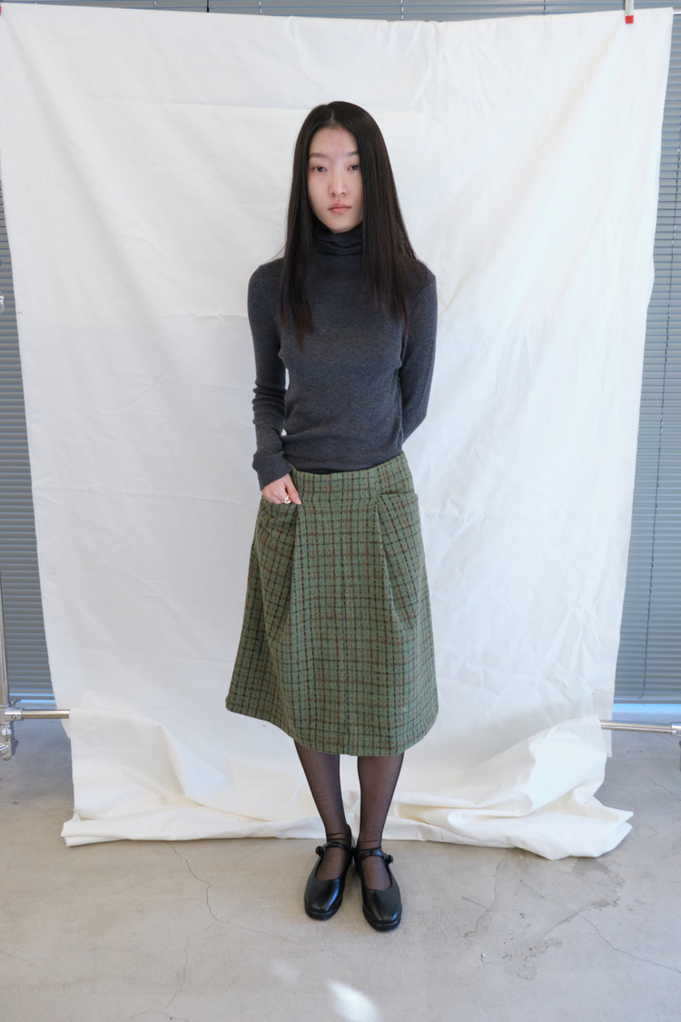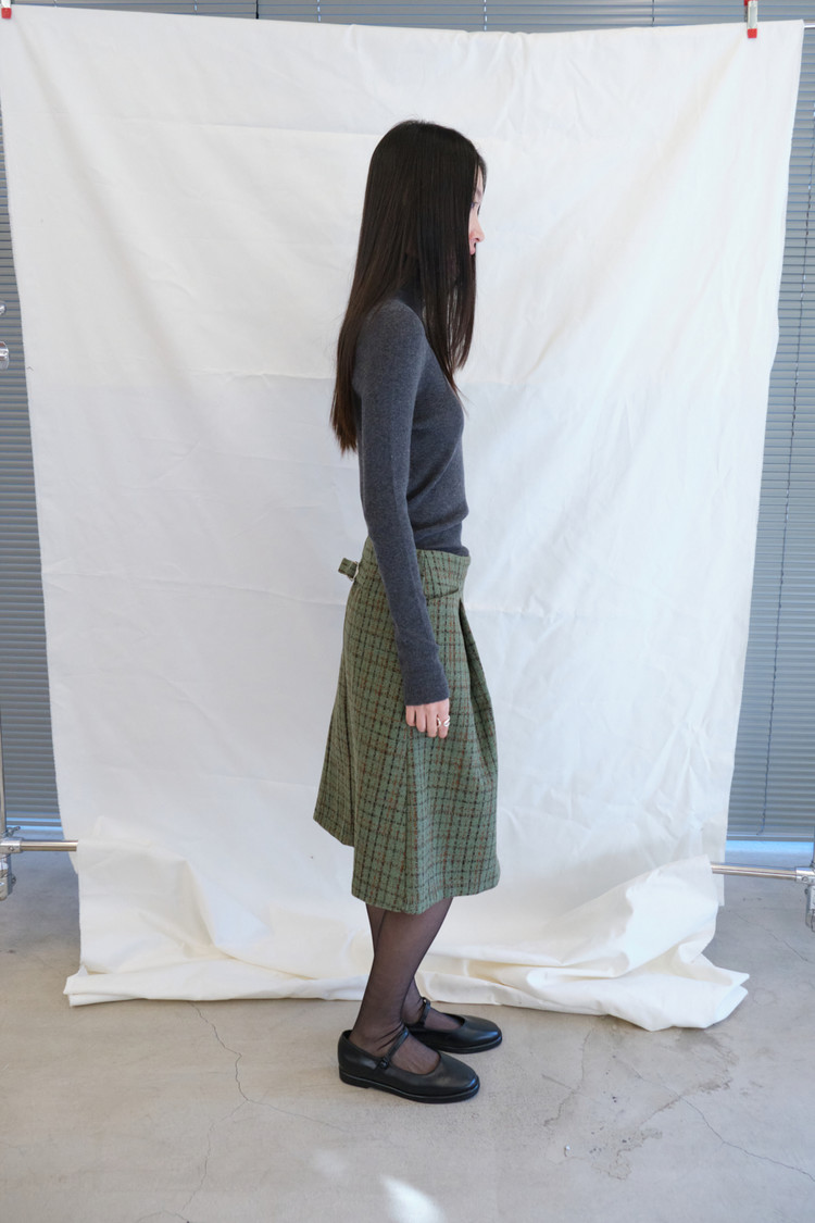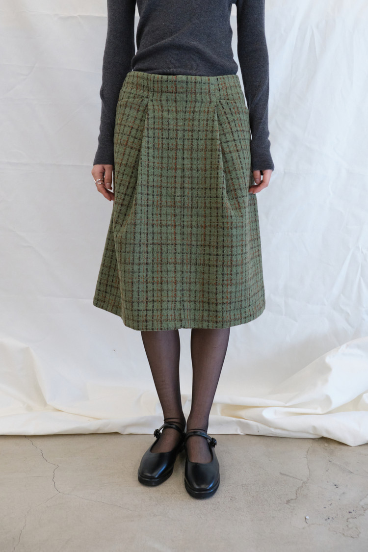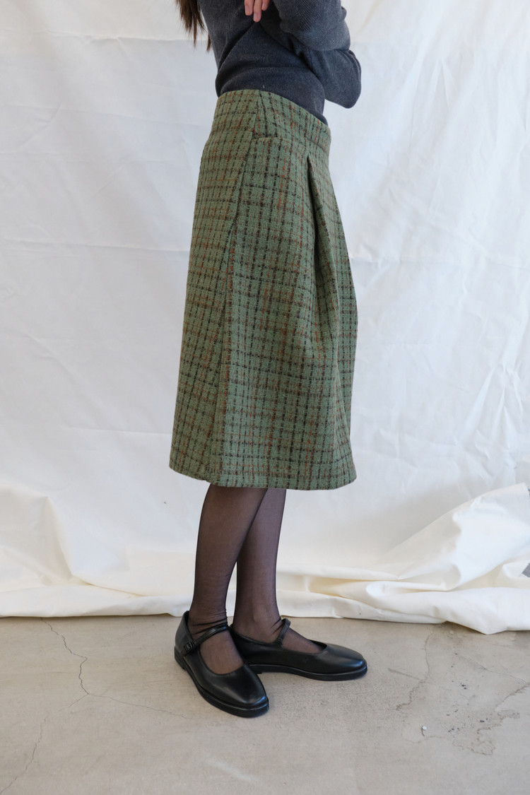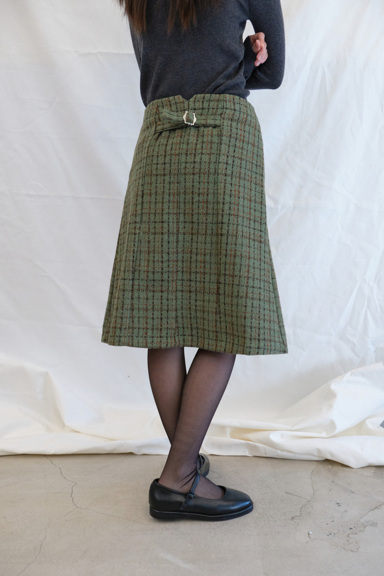 Tweed Buckle Midi Skirt (Green/2size)