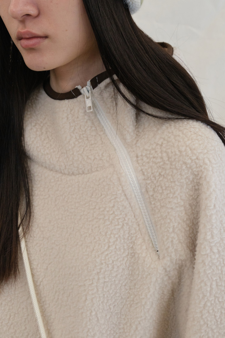 Diagonal Line Fleece Hoodie (Ivory)SOLDOUT