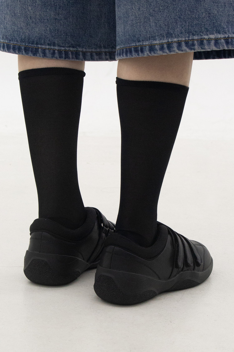 [240 마지막 재고] Velcro Cowhide Sneakers (Black)