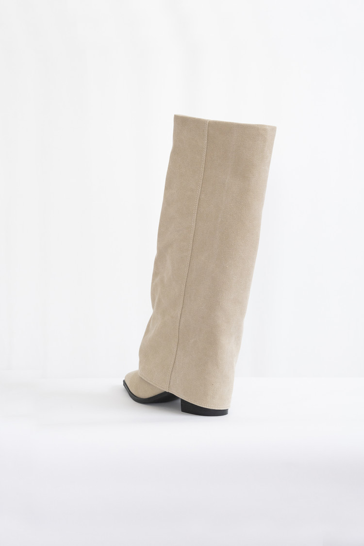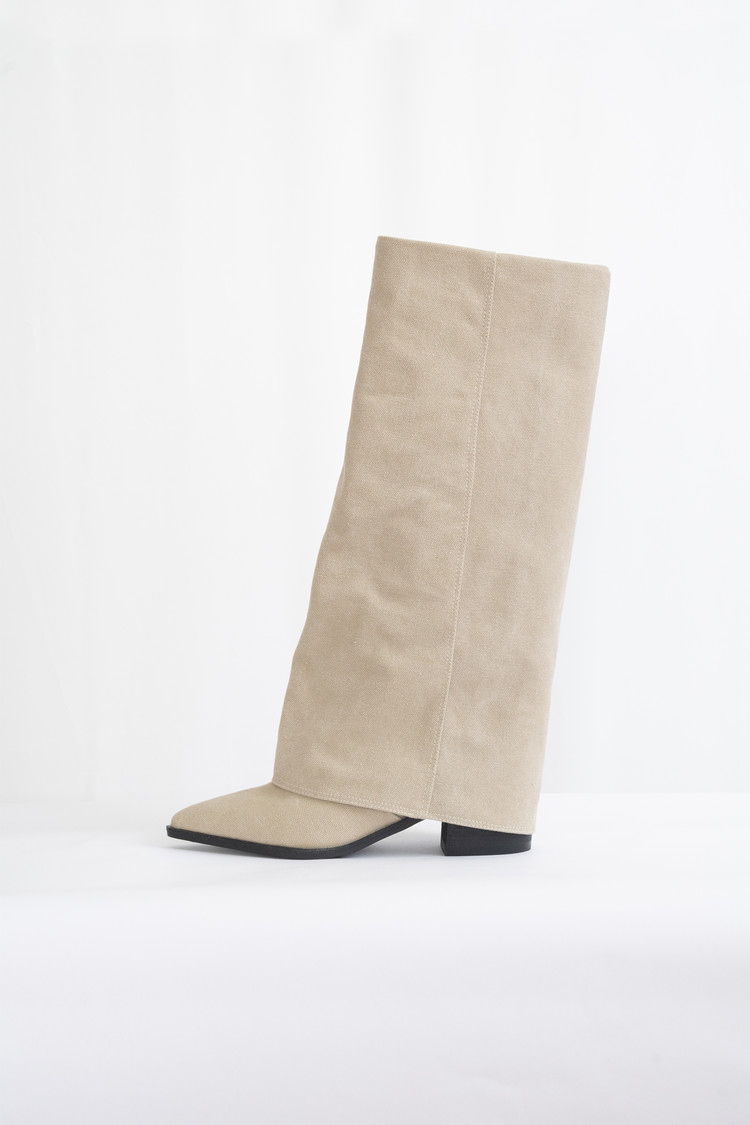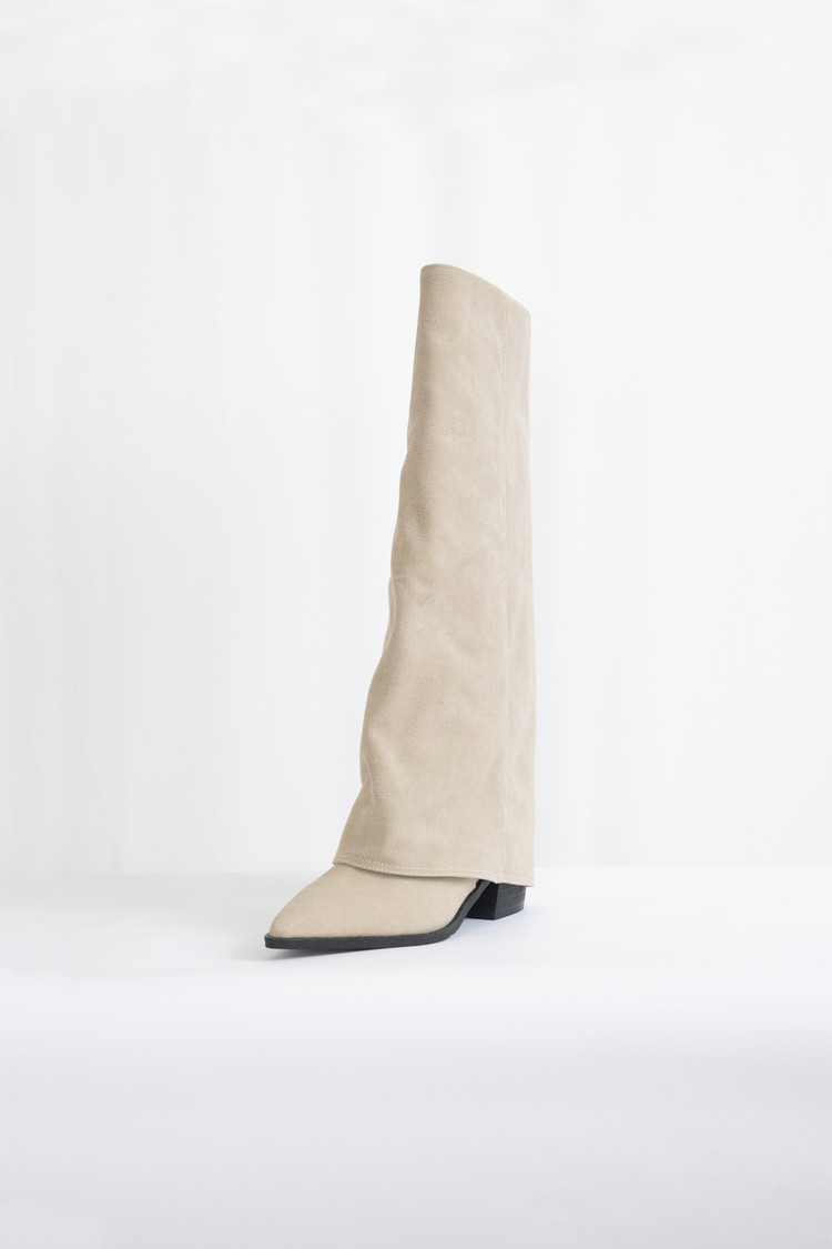 [250 마지막 재고] Linen Western Pointed Long Boots (Beige/5.5cm)