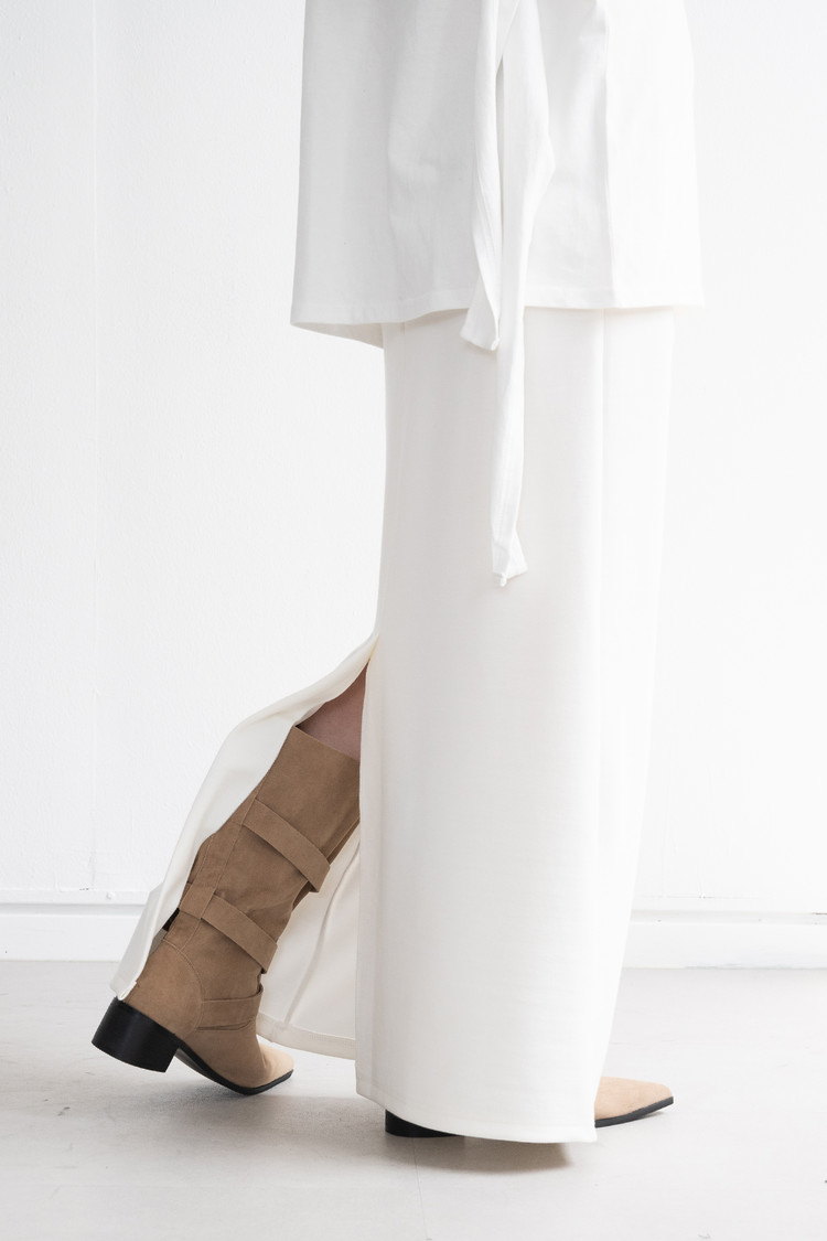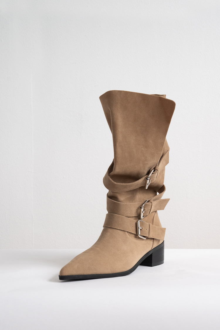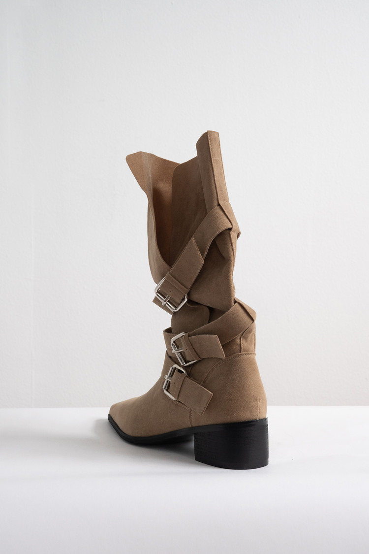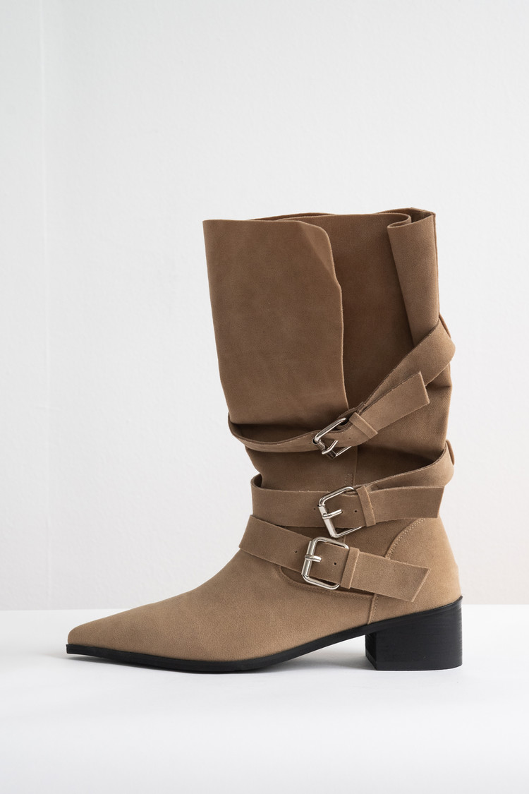 Double Belt Wrap Middle Boots (Beige/4cm)