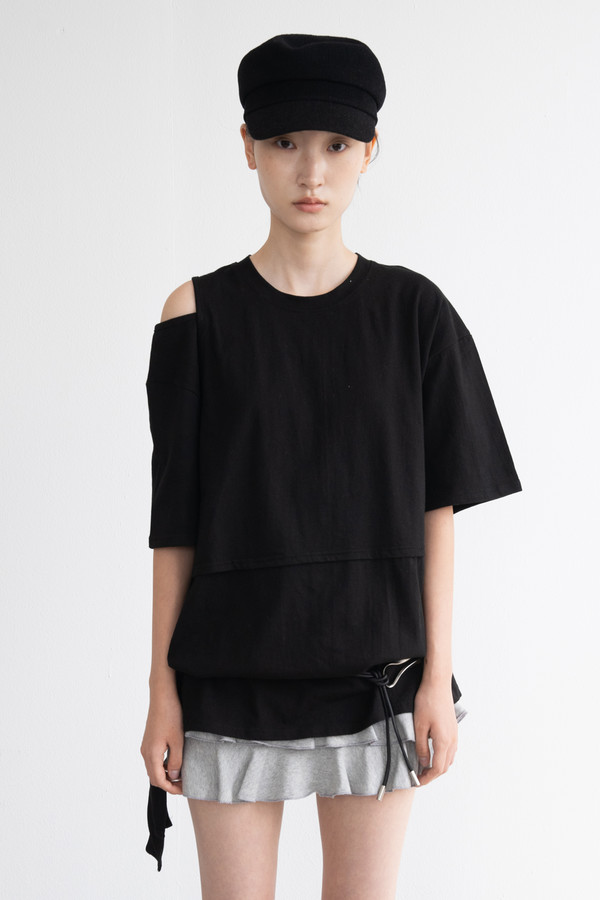 [마지막 재고] Shoulder Wrap Boxy Top (Black)