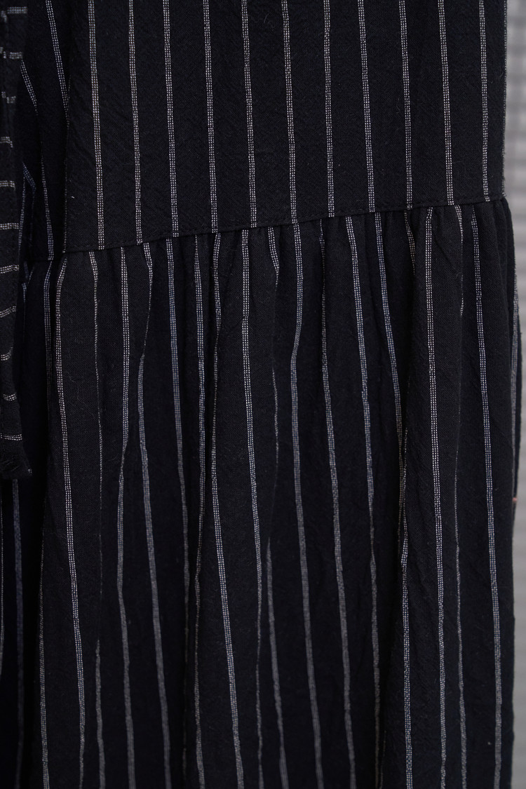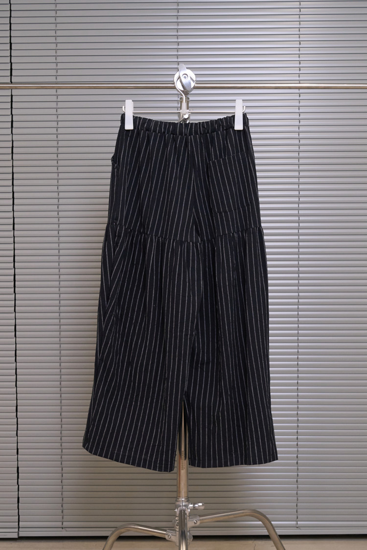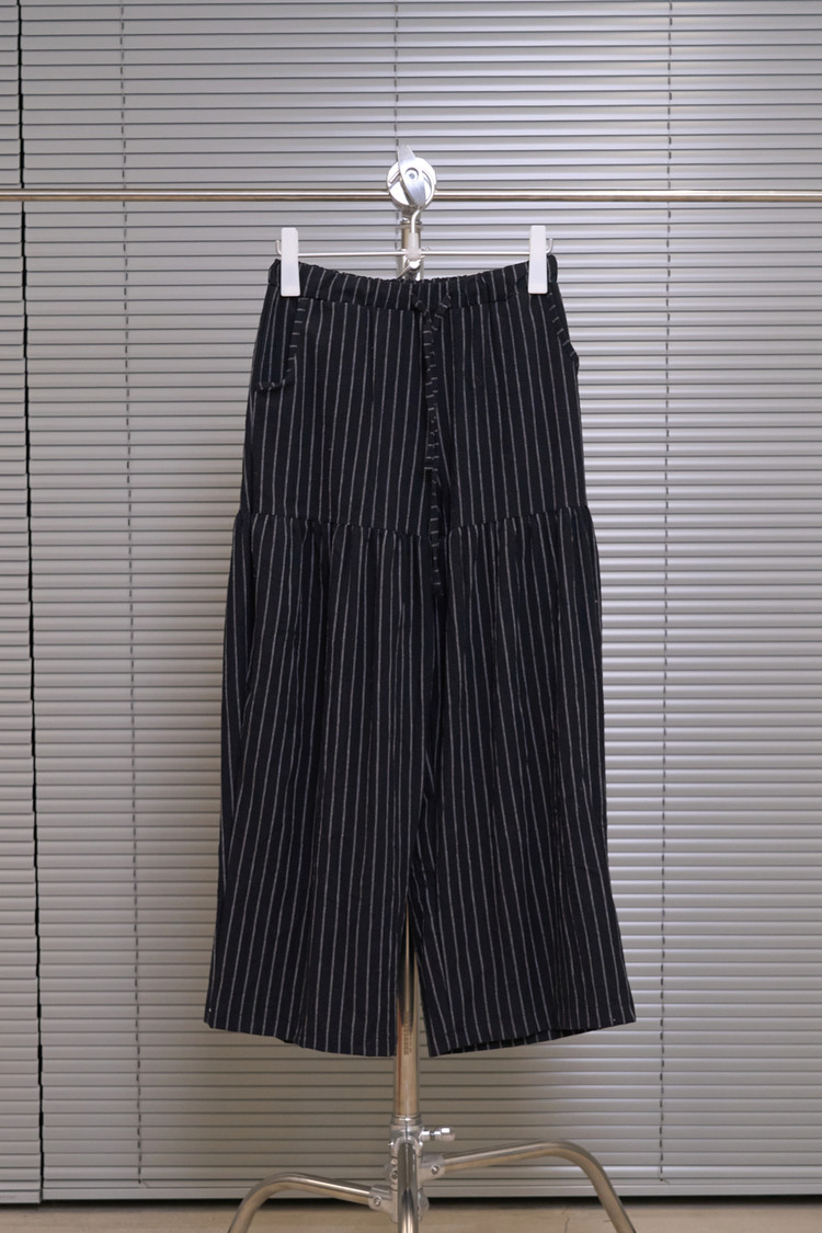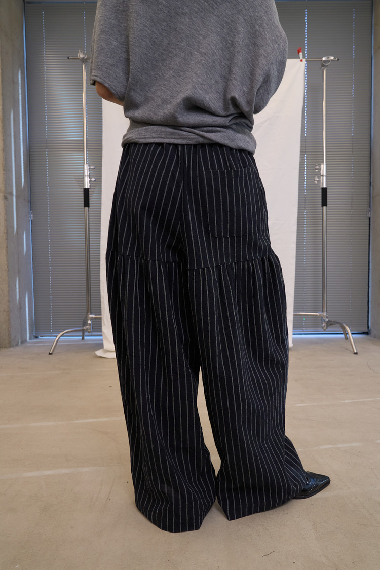 Shirring Striped Wide Pants (Black)NEW