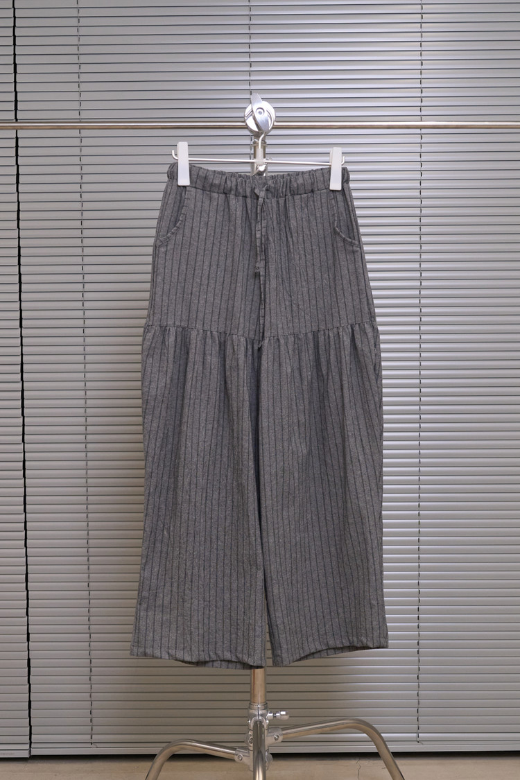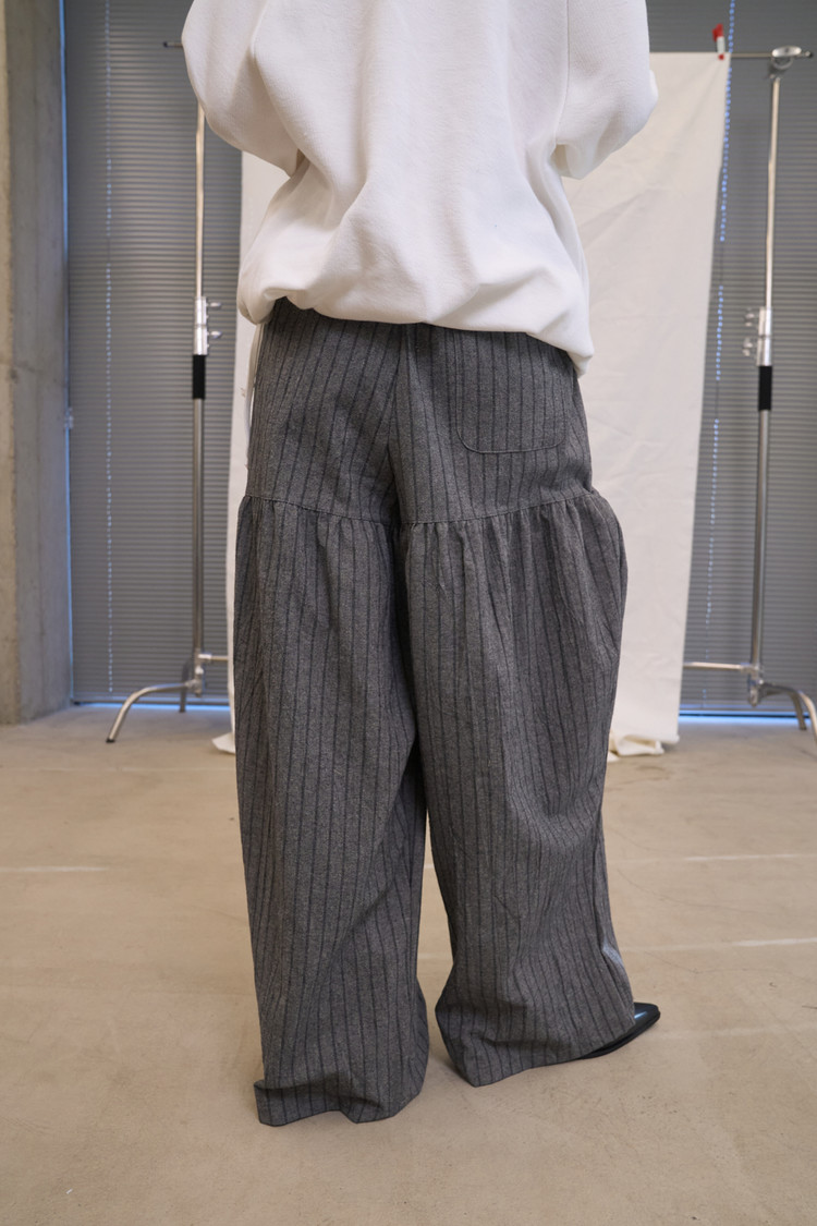 [3/17 순차 출고] Shirring Striped Wide Pants (Gray)
