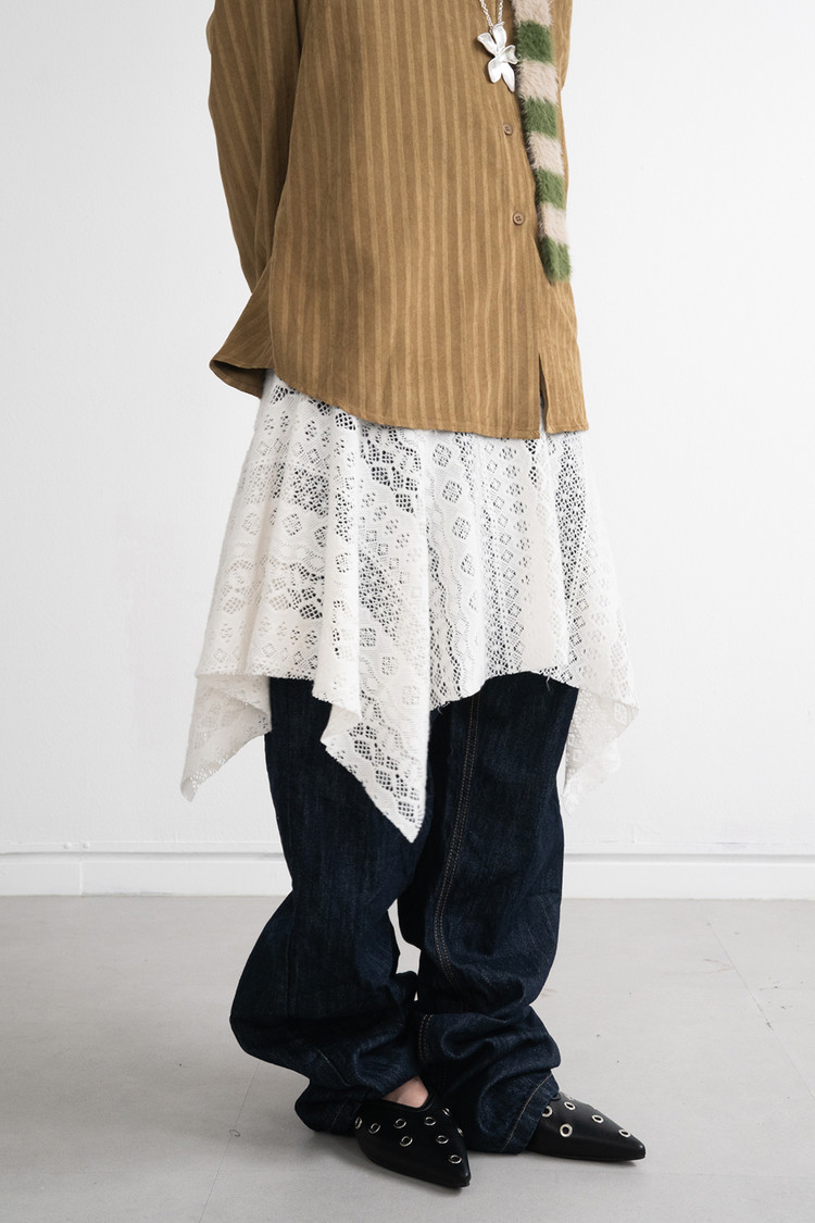 Lace Layered Banding Skirt (Cream)