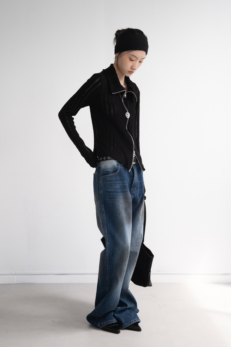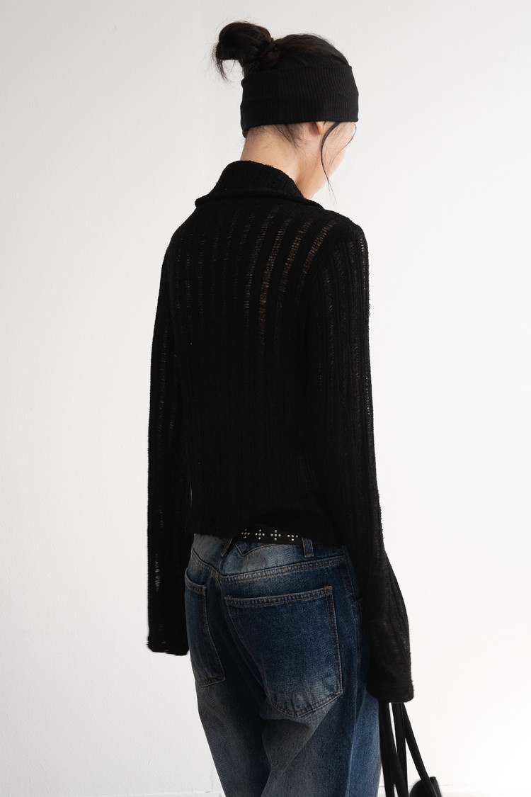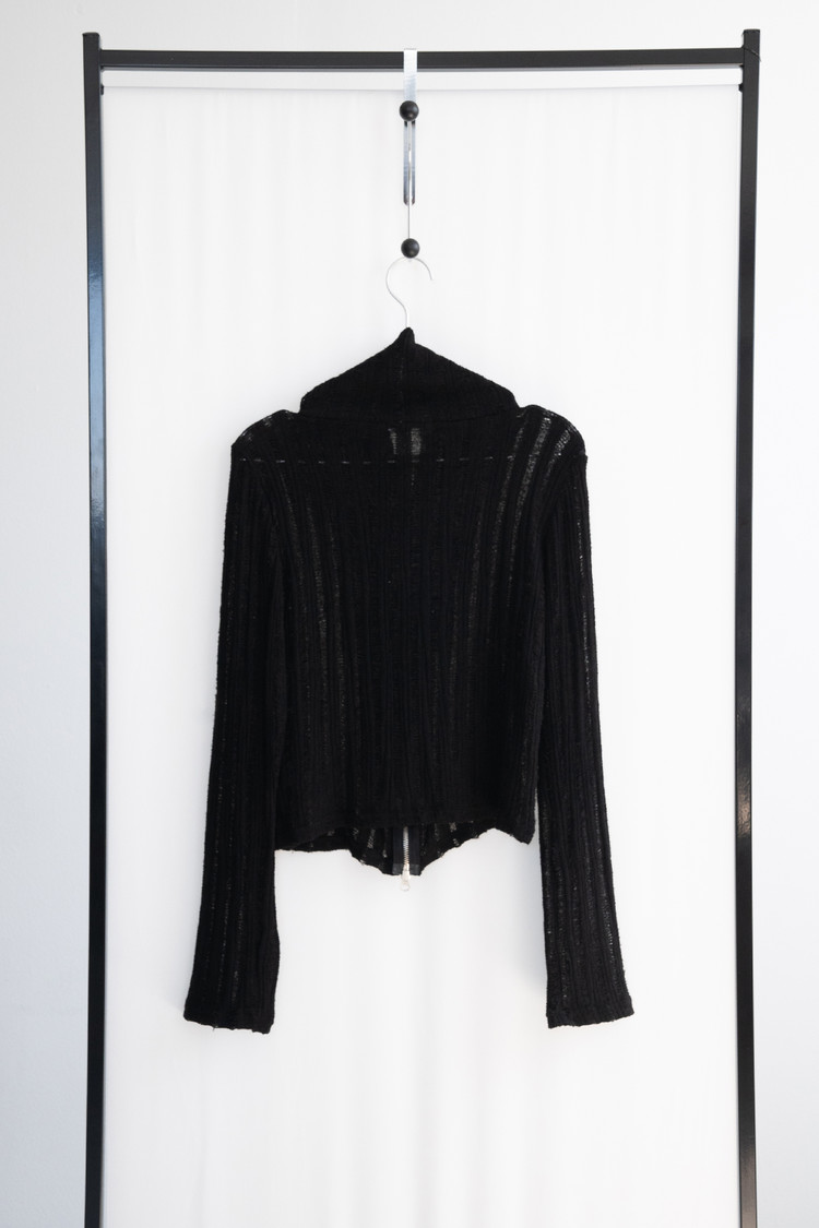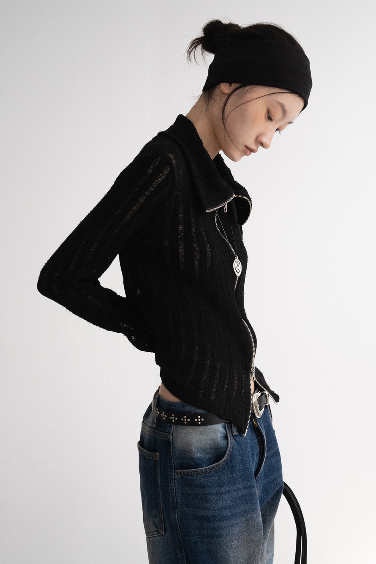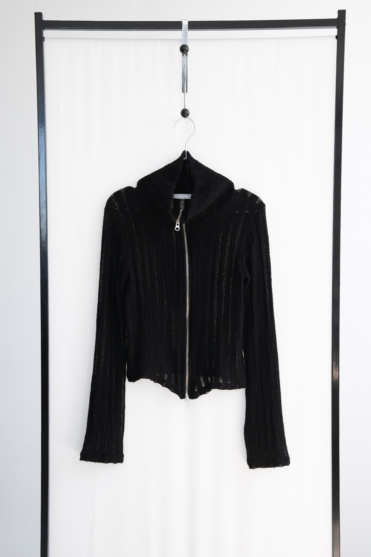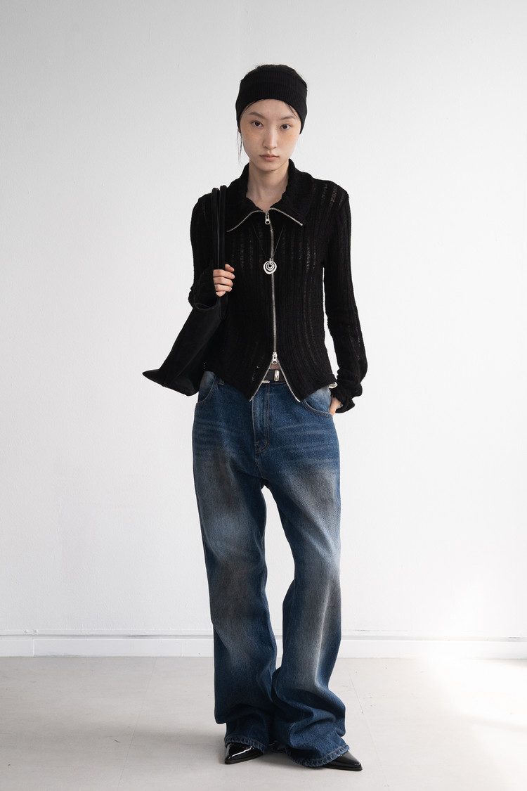 [마지막 재고] Two Way Zip High Neck Cardigan (Black)