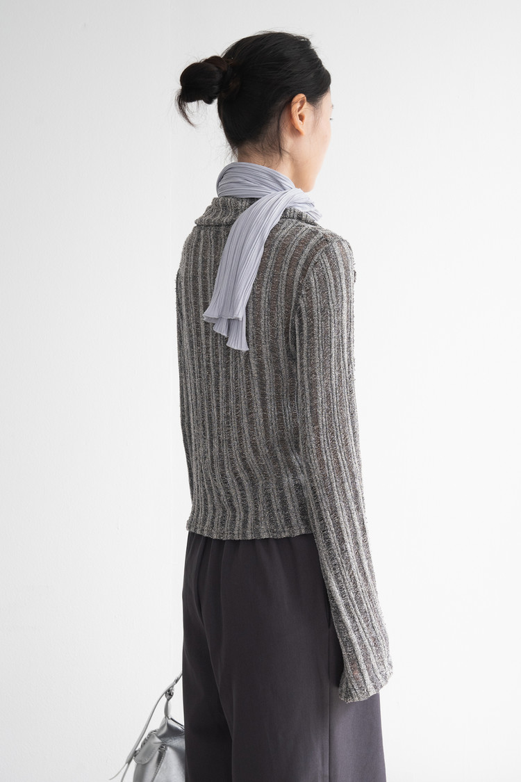Two Way Zip High Neck Cardigan (Gray)