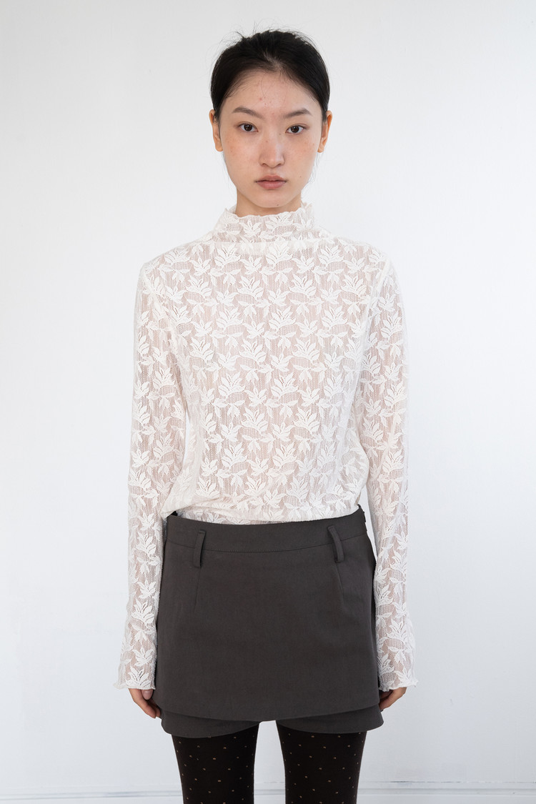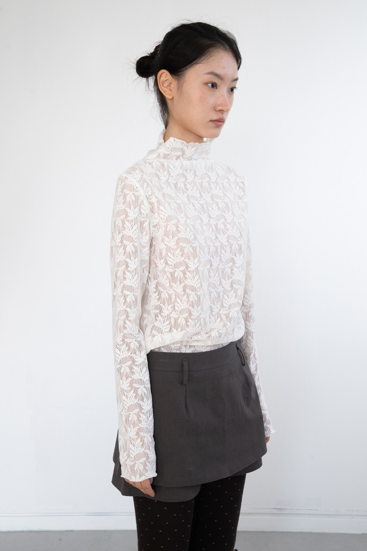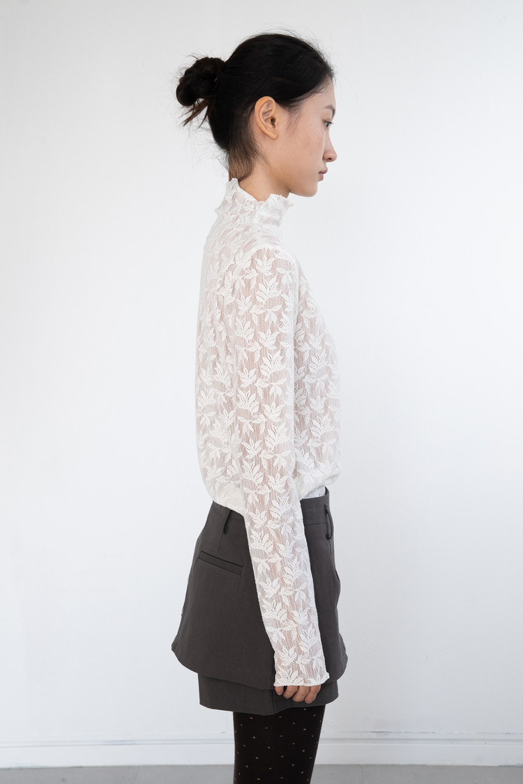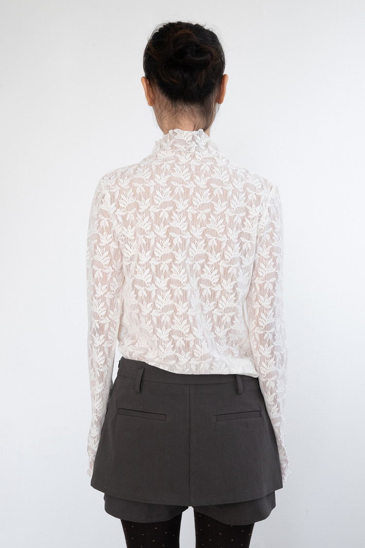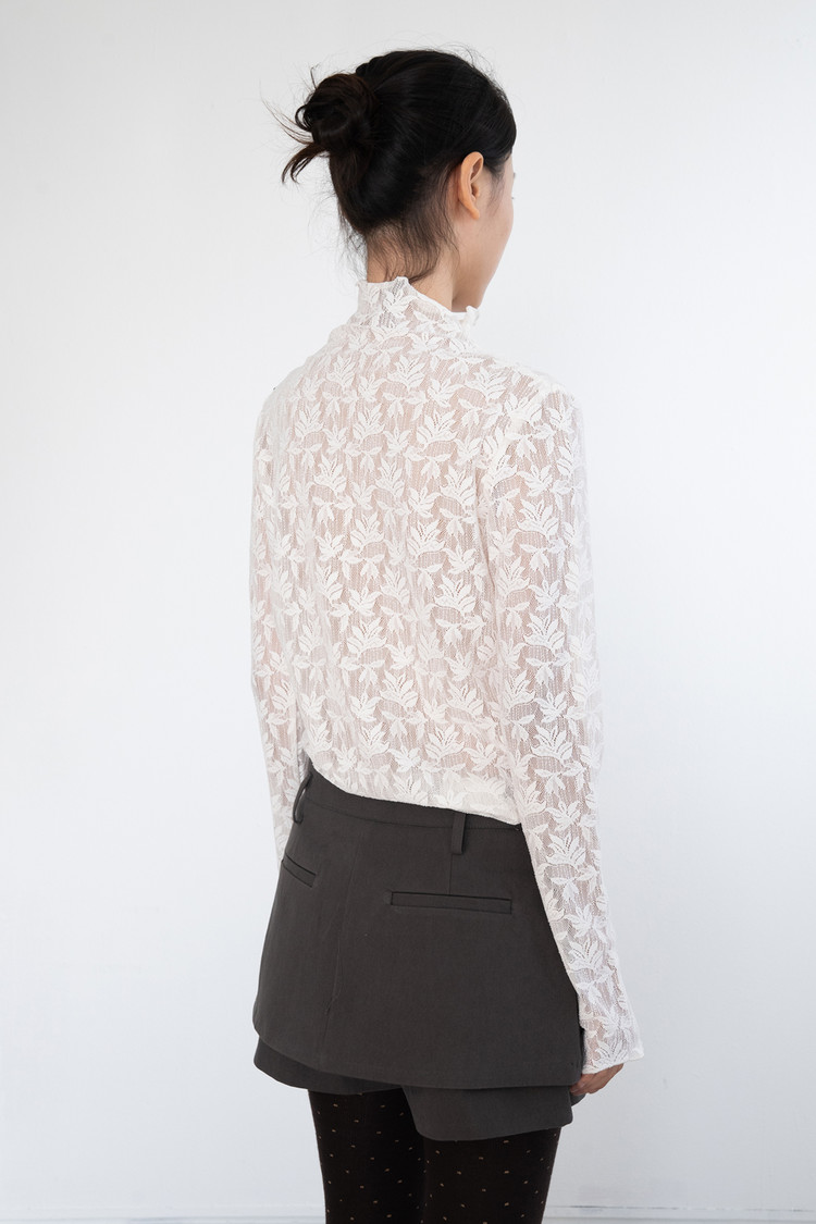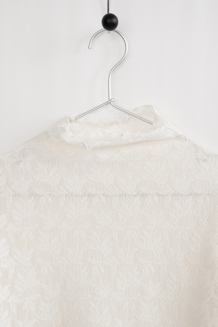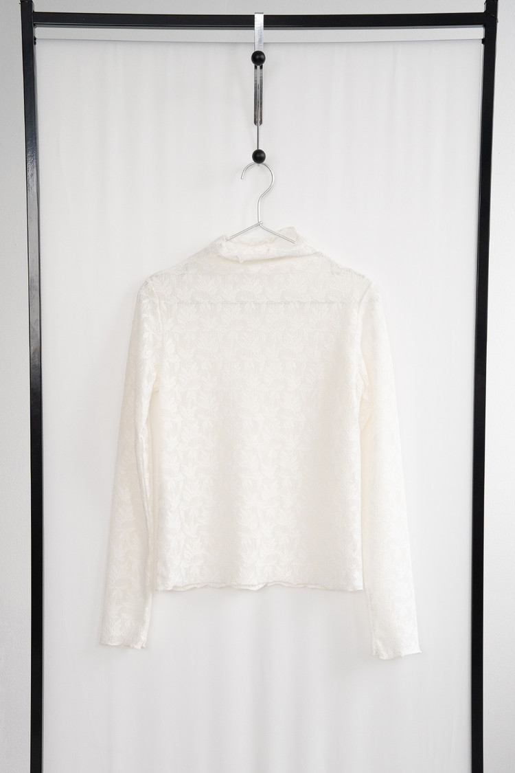 Middle Neck Flower Mesh Top (Ivory)