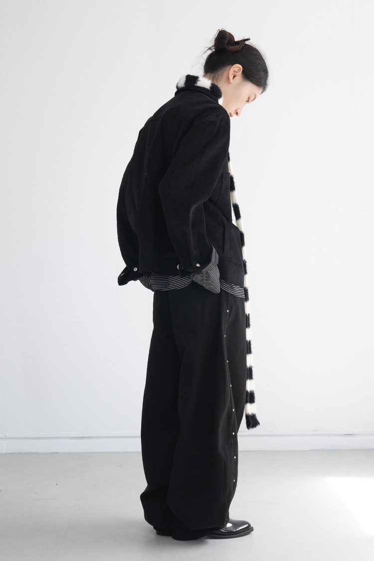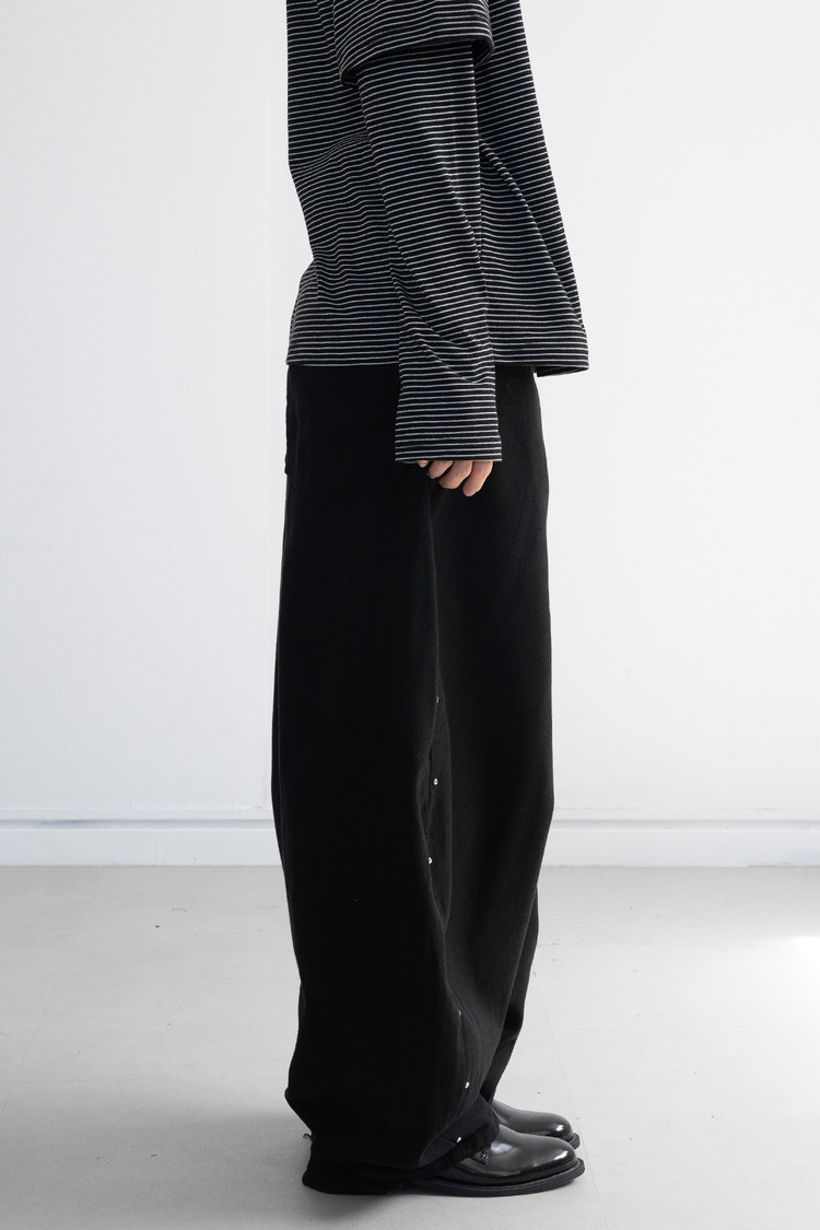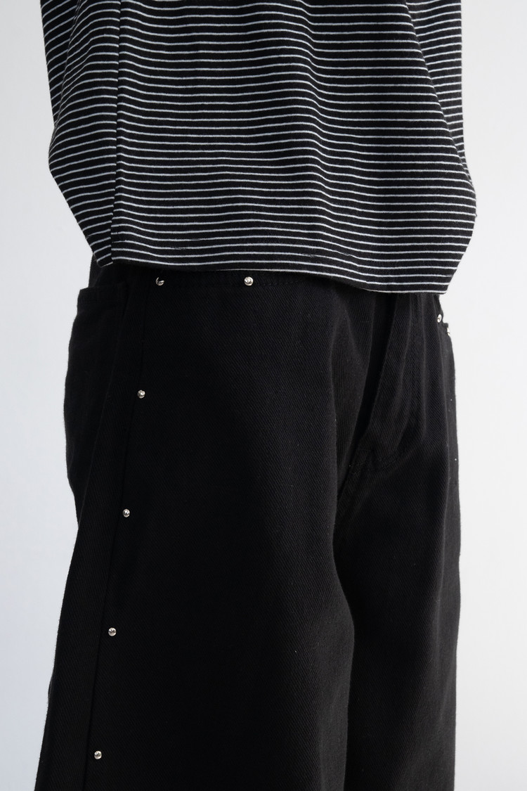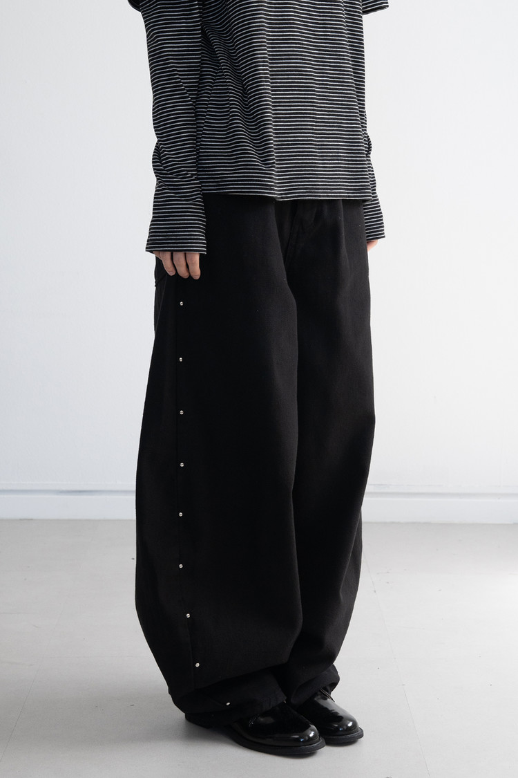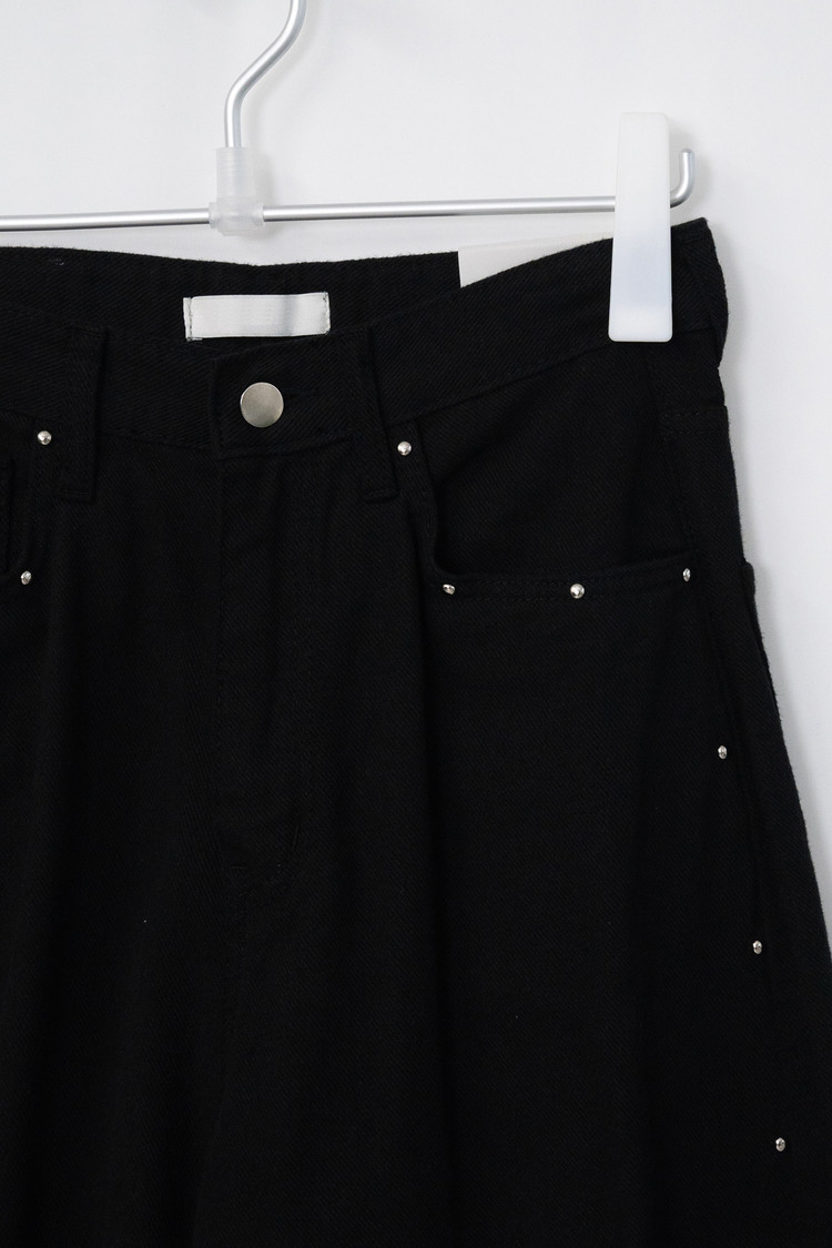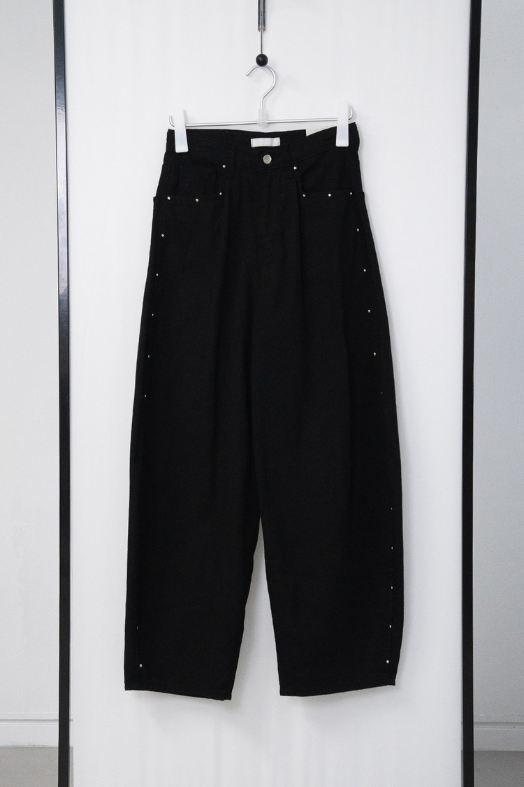 Stud-Curved Cotton Pants (Black/3size)