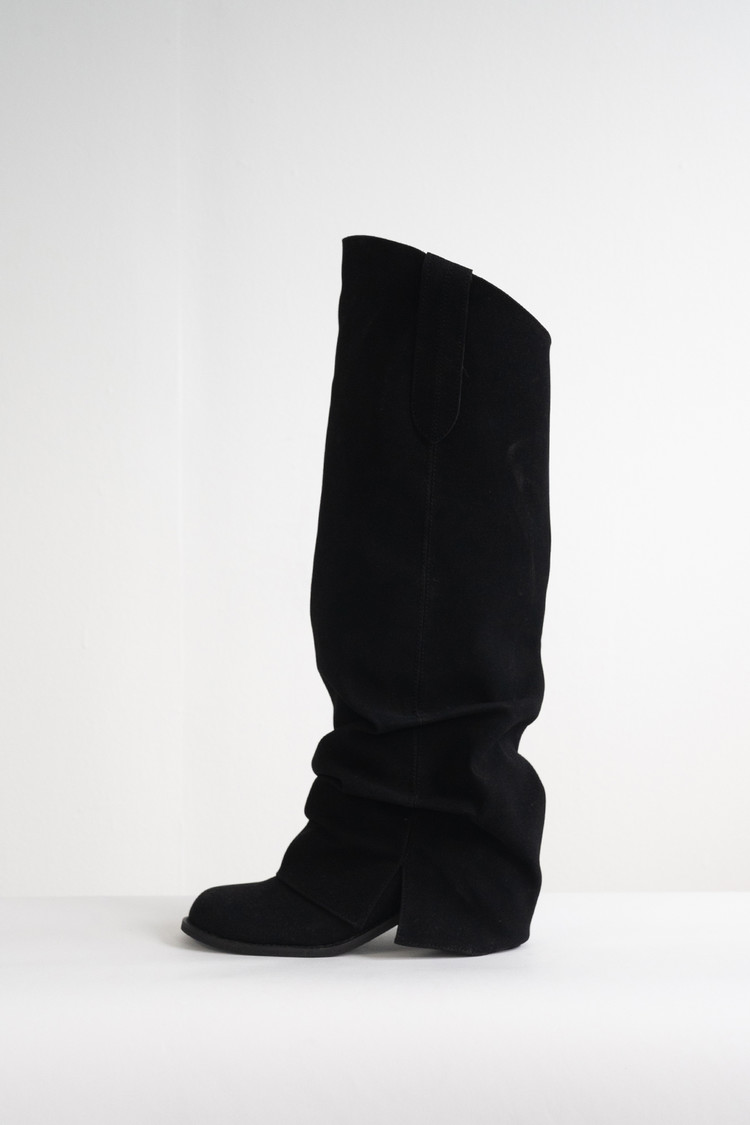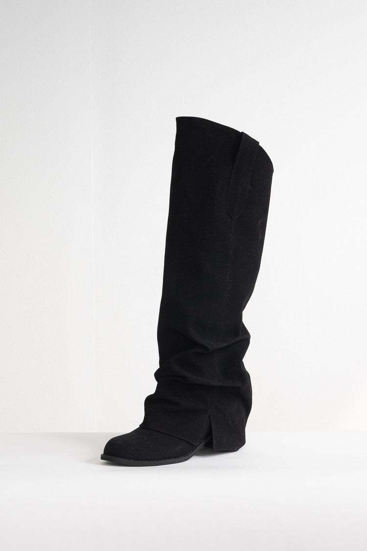 Suede Folding Warmer Boots (Black/6cm)