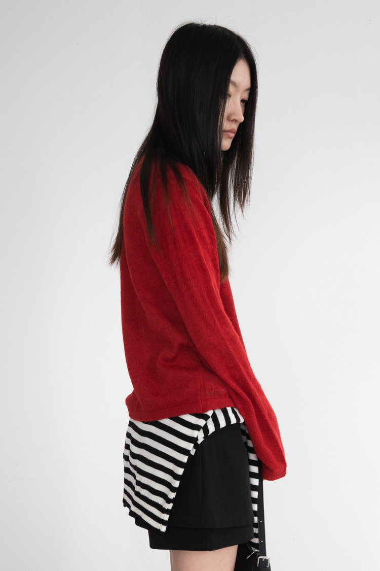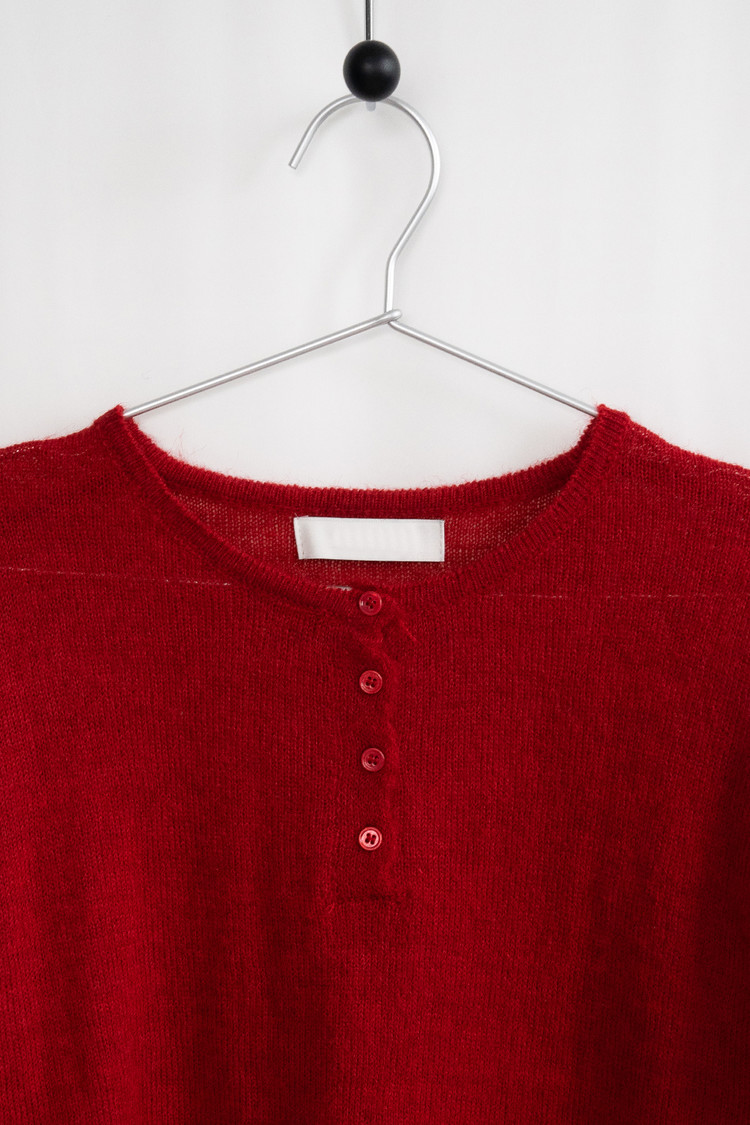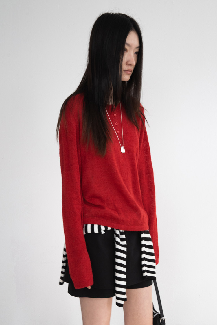 Henry Neck Button Knit (Red)