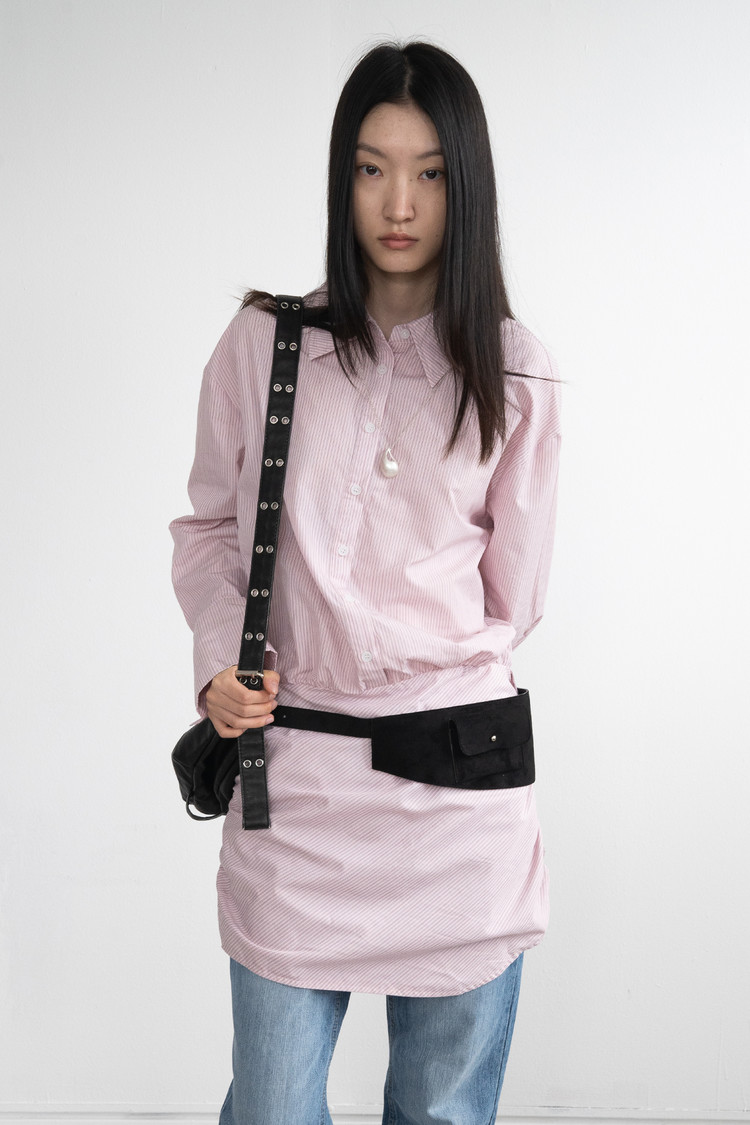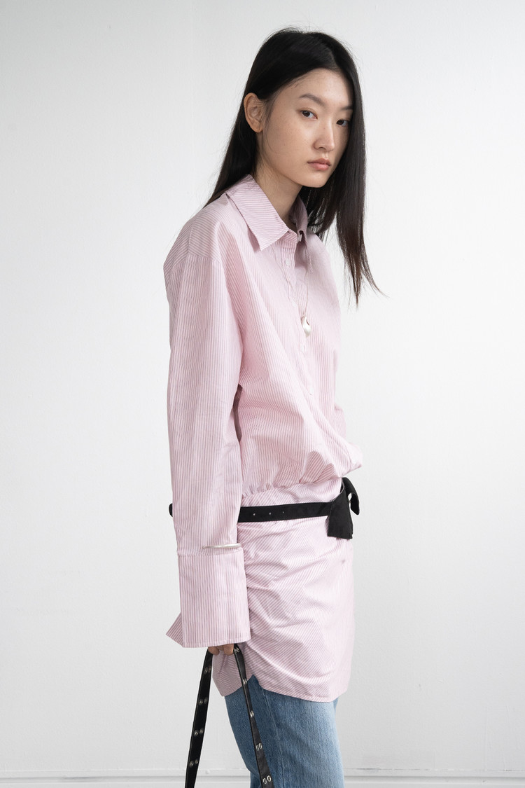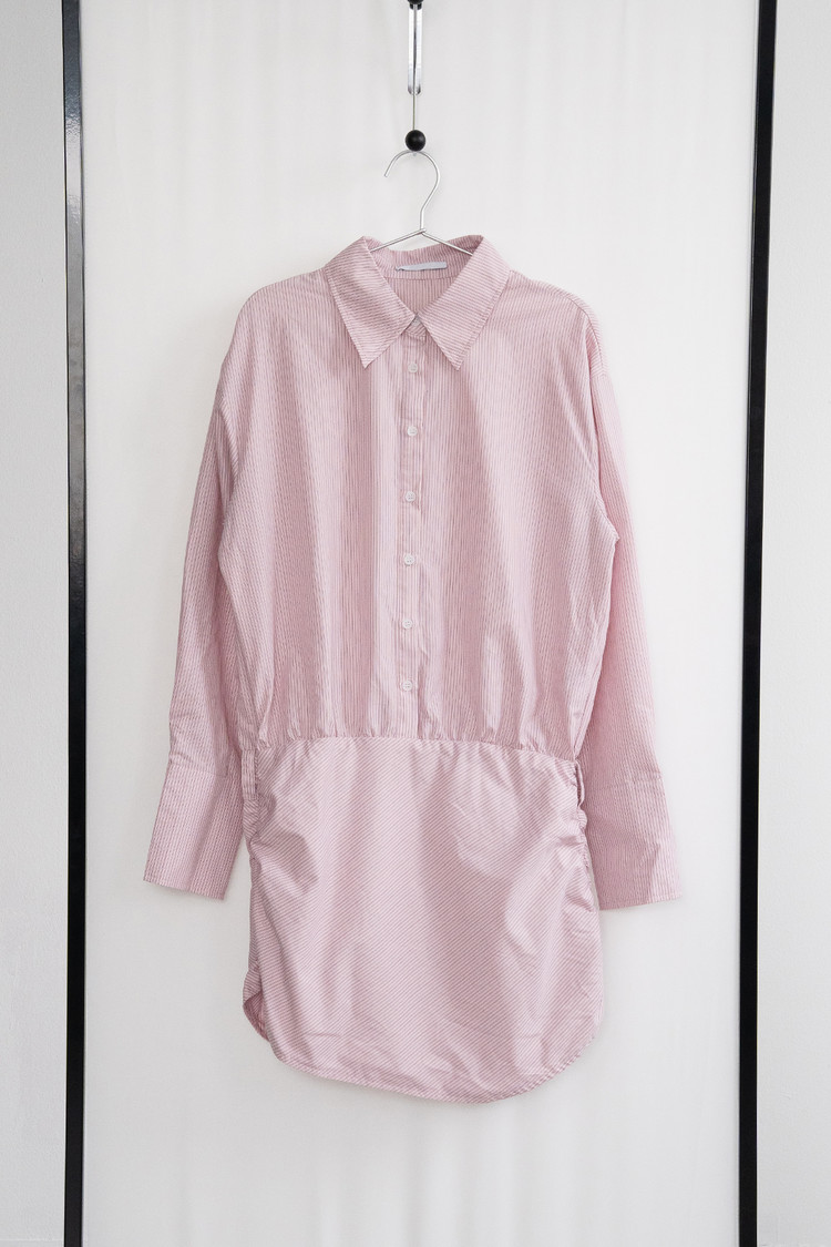 Long Shirt Shirring Dress (Pink)