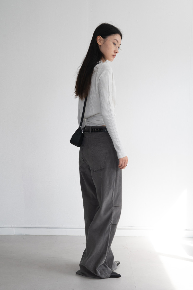 Pintuck Corduroy Bootcut Pants (Charcoal/2size)