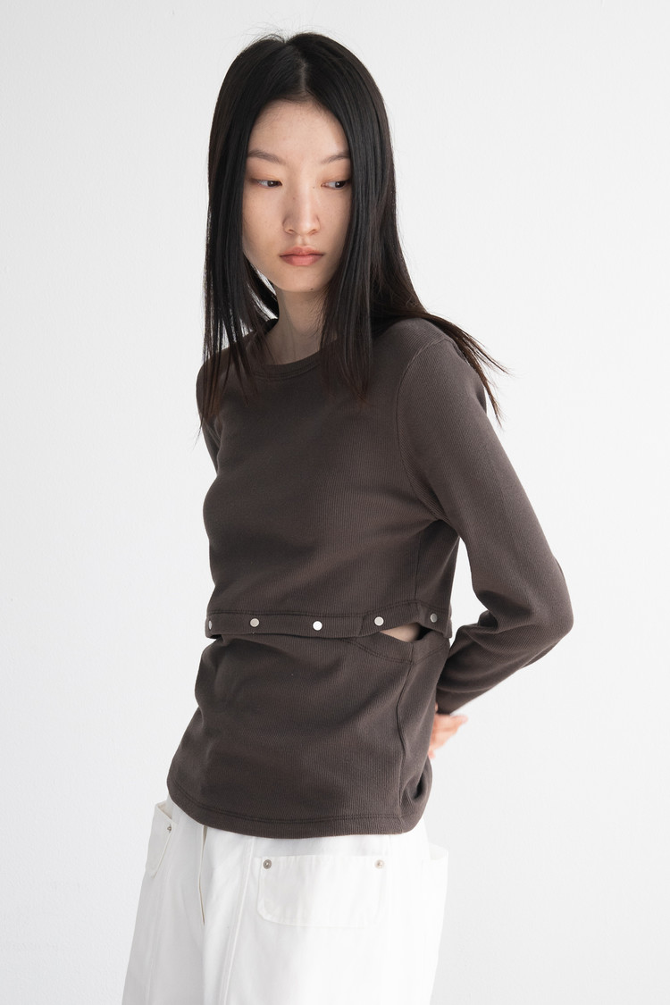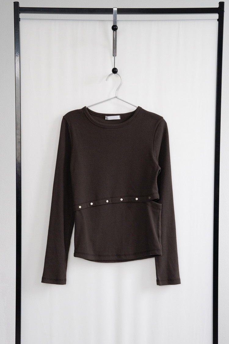 Rivet Side Slit Top (Brown)
