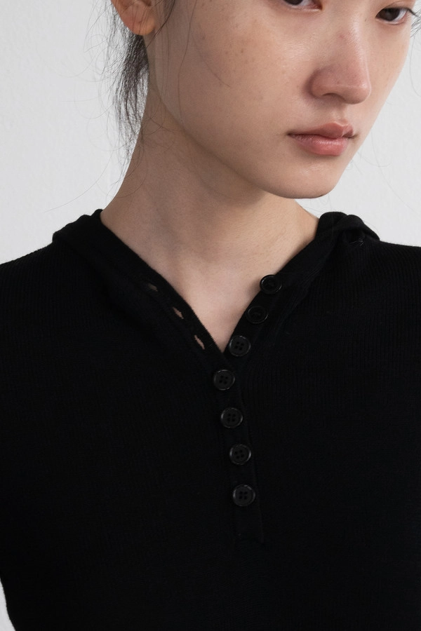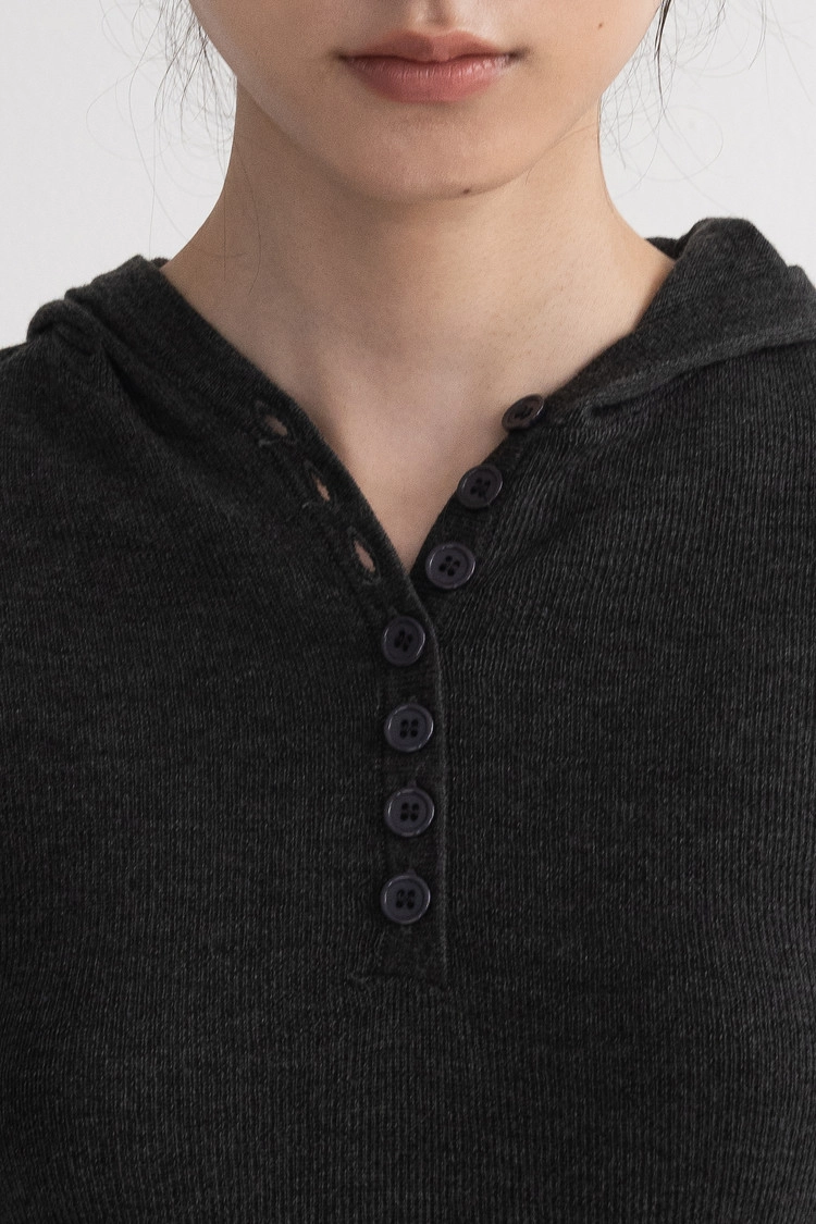 Basic Button Knit Hood (Charcoal)SOLDOUT