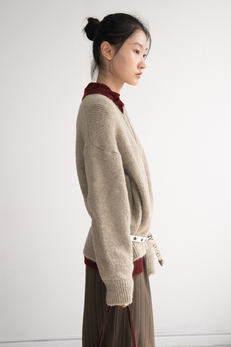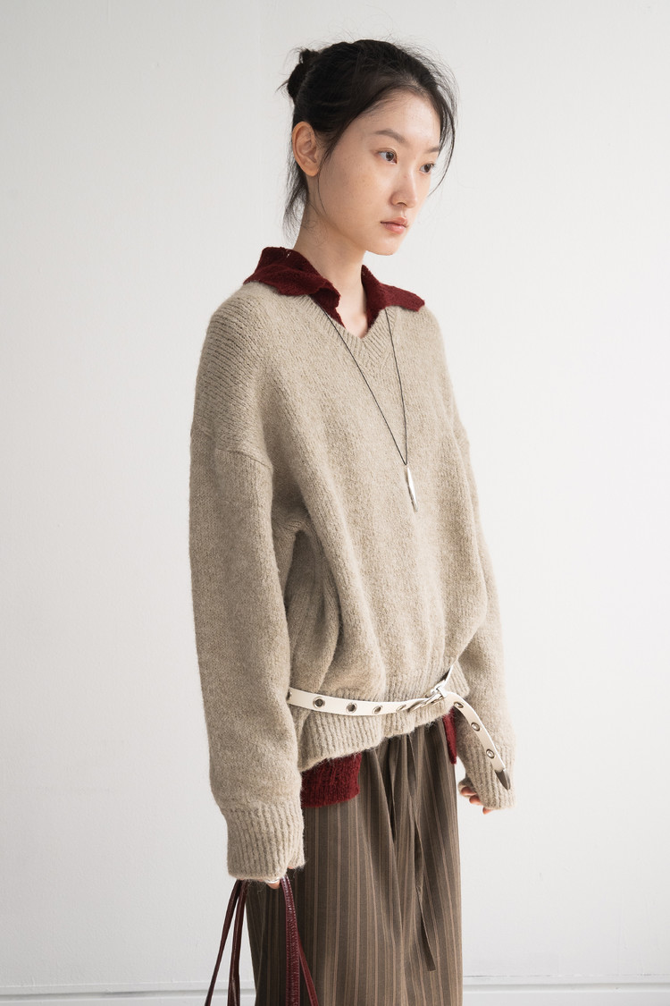[11/13 출고 예정] Brush V Neck Knit Top (Khaki Beige)