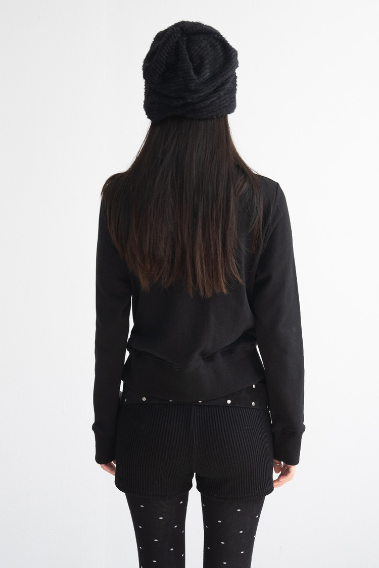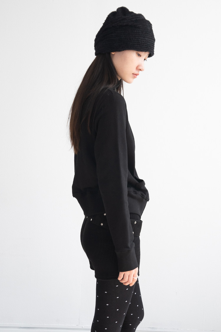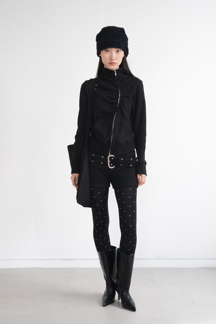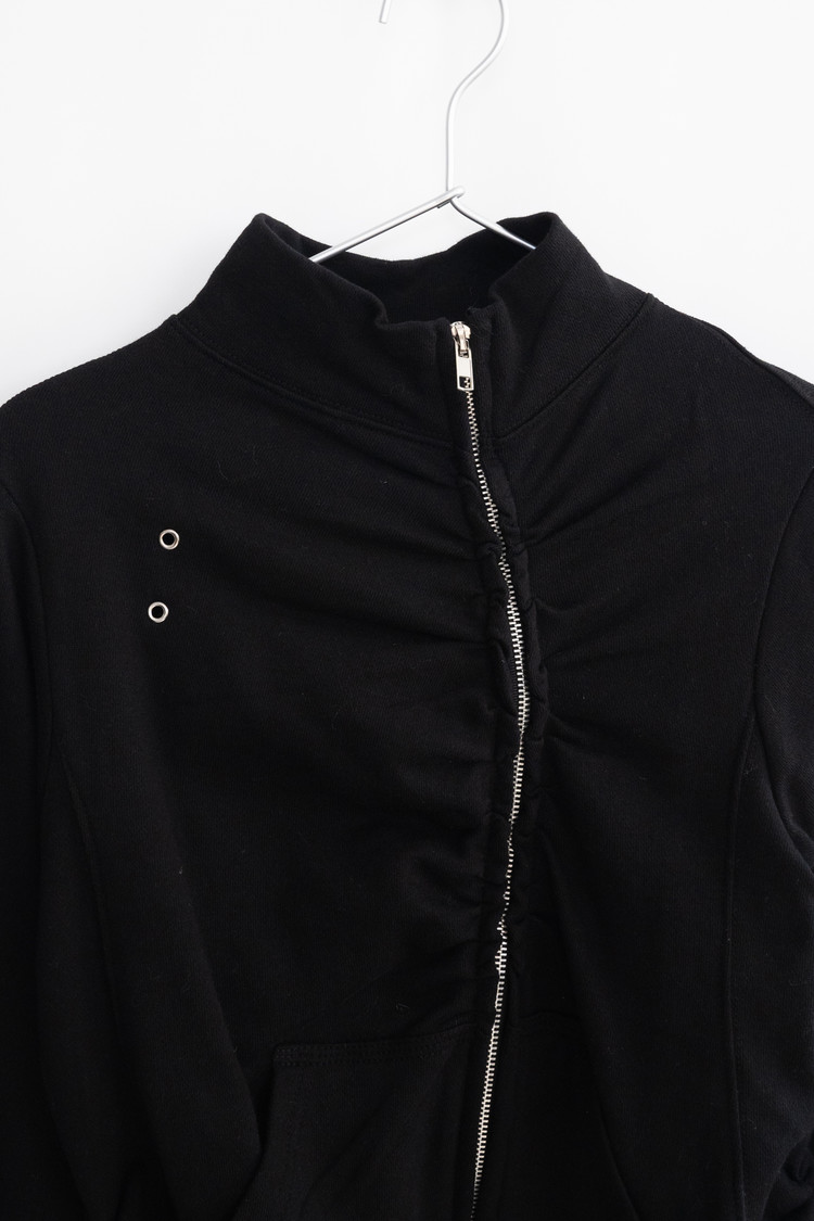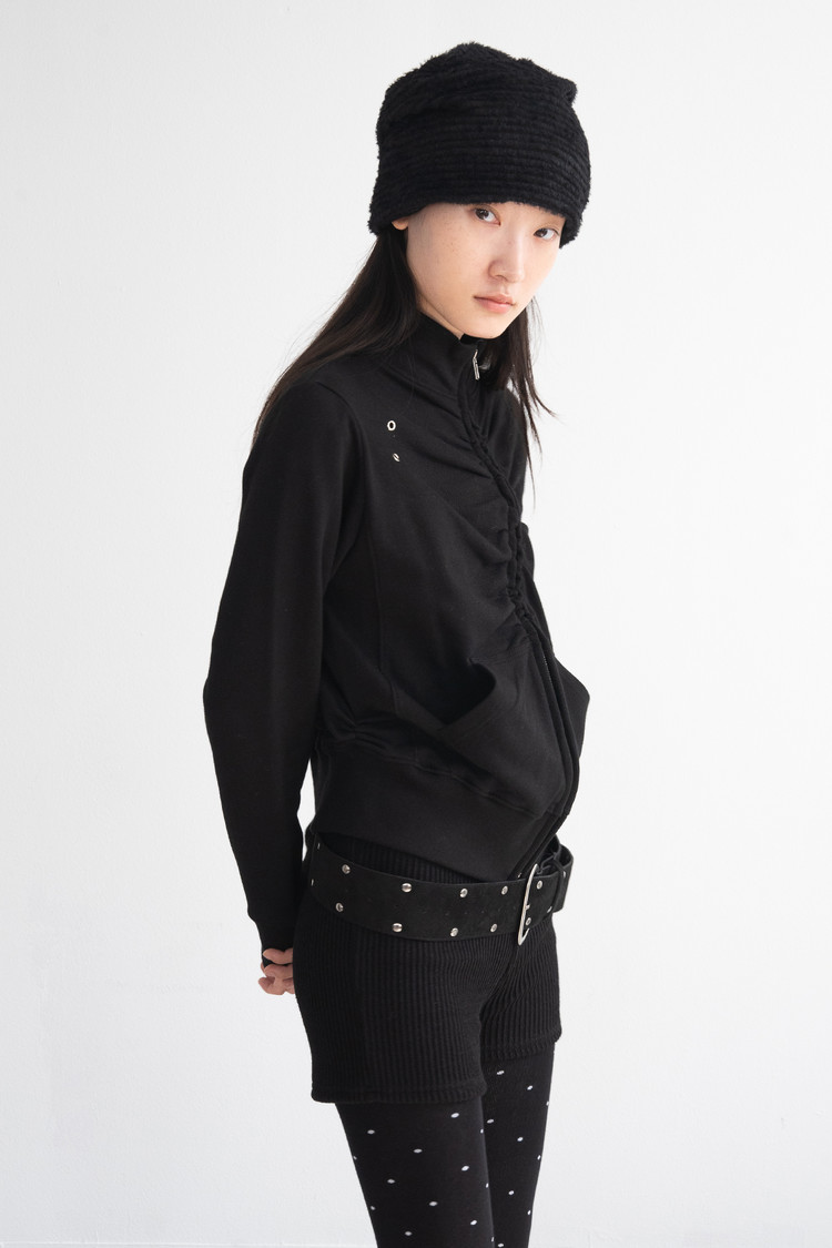 Eyelet Diagonal Shirring Zip Up (Black)