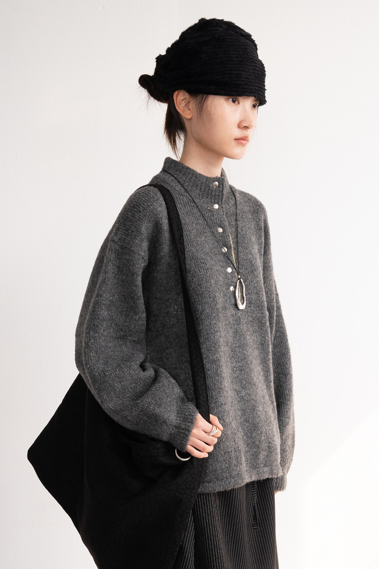 Heavy Anorak Colored Knit (Charcoal)