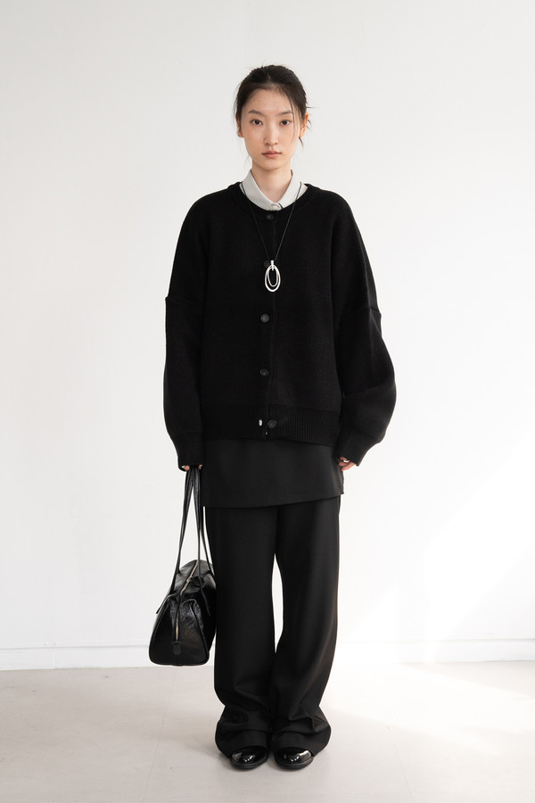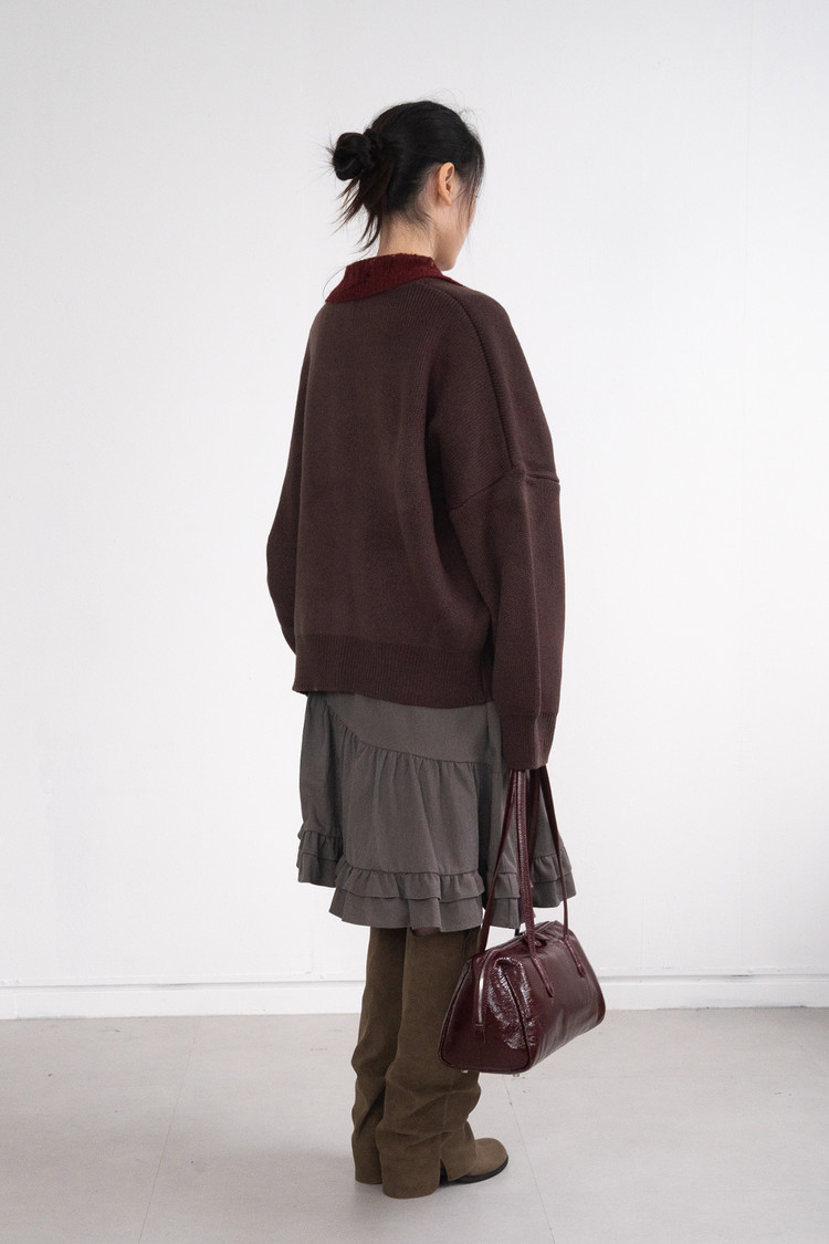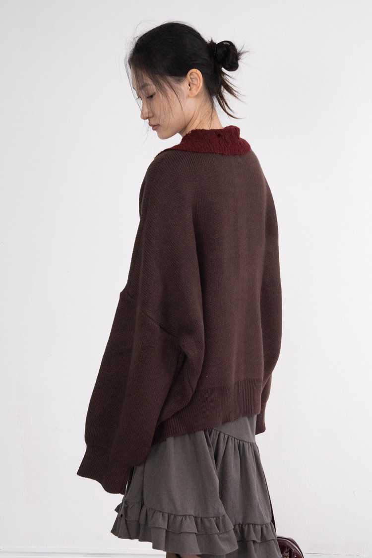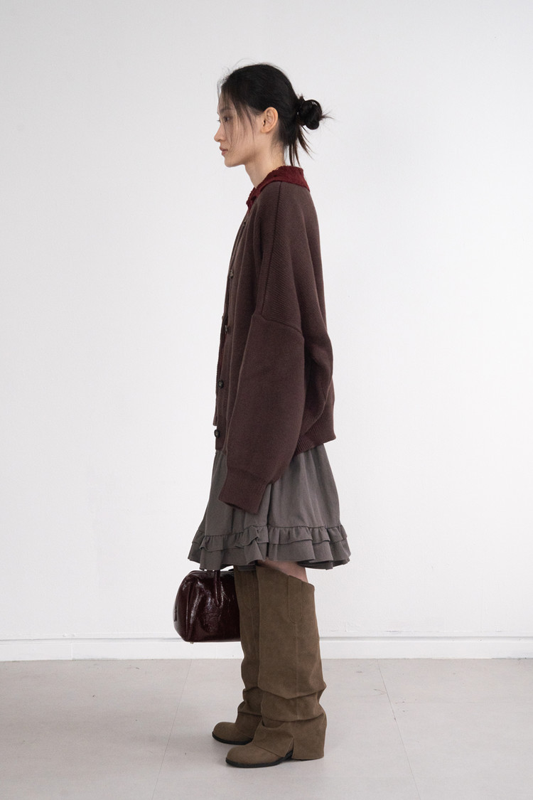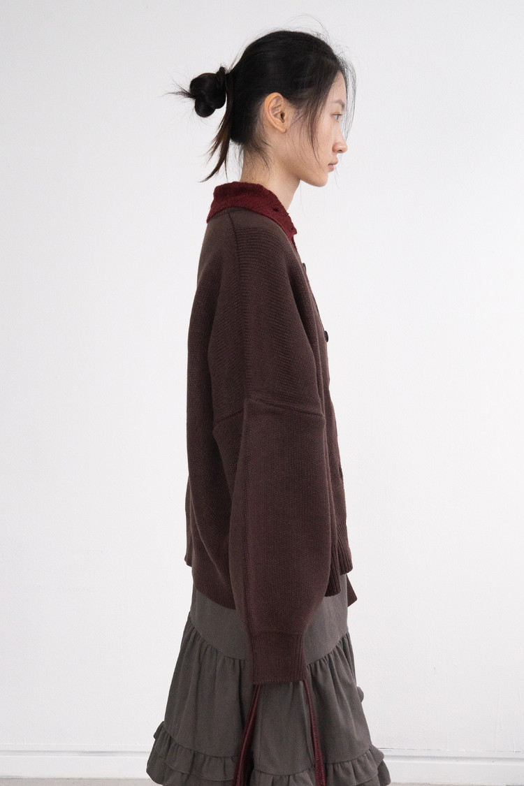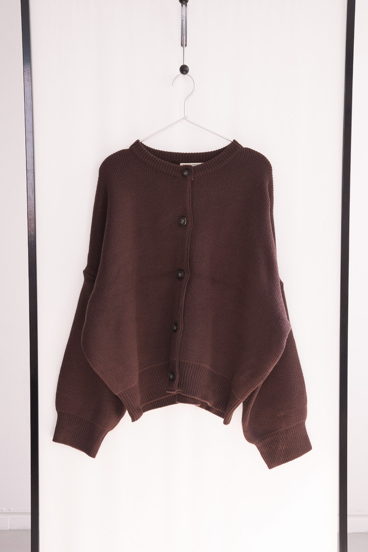 Heavy Round Boxy Cardigan (Brown)