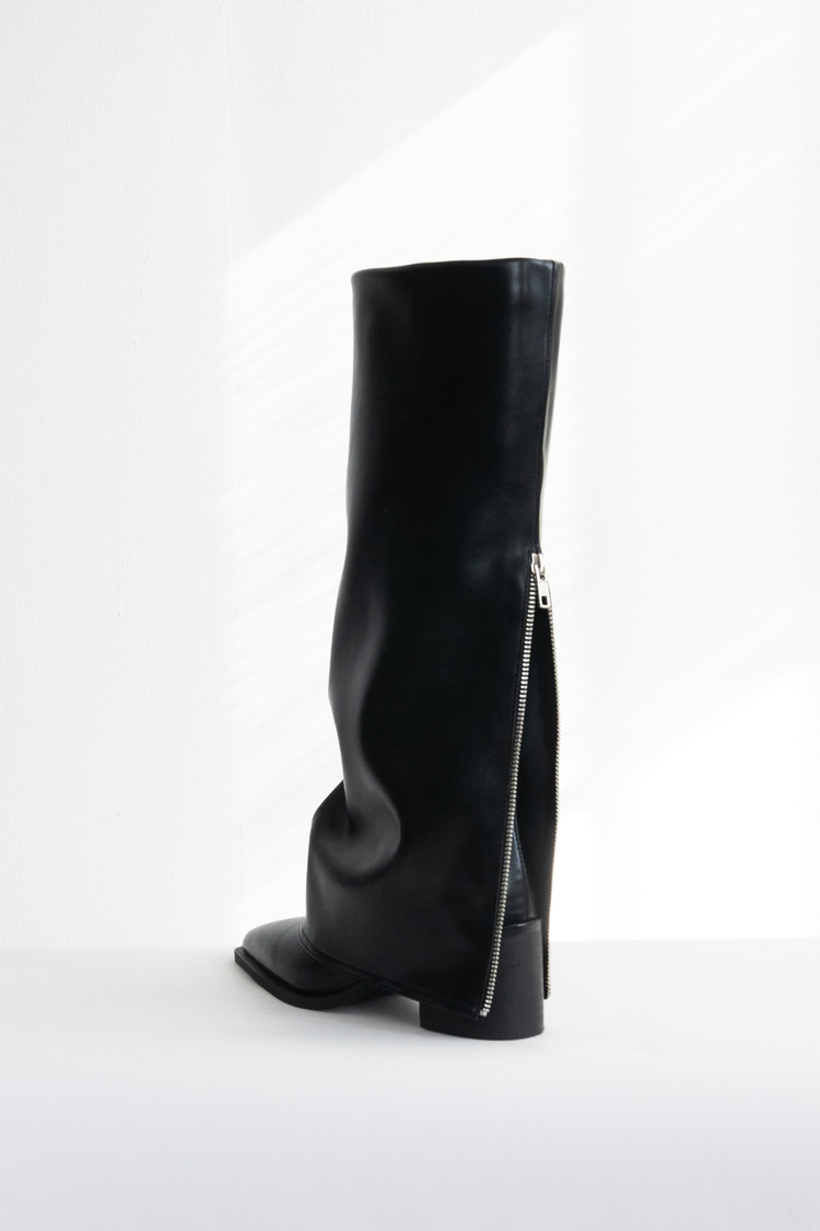 Back Zipper Stiletto Long Boots (Black/7cm)