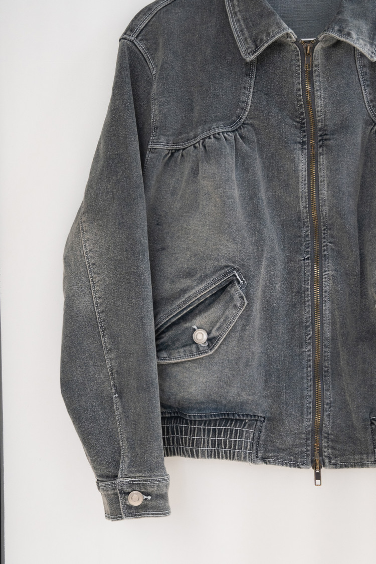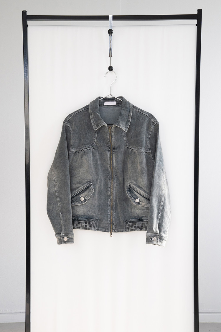 Faded Curve Line Two Way Denim Blouson (Blue)