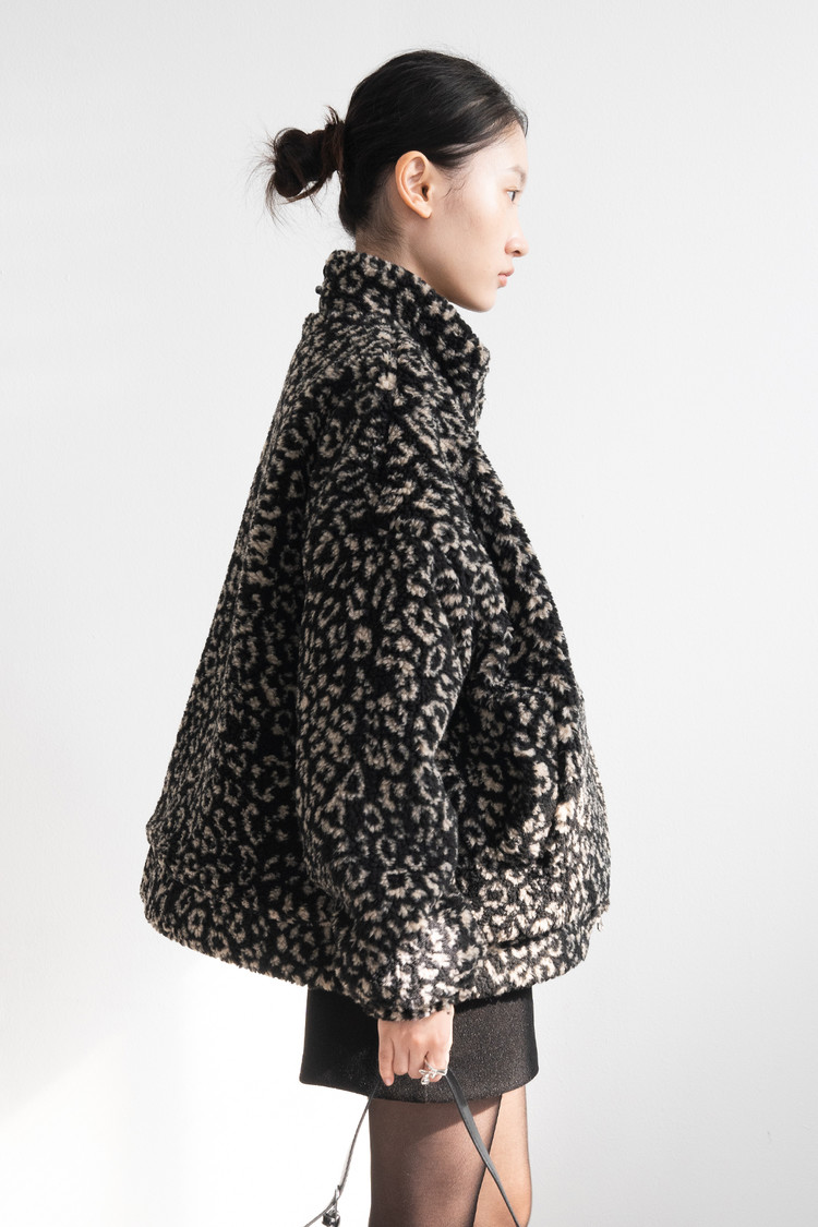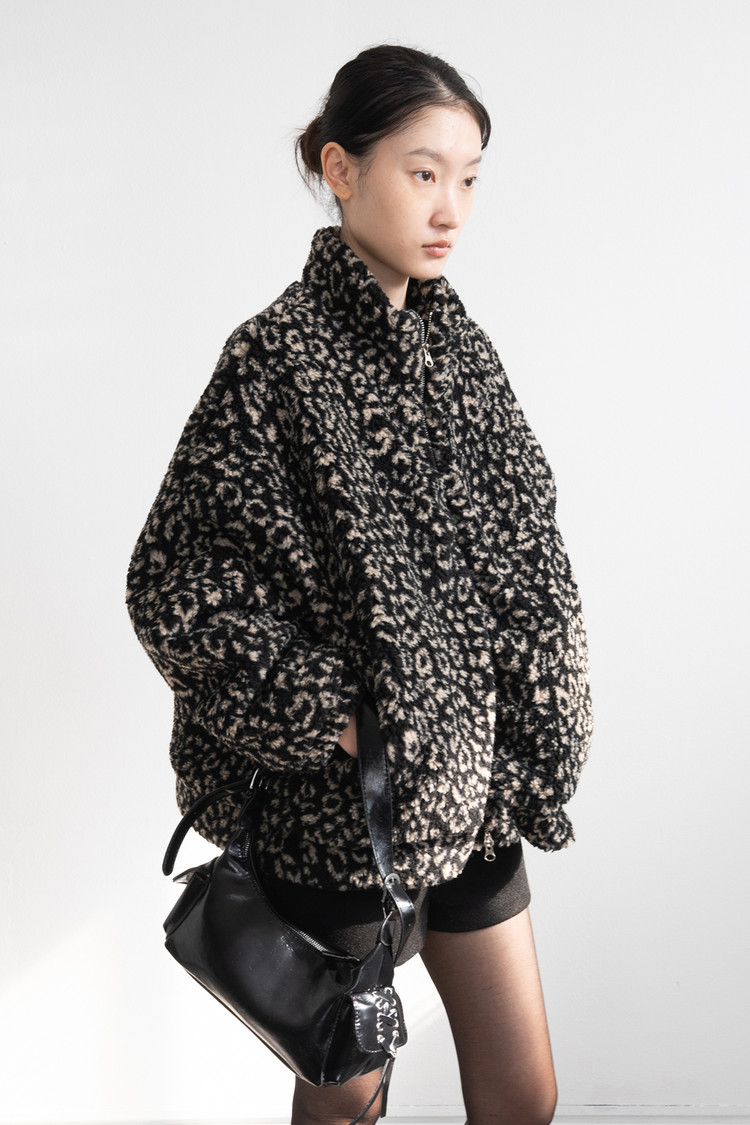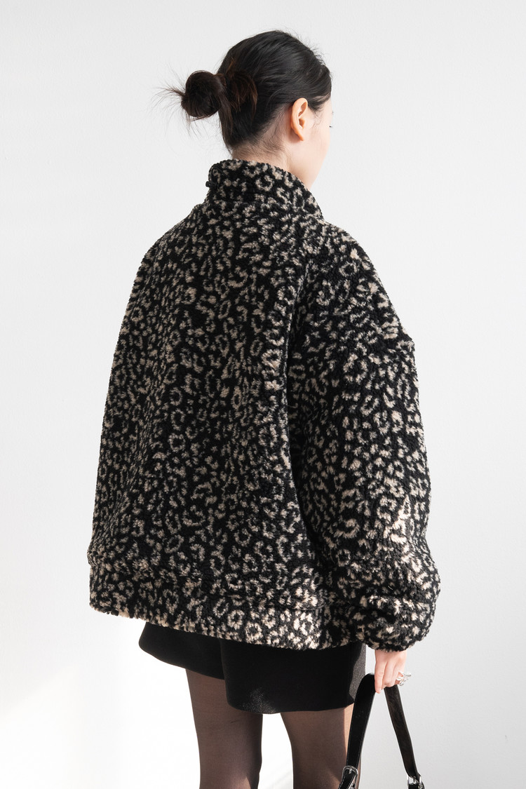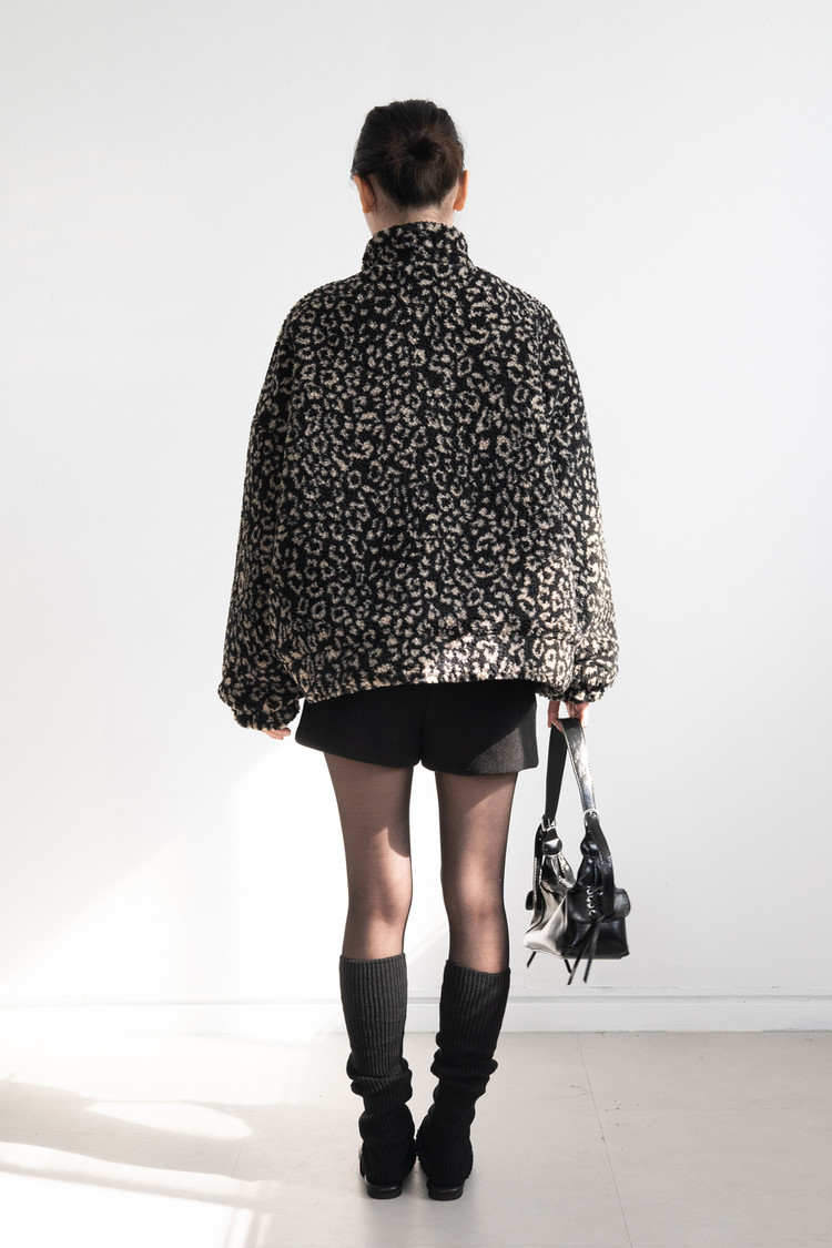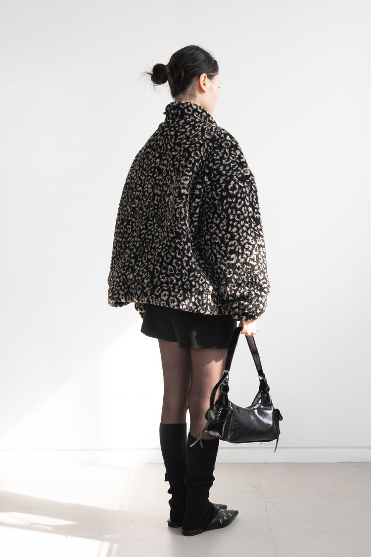 Leopard Bookle Two Way String Jumper (Black)