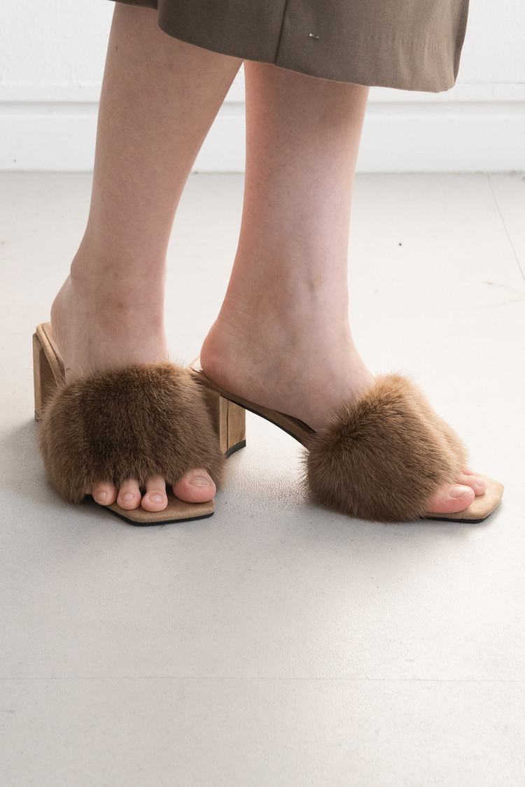 Mink Fur Mule (Brown/6cm)
