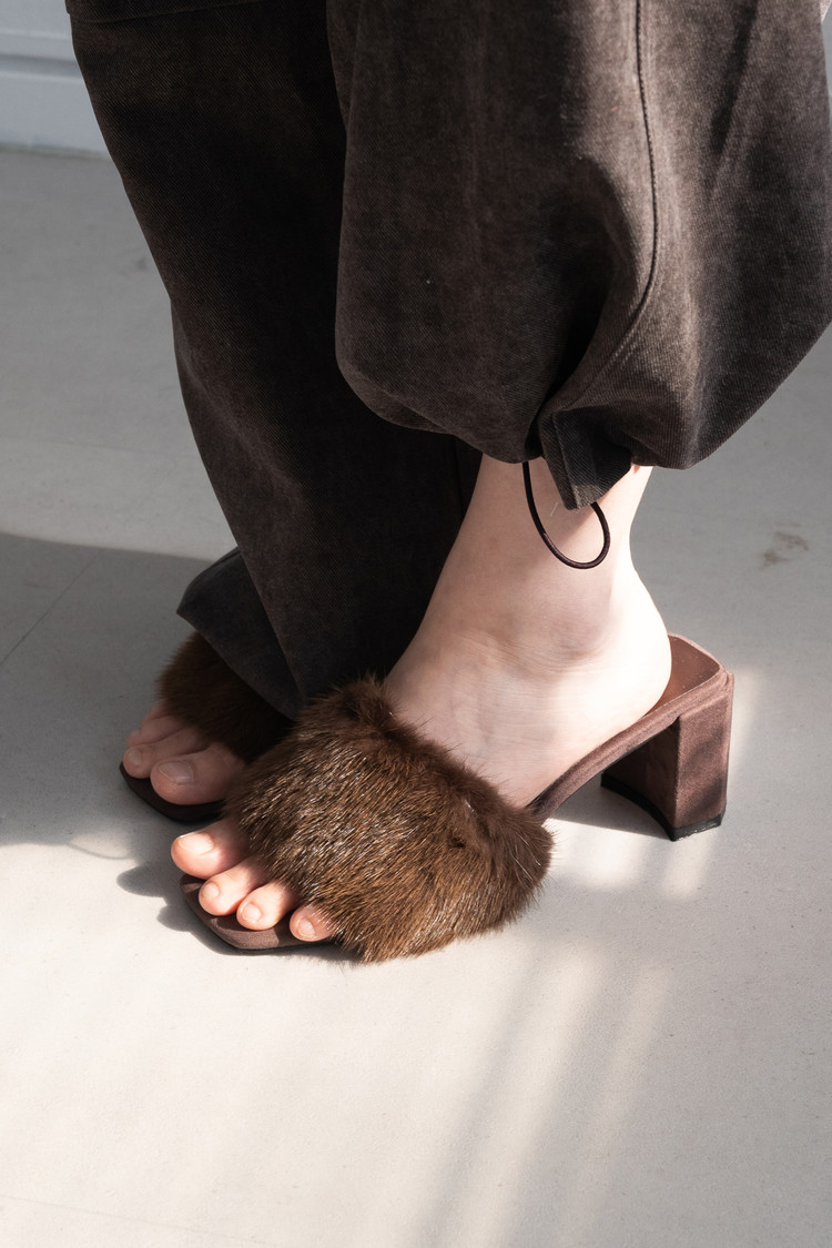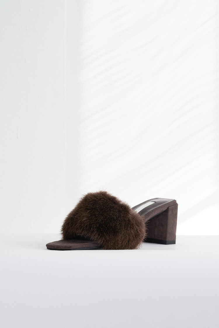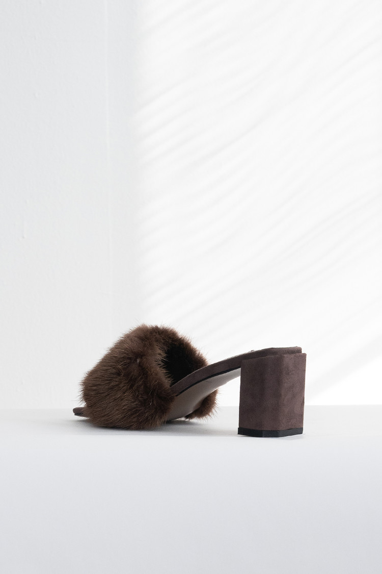 Mink Fur Mule (Dark Brown/6cm)