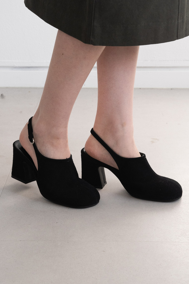 Suede Sling Back Pumps (Black/7cm)