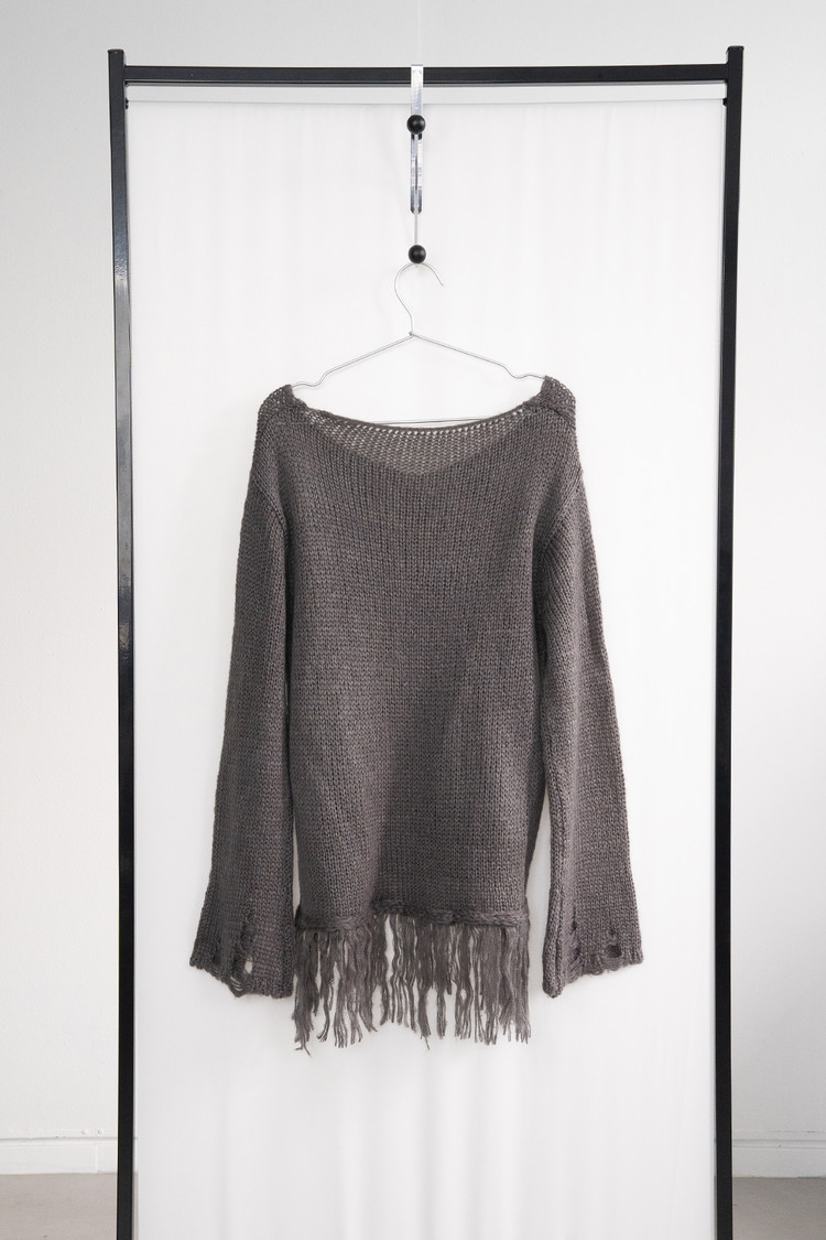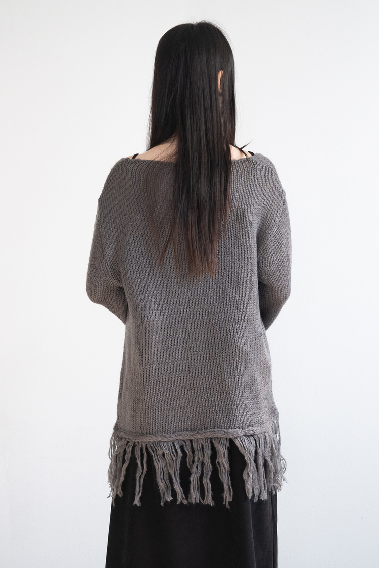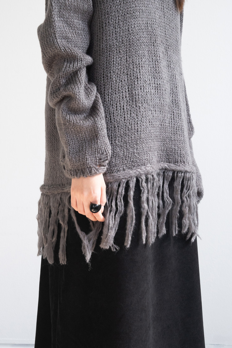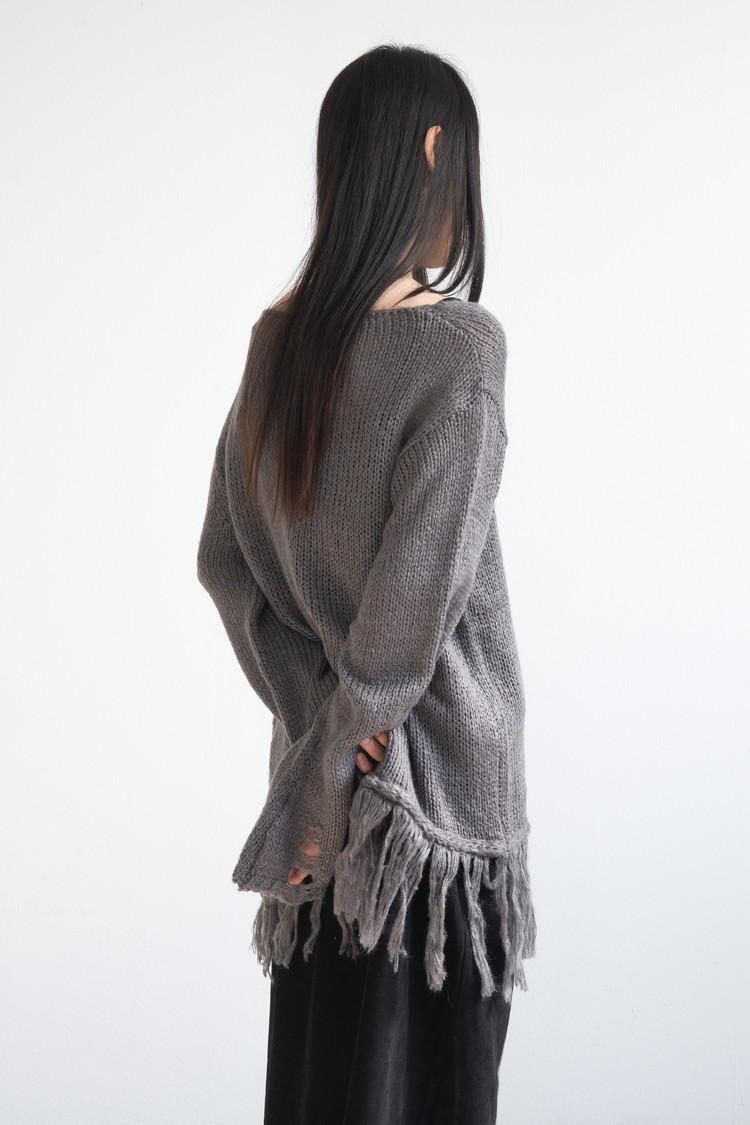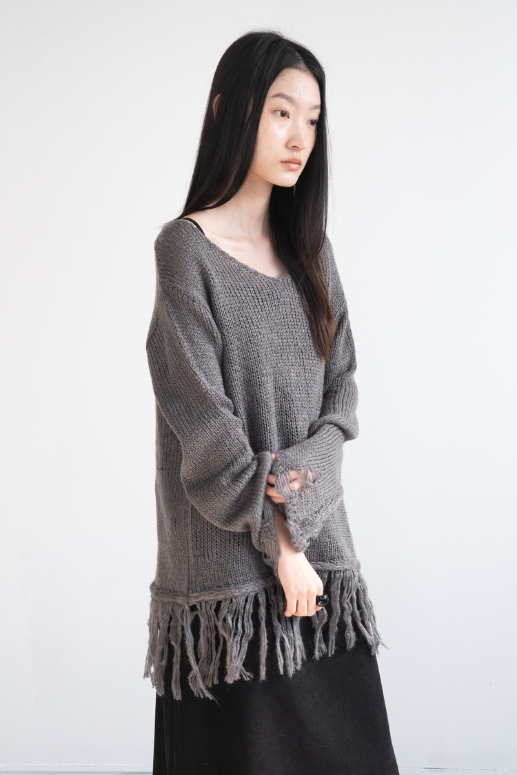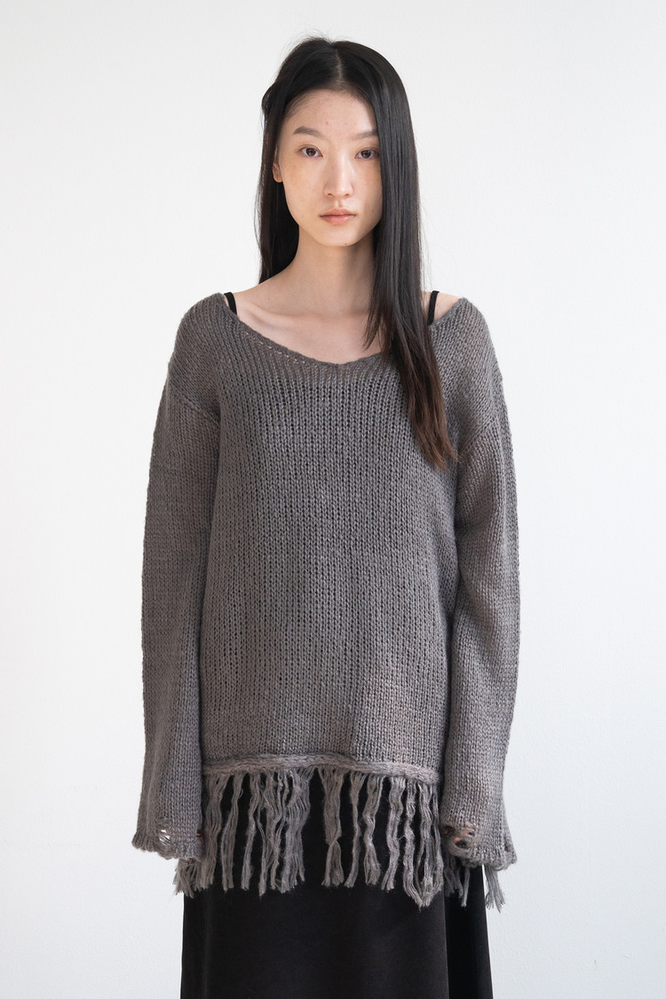 [1/16 순차출고] Fringe V-neck Knit (Charcoal)