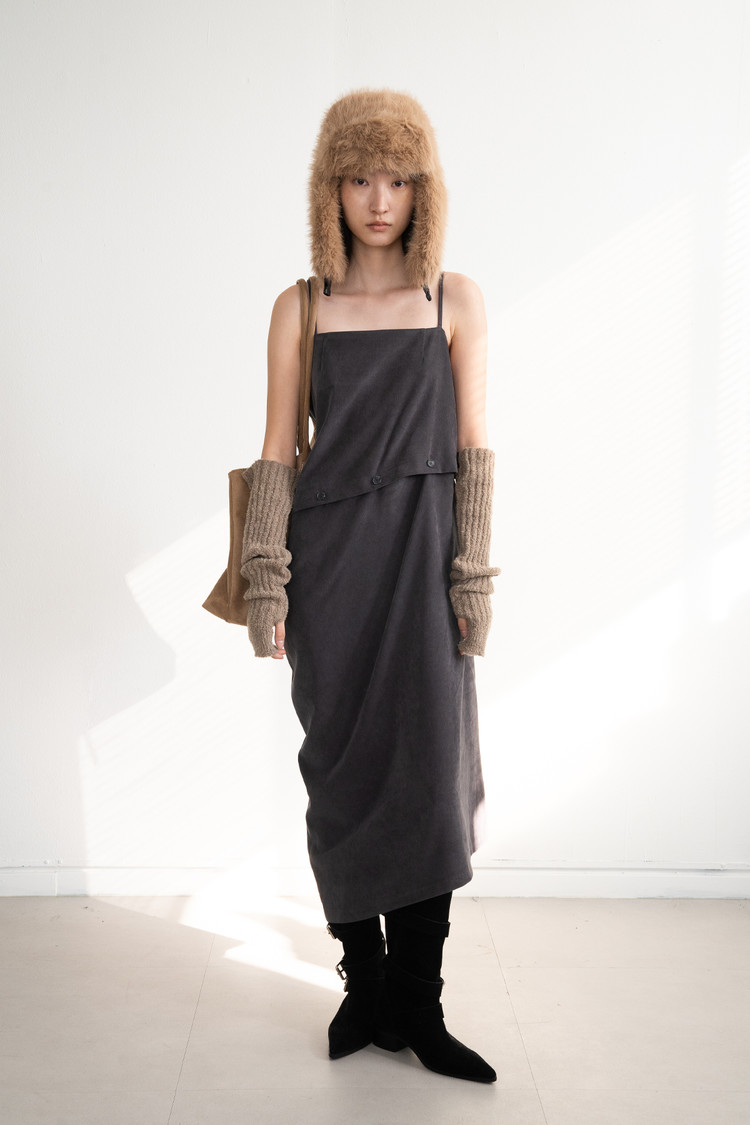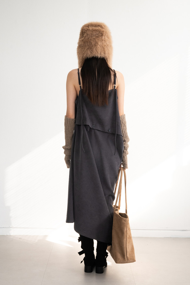 Two-Piece Button Dress (Charcoal)