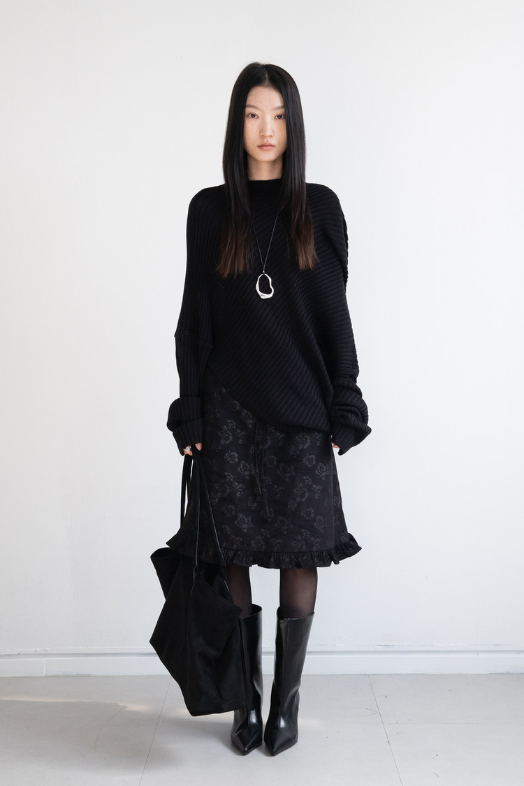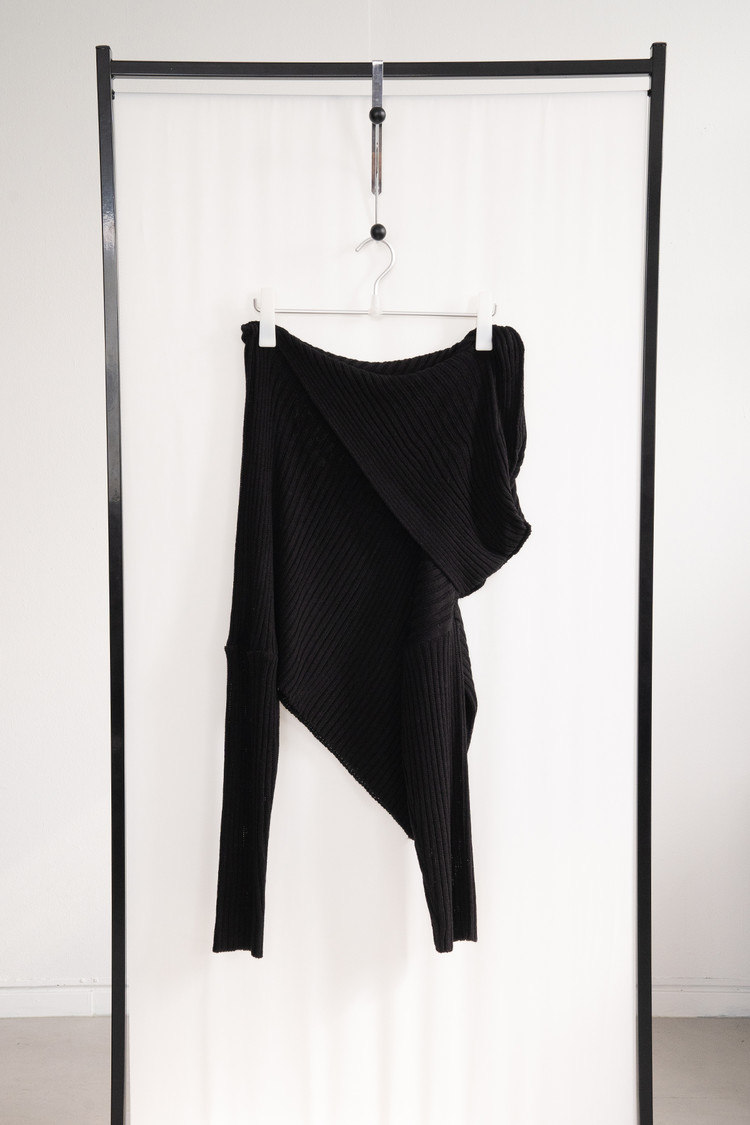 Unbalance Off Hooded Knit (Black)