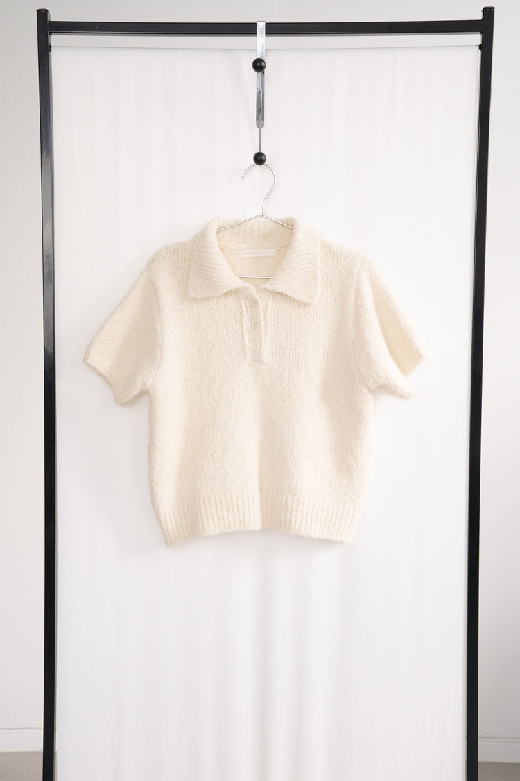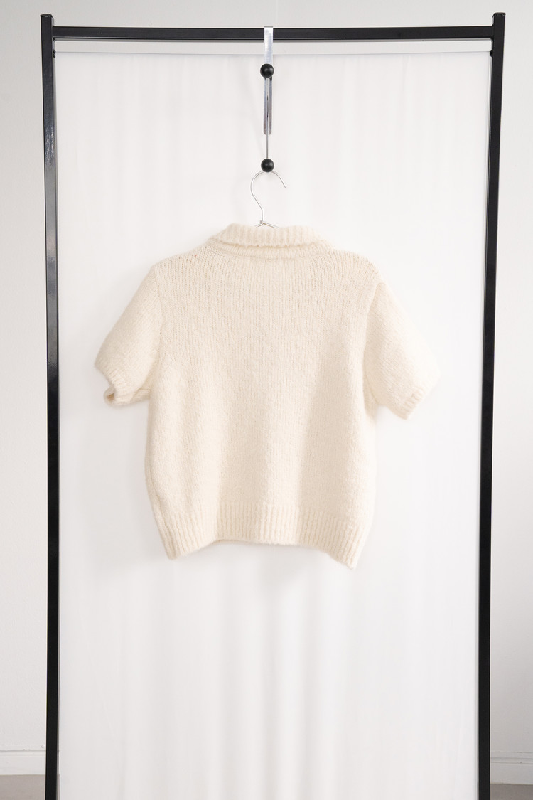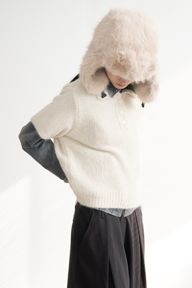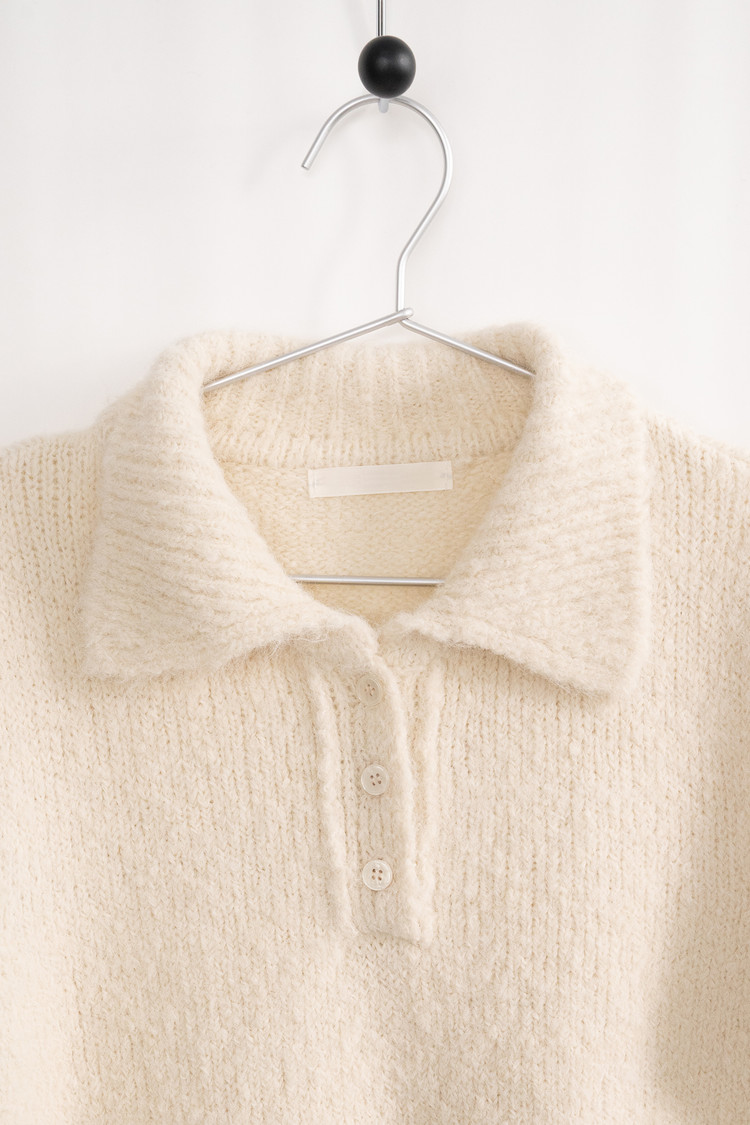 Wool Button Collar Half Knit (Ivory)