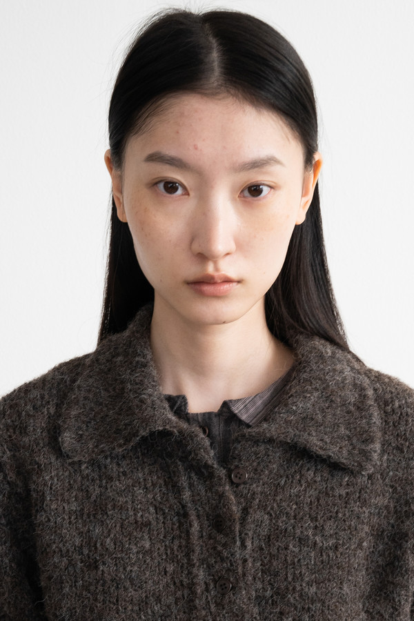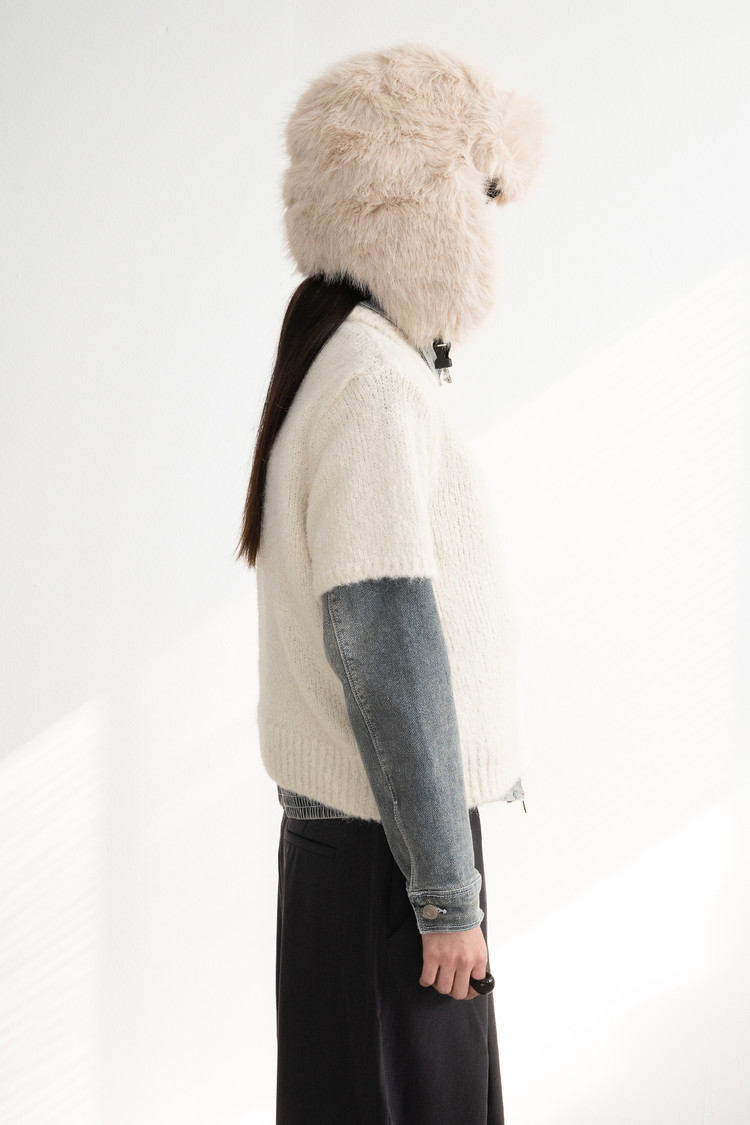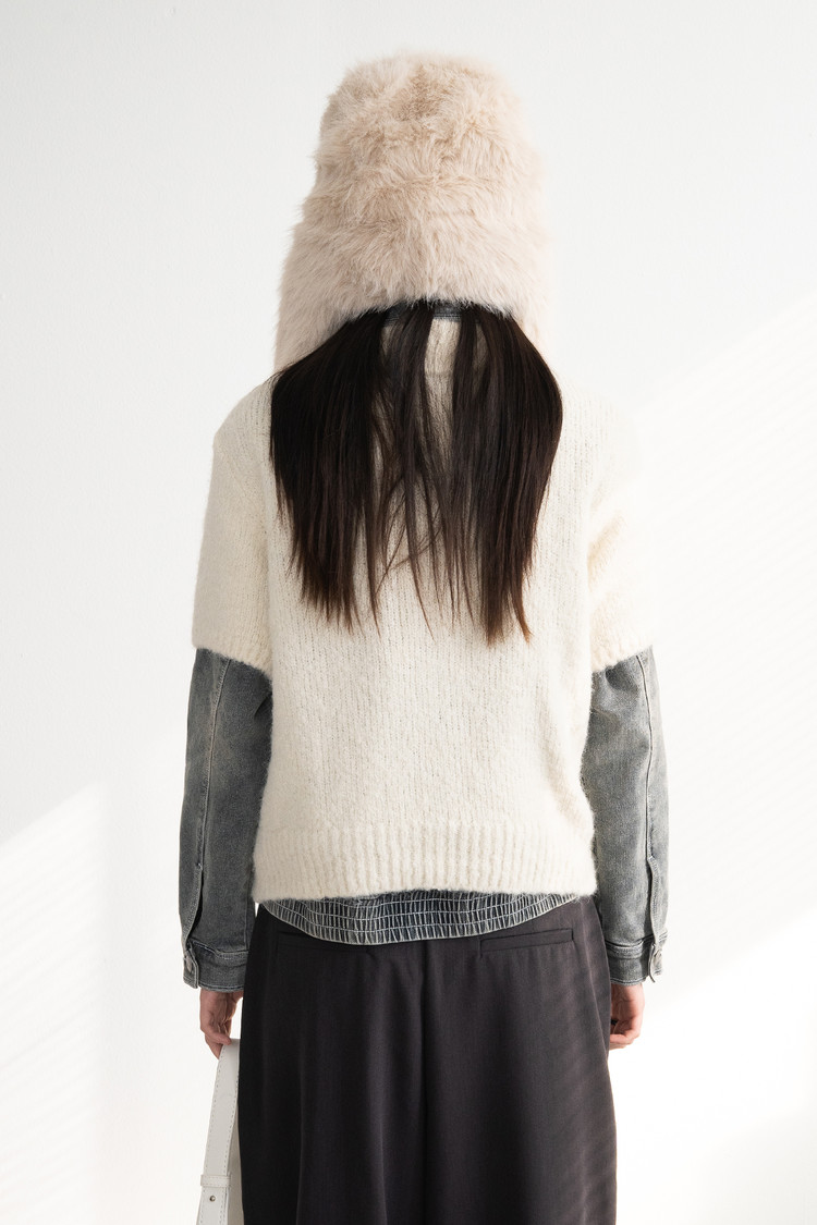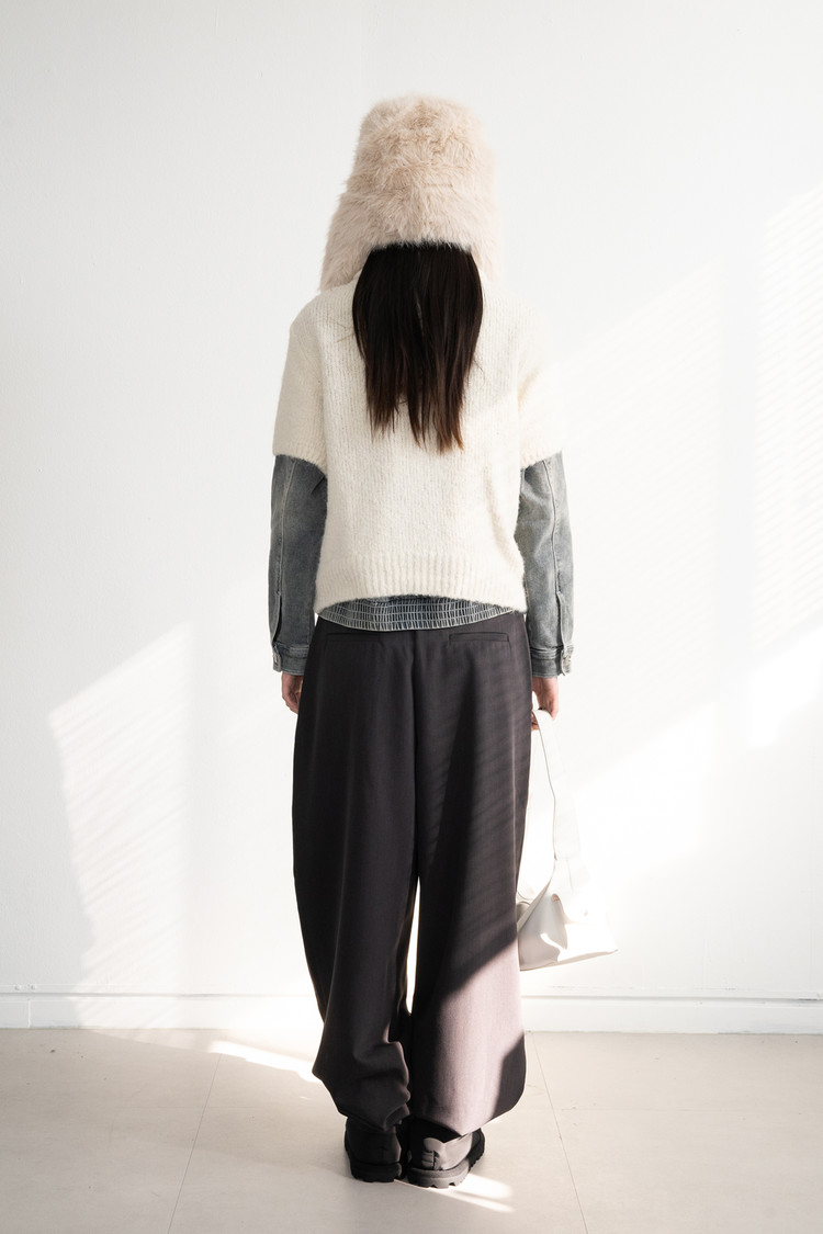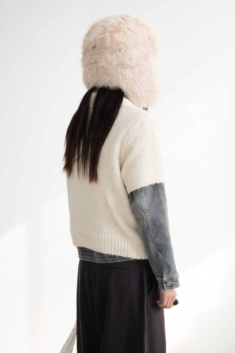 Wool Button Collar Half Knit (Ivory)