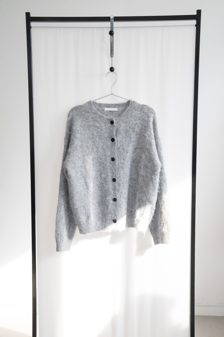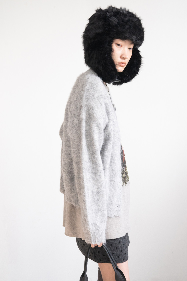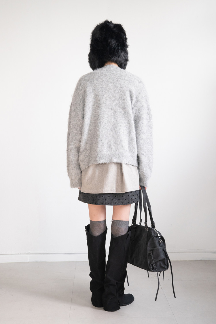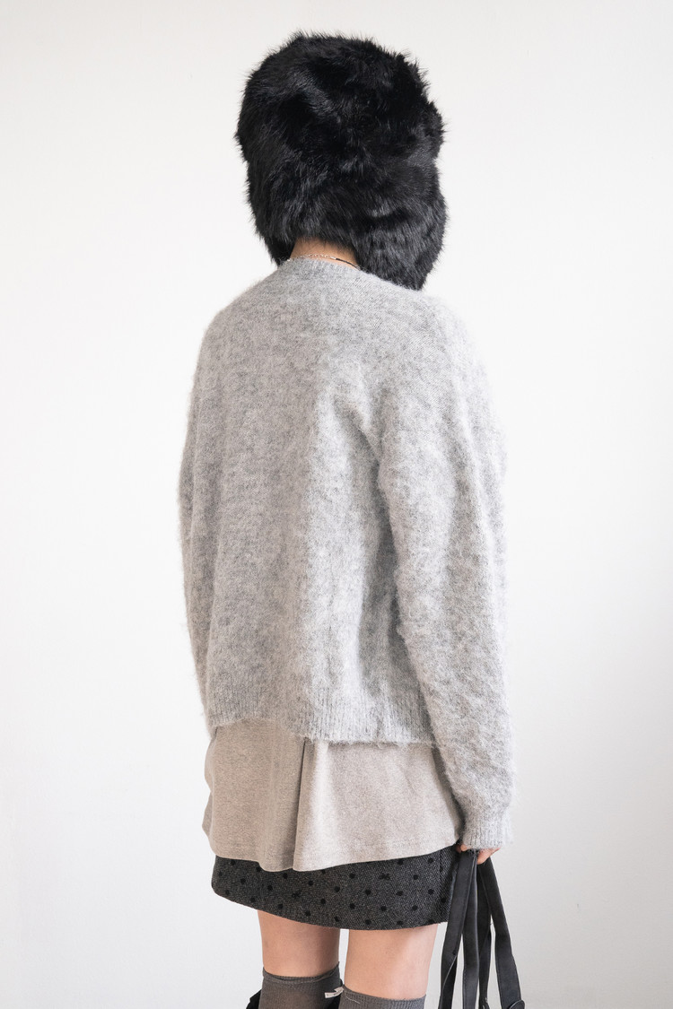 Brushed Hairy Wool Cardigan (Gray)