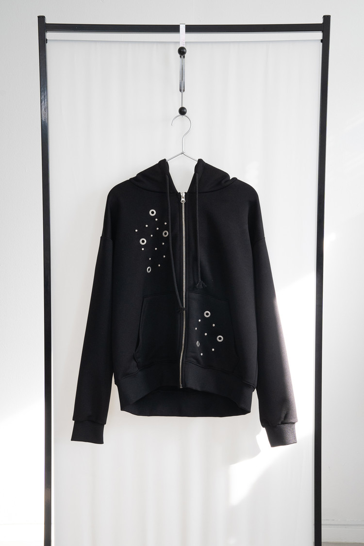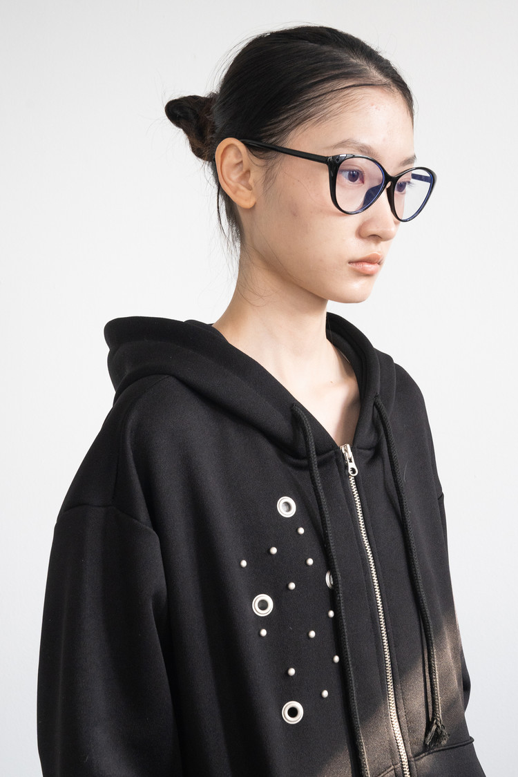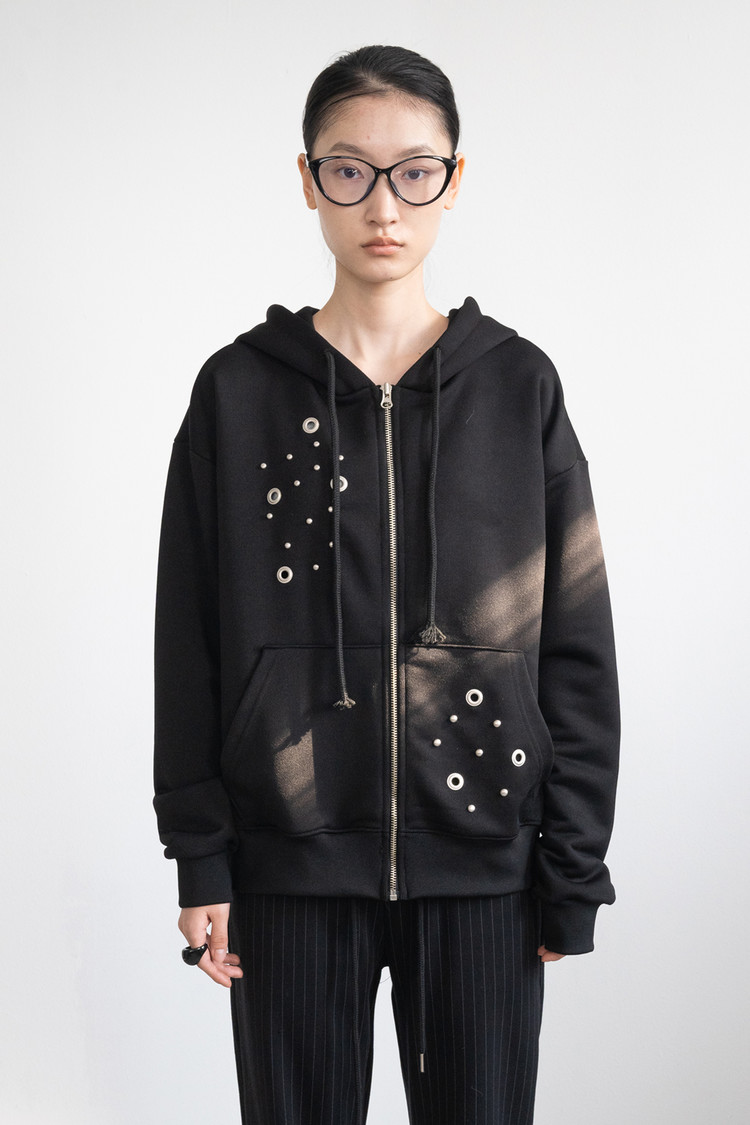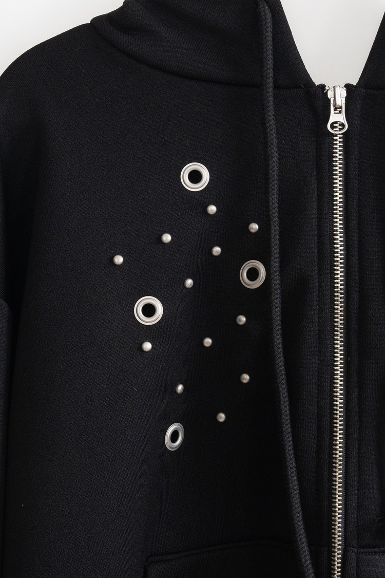 Eyelet Hood Zip-Up (Black)