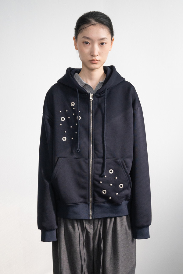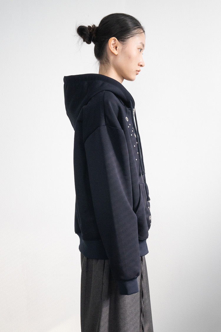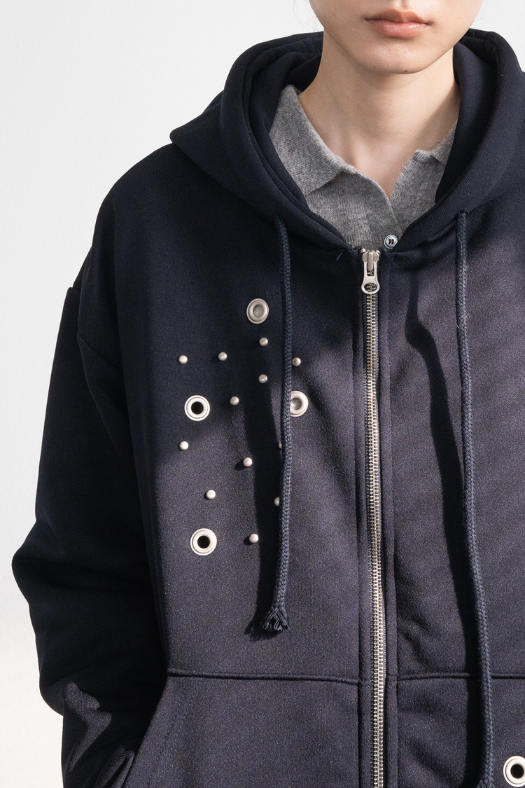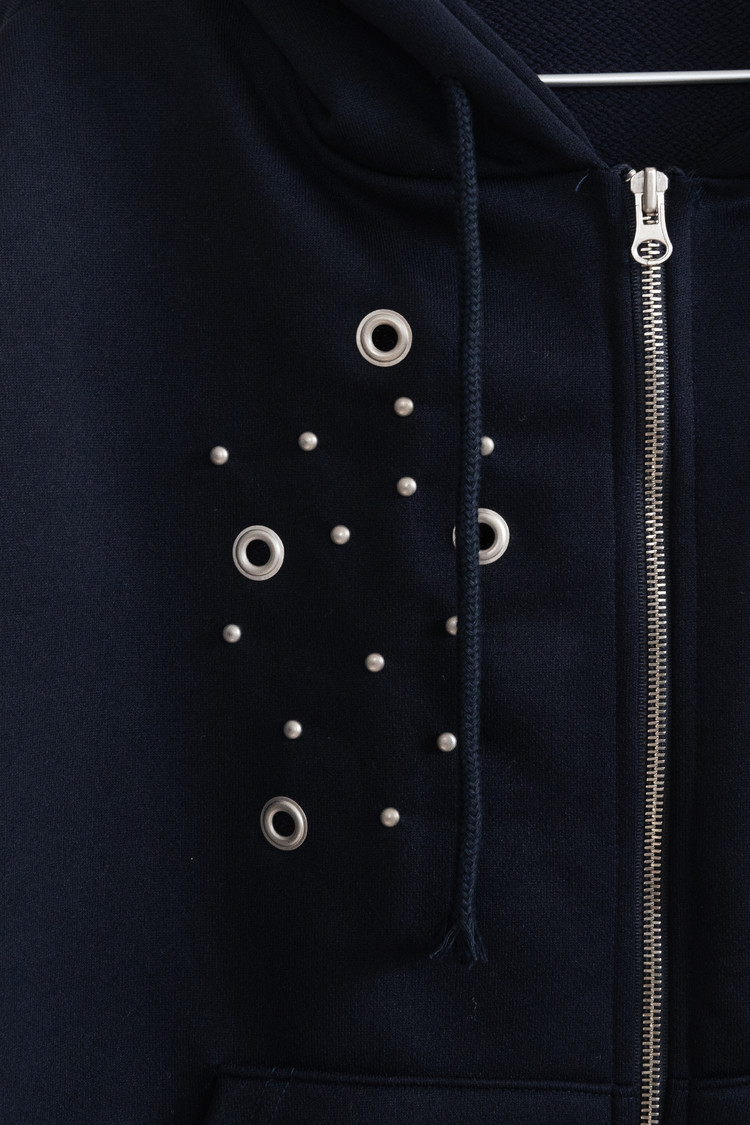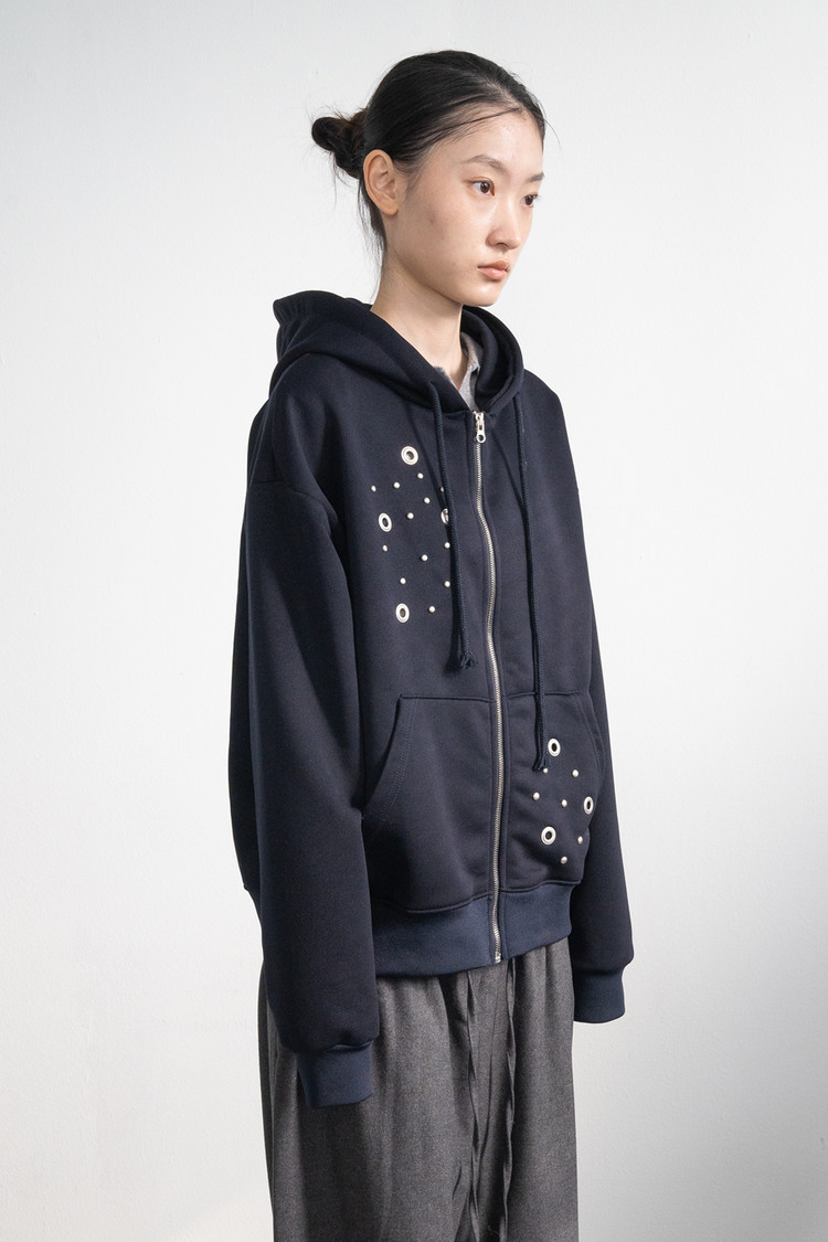 Eyelet Hood Zip-Up (Navy)