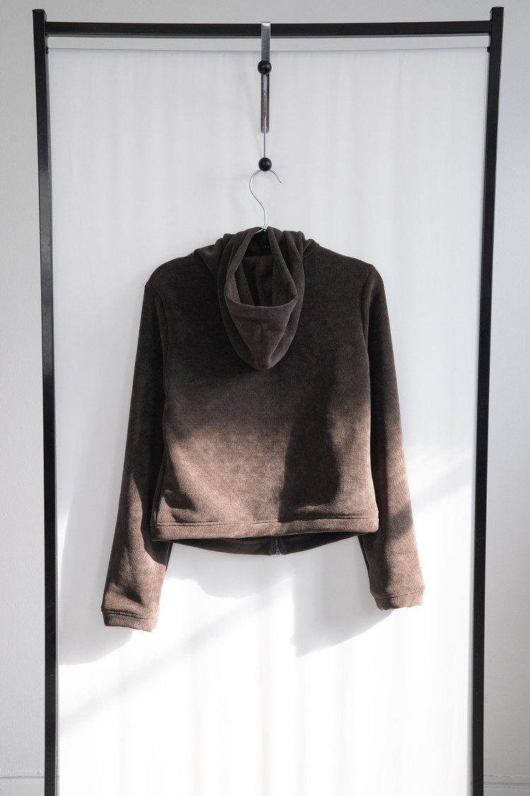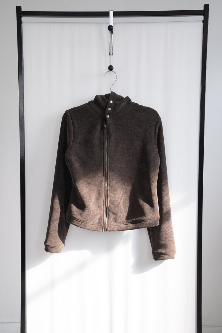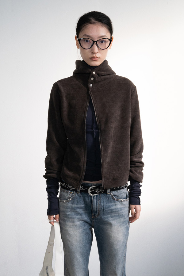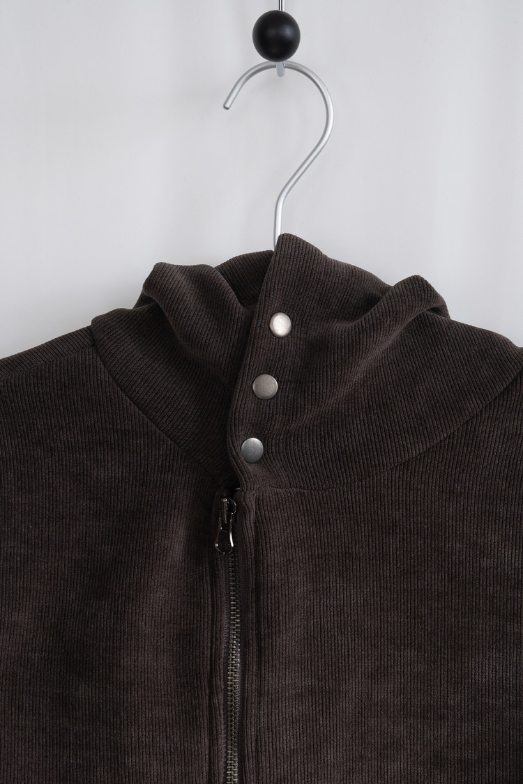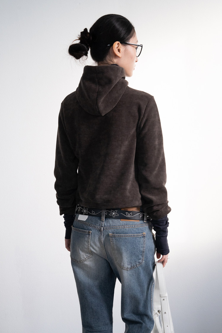 Fleece Hood Button Zip-Up (Brown)