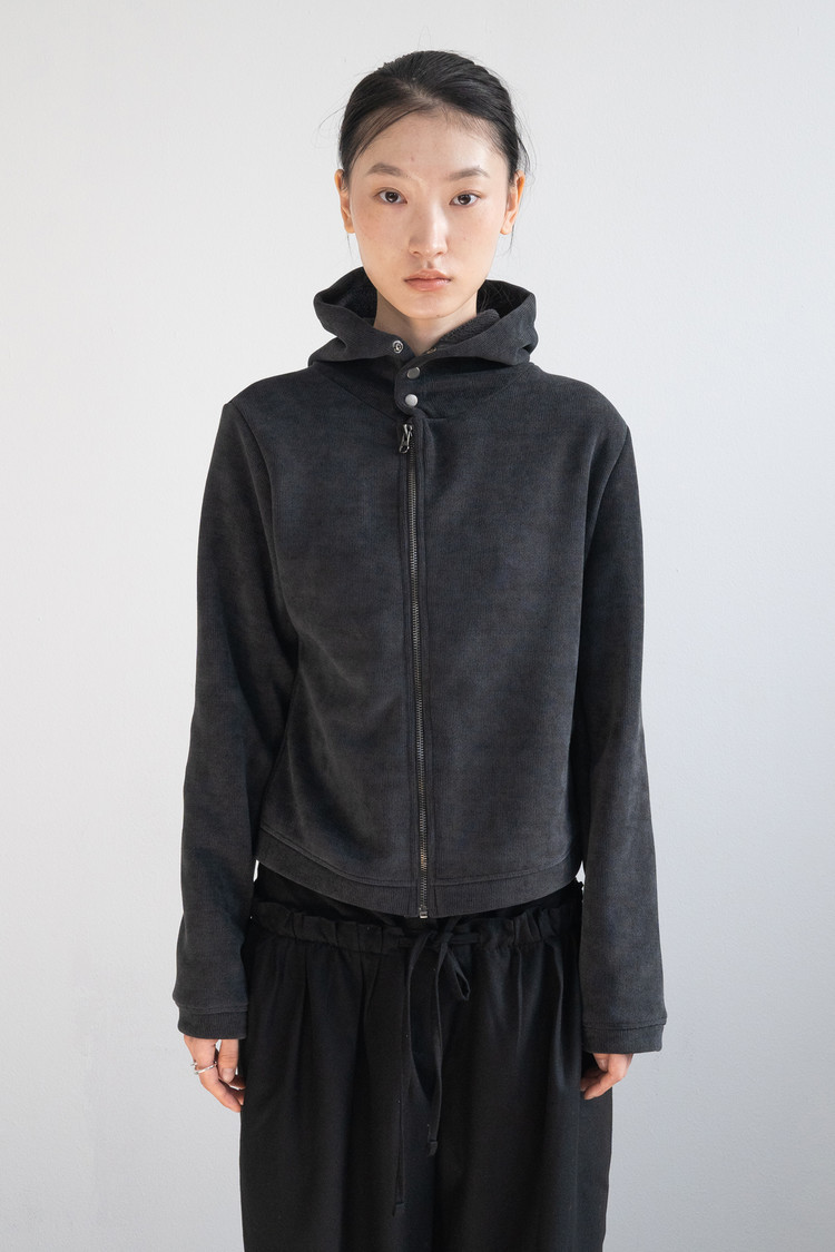 [1/19 순차출고] Fleece Hood Button Zip-Up (Charcoal)
