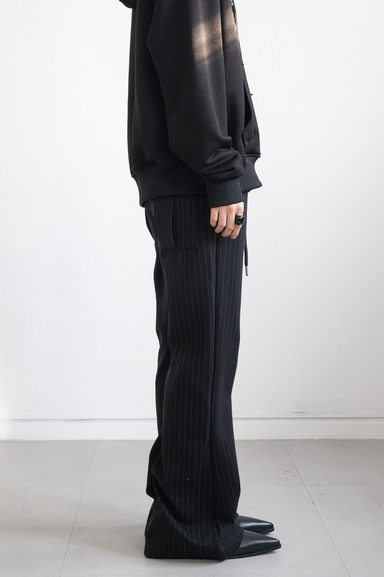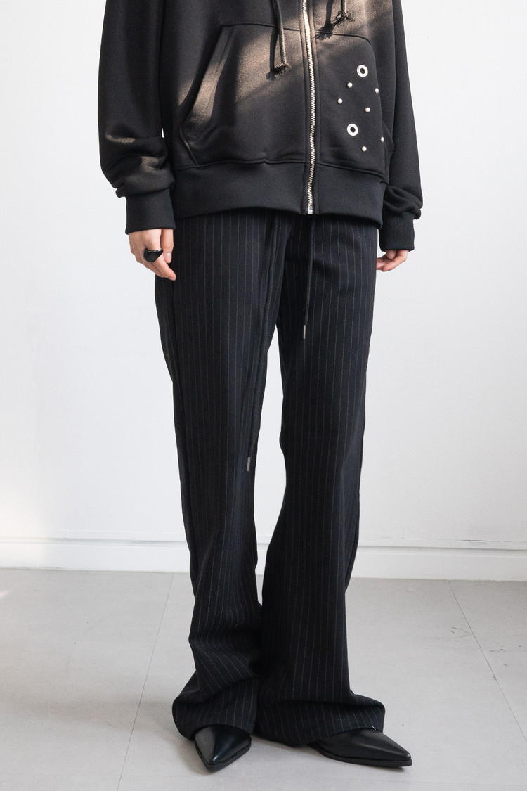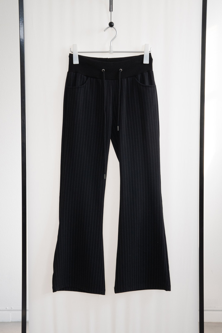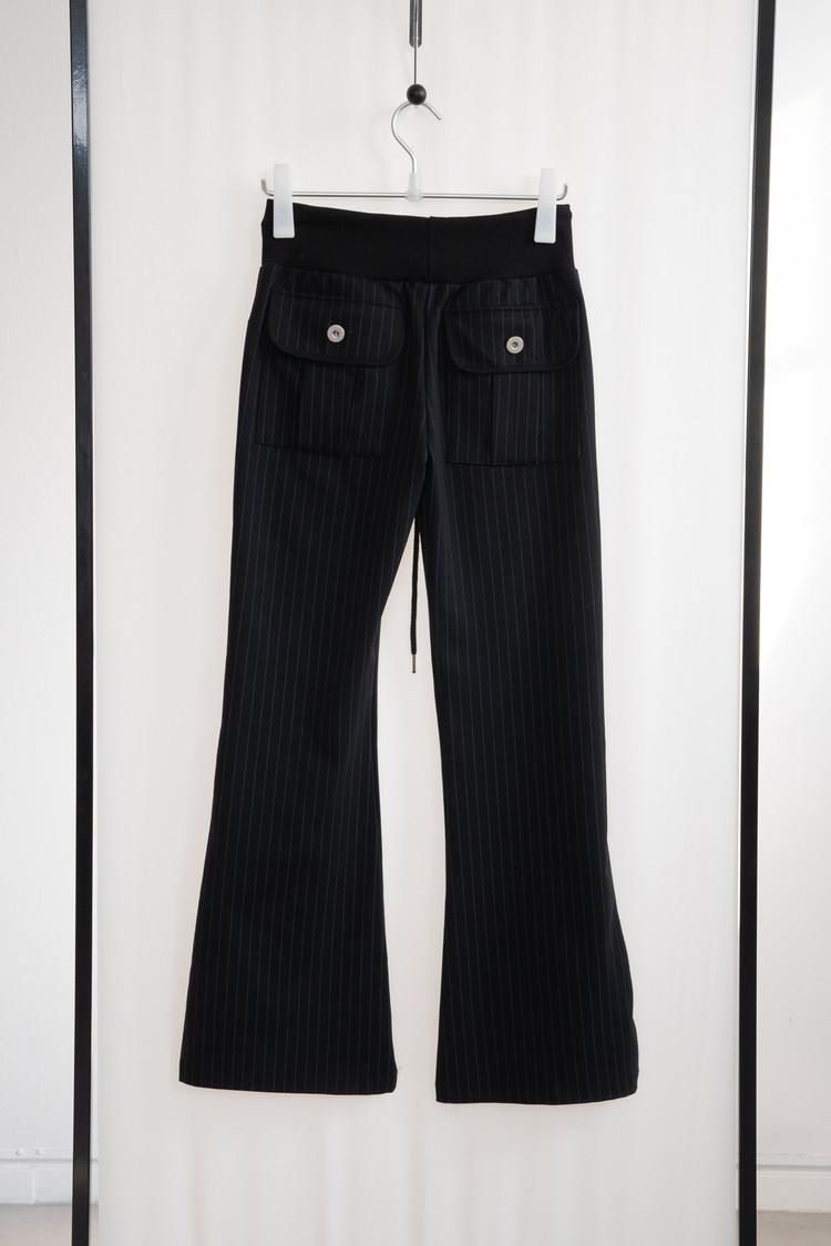 Low Rise Stripe Bootcut Banding Pants (Black)