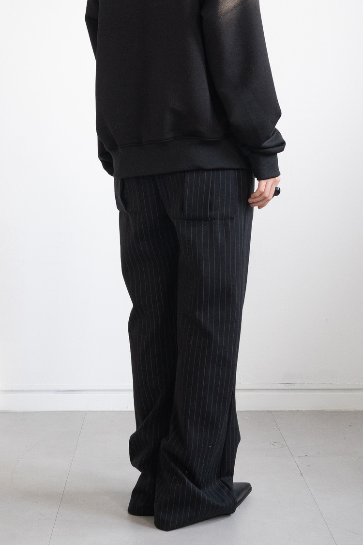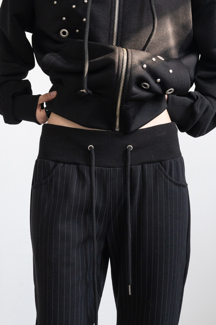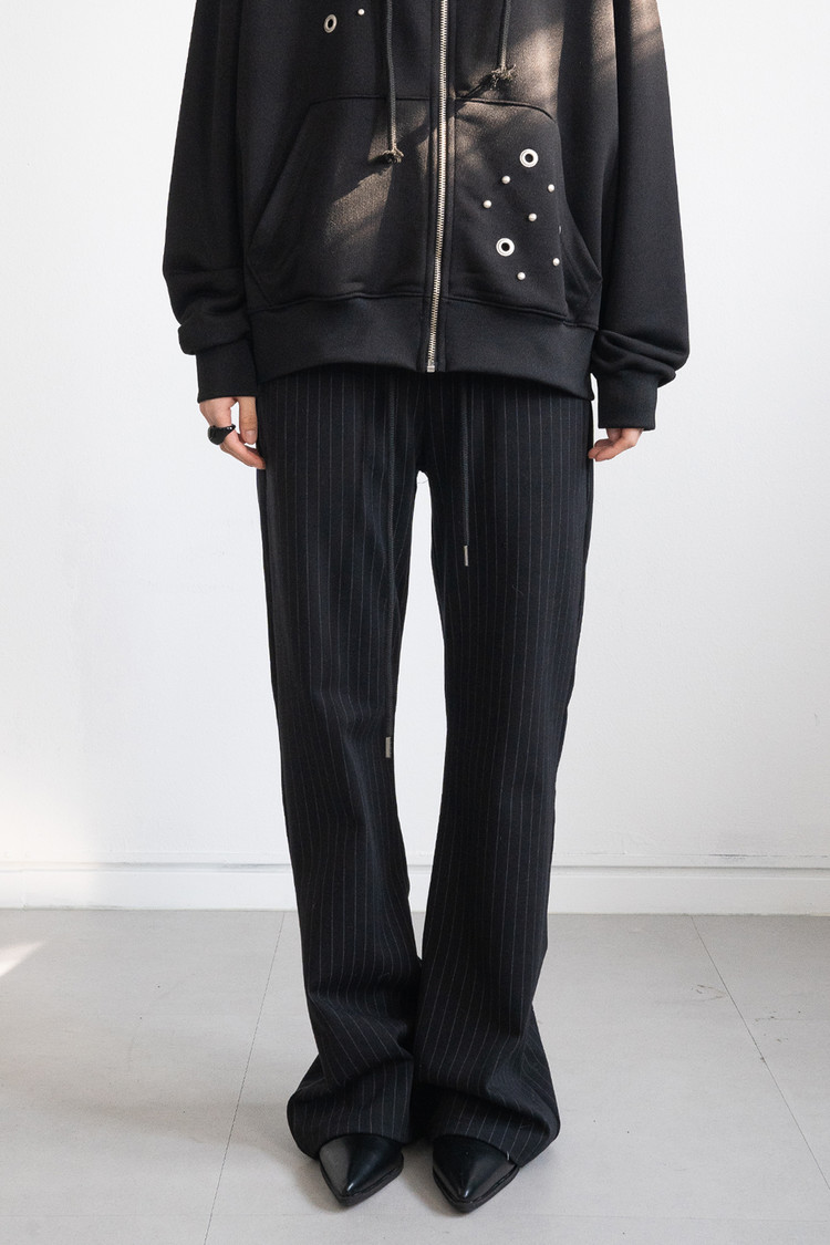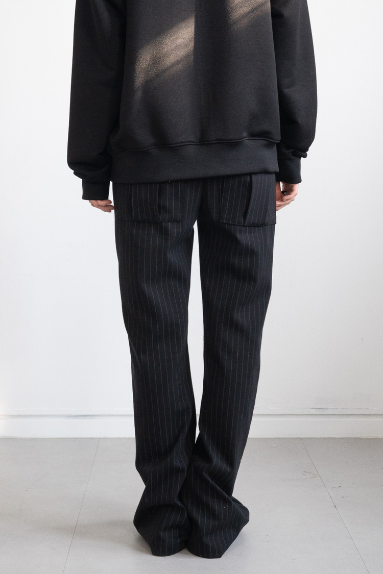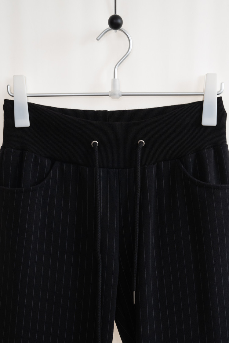 Low Rise Stripe Bootcut Banding Pants (Black)