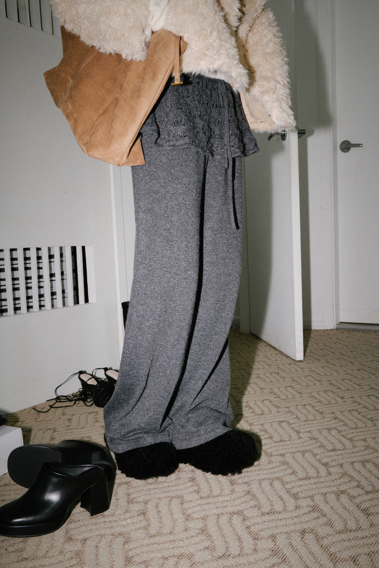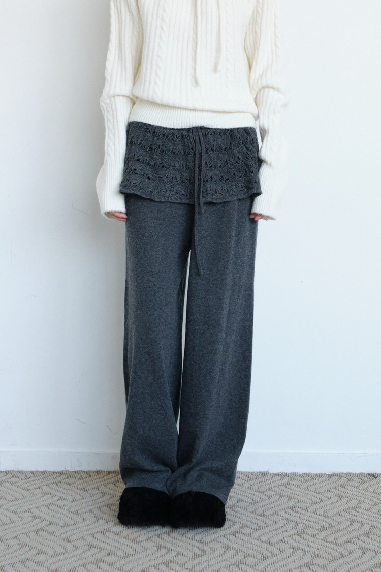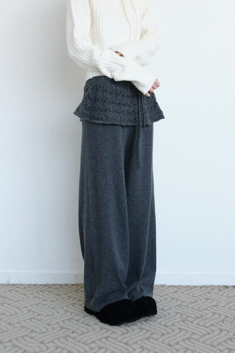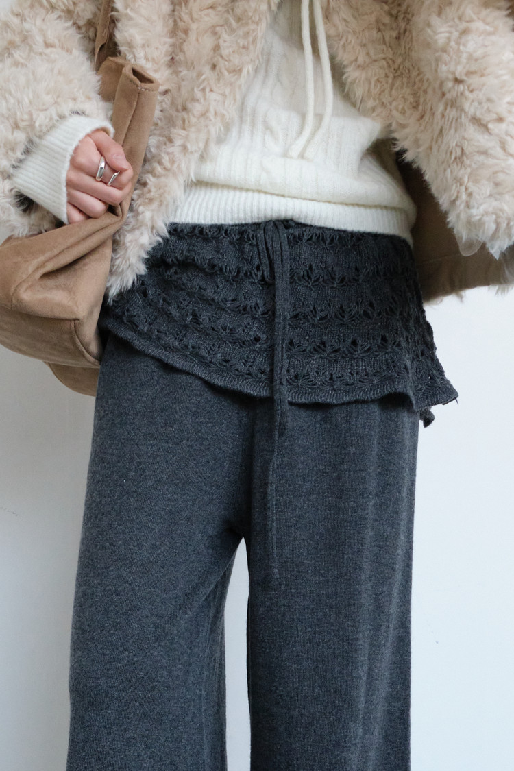 Angora Crochet Layered Pants (Charcoal)