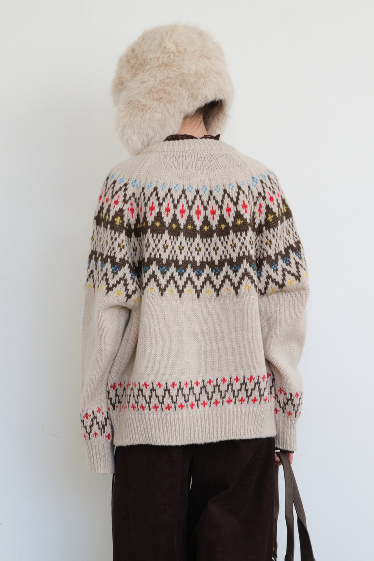Color Pattern Cardigan (Cream)