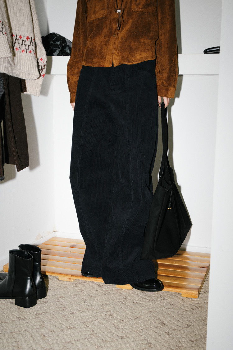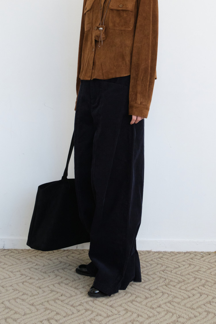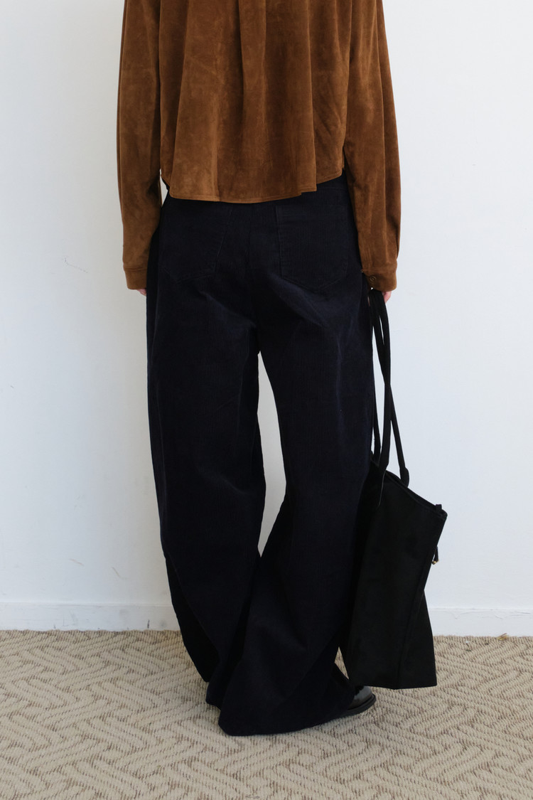 Corduroy Cotton Curved Pants (Deep Navy/3size)