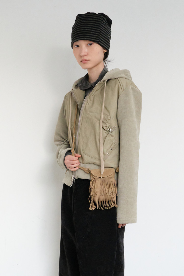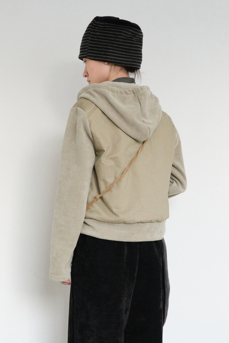 Pocket String Hood Zip-Up (Biege)