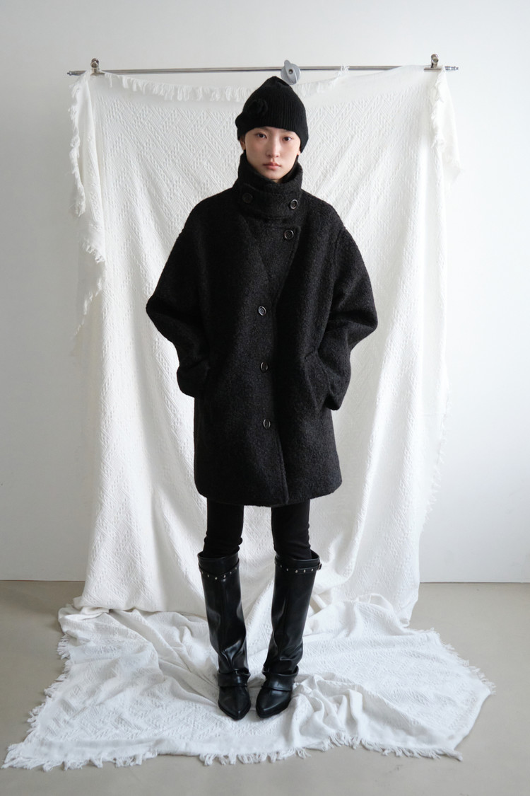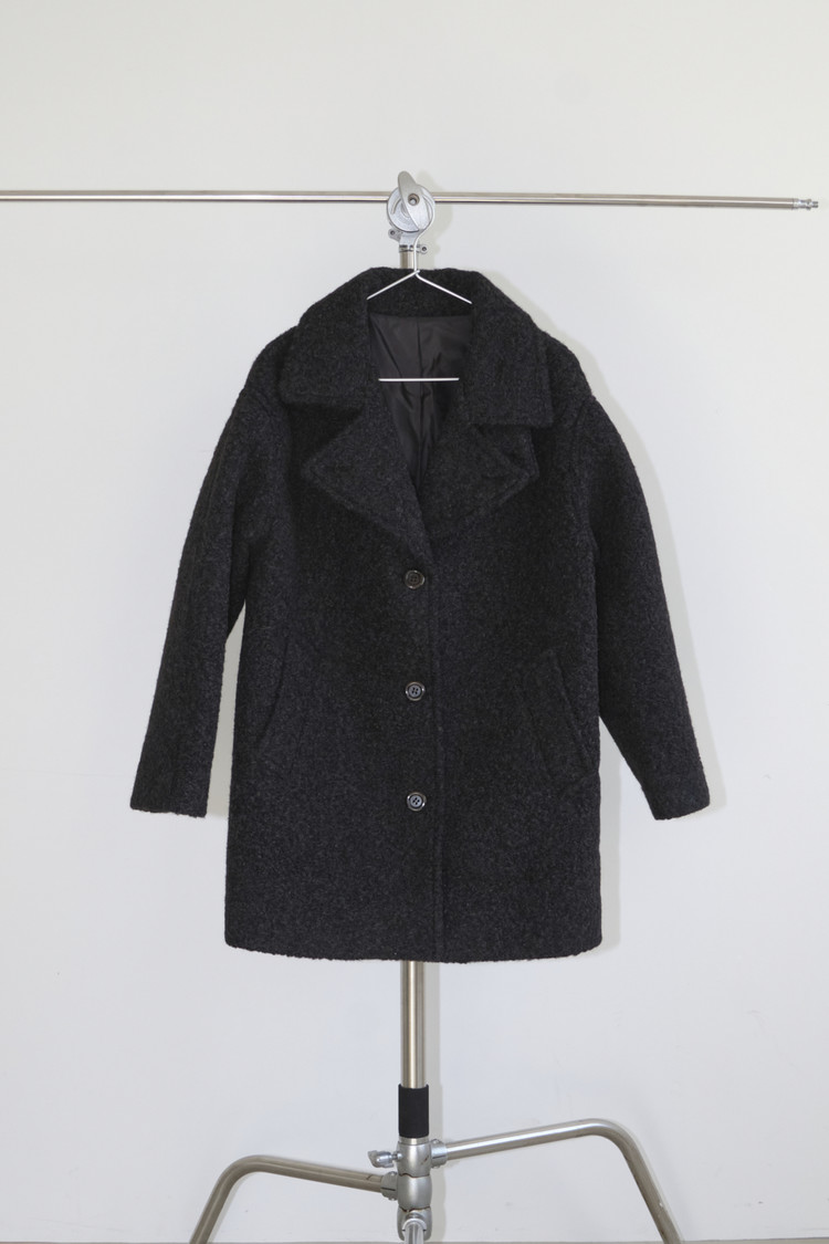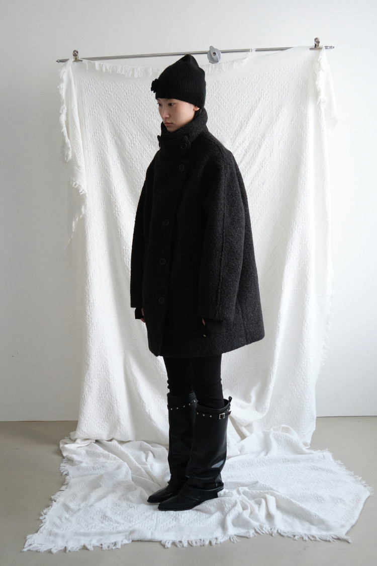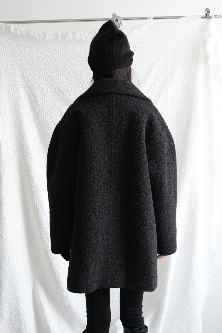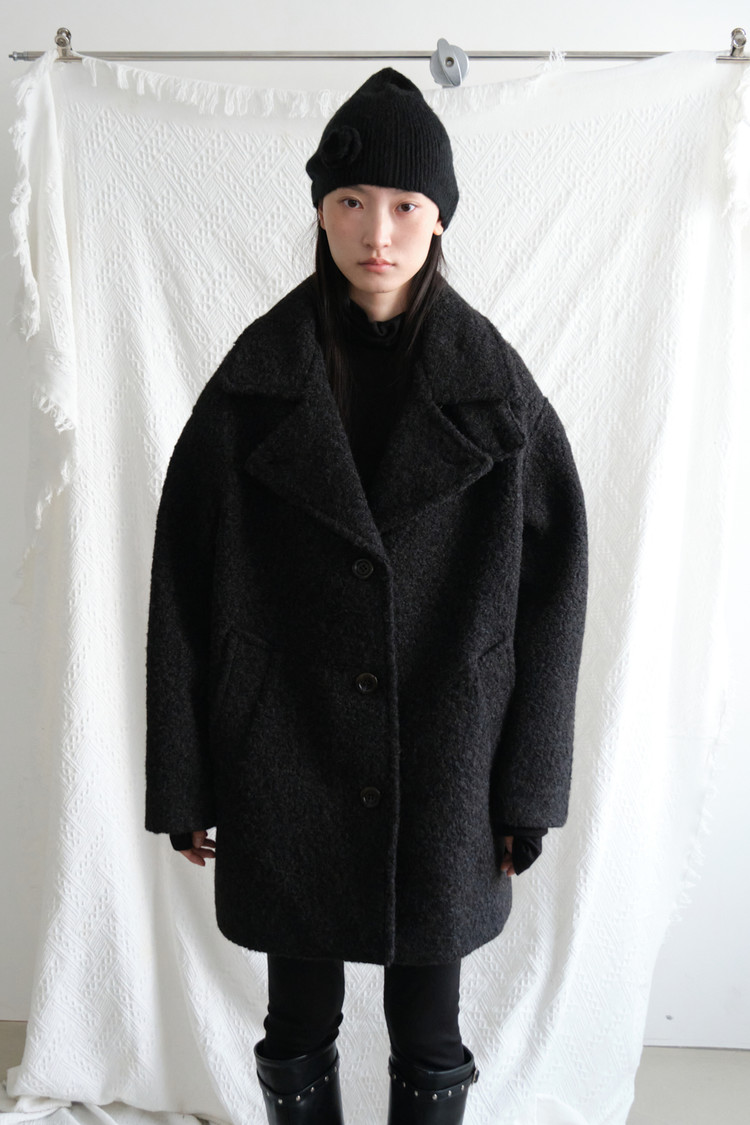 [1/16 순차출고] Boucle Half Pea Coat (Black)