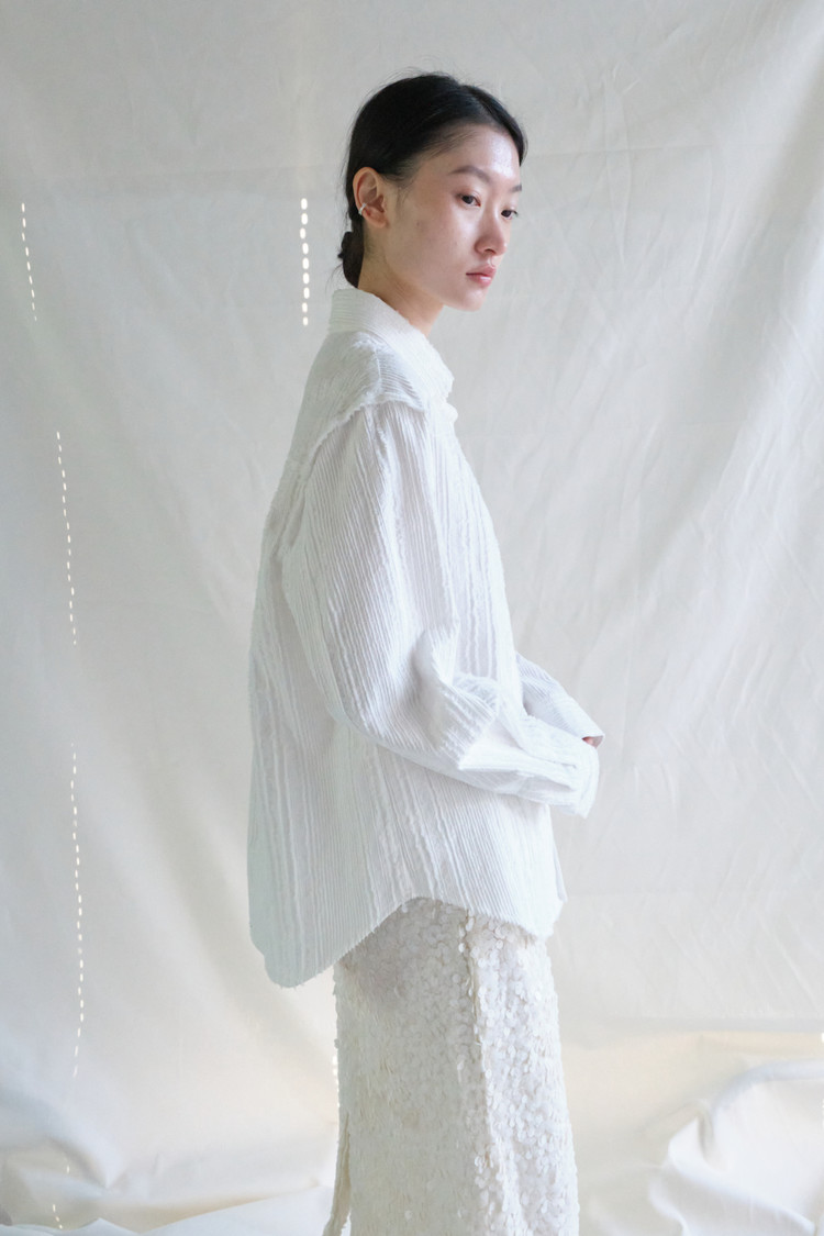 Cotton Tassel Damage Shirt (White)