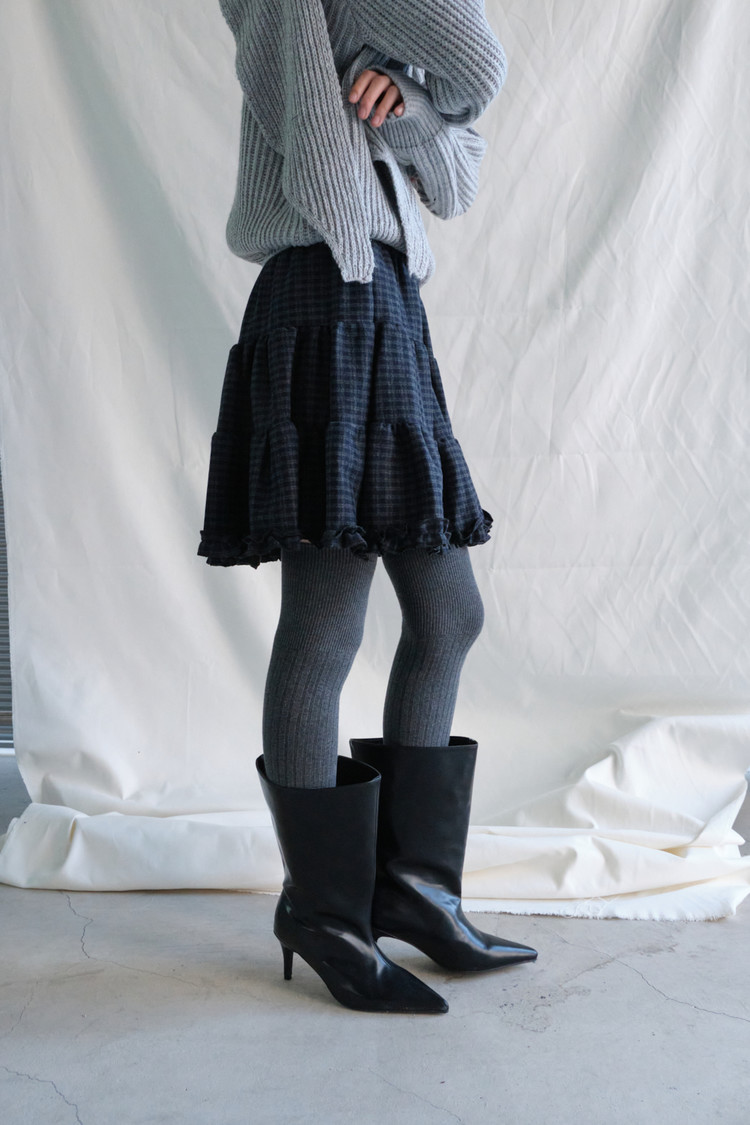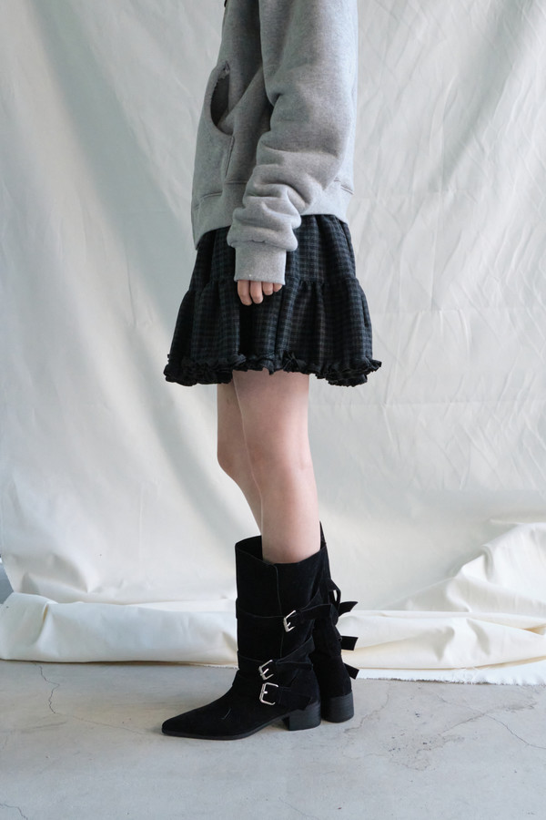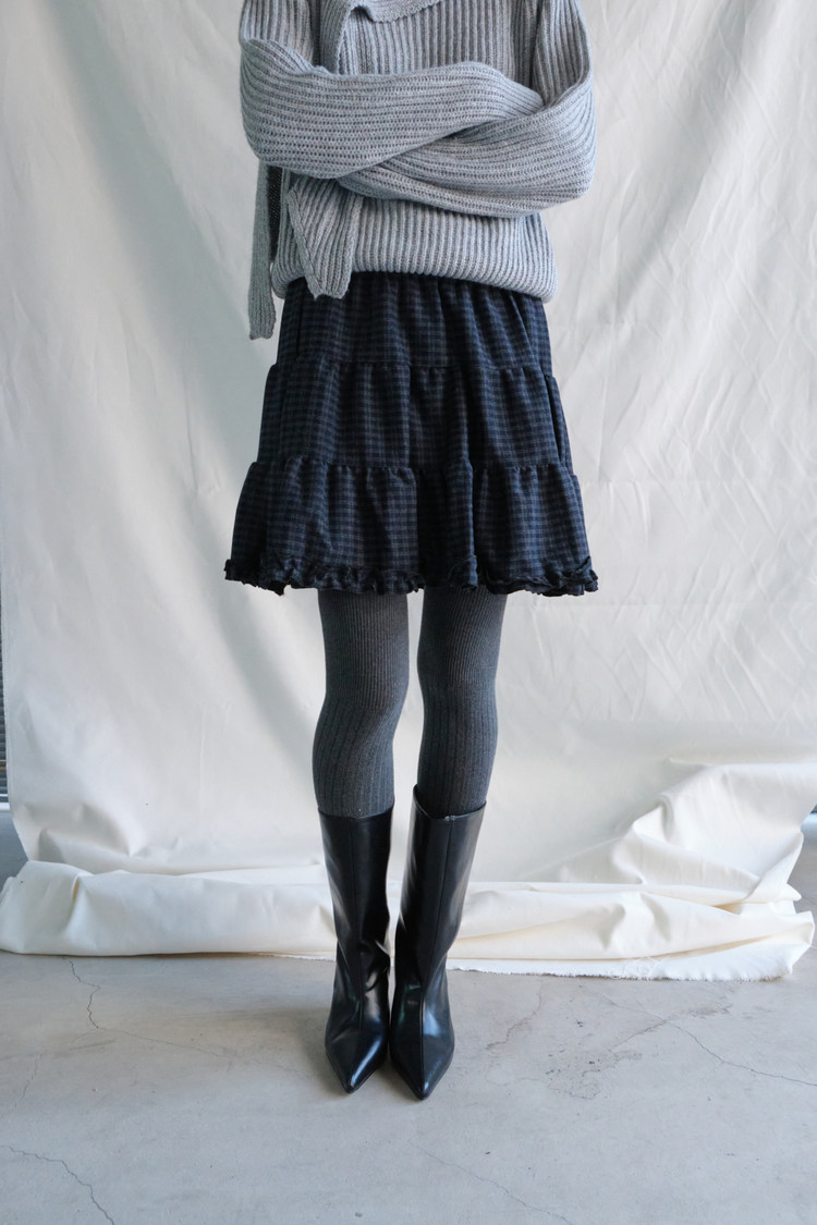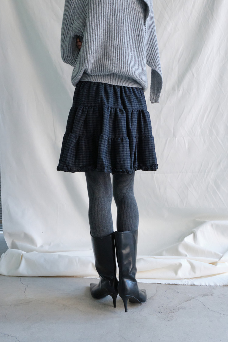 Frill Check Mini Skirt (Navy)
